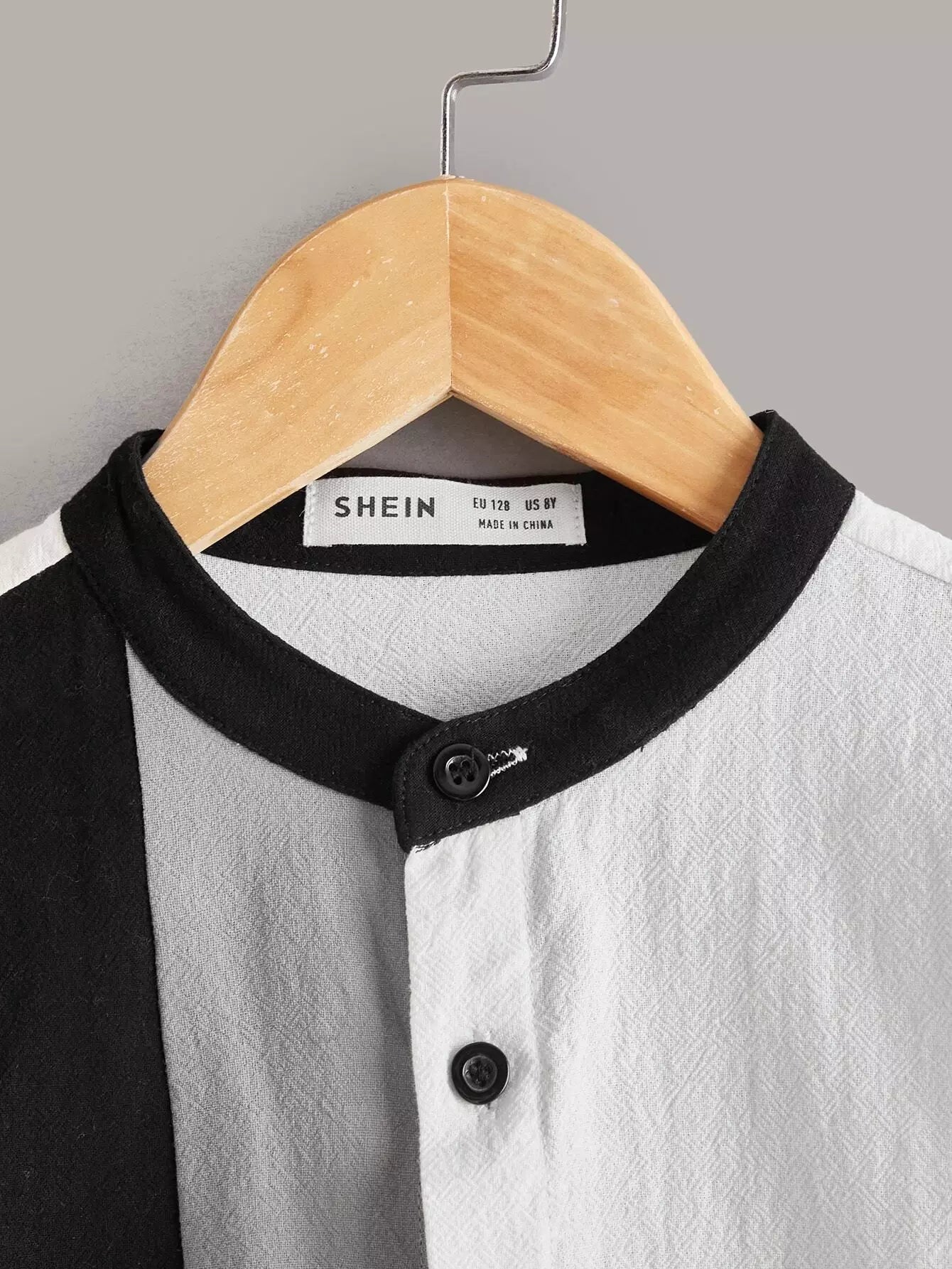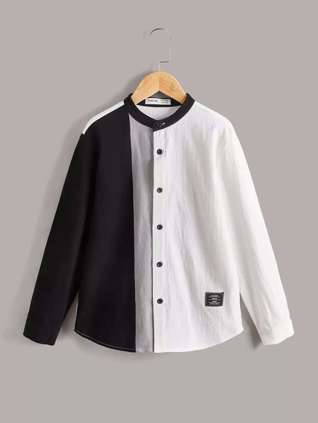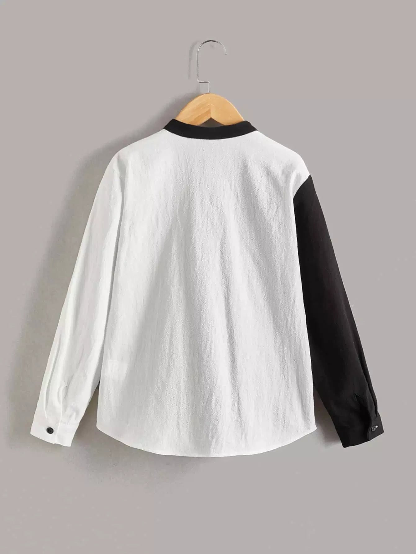 قميص للأولاد بتفاصيل مرقعة بلونين
