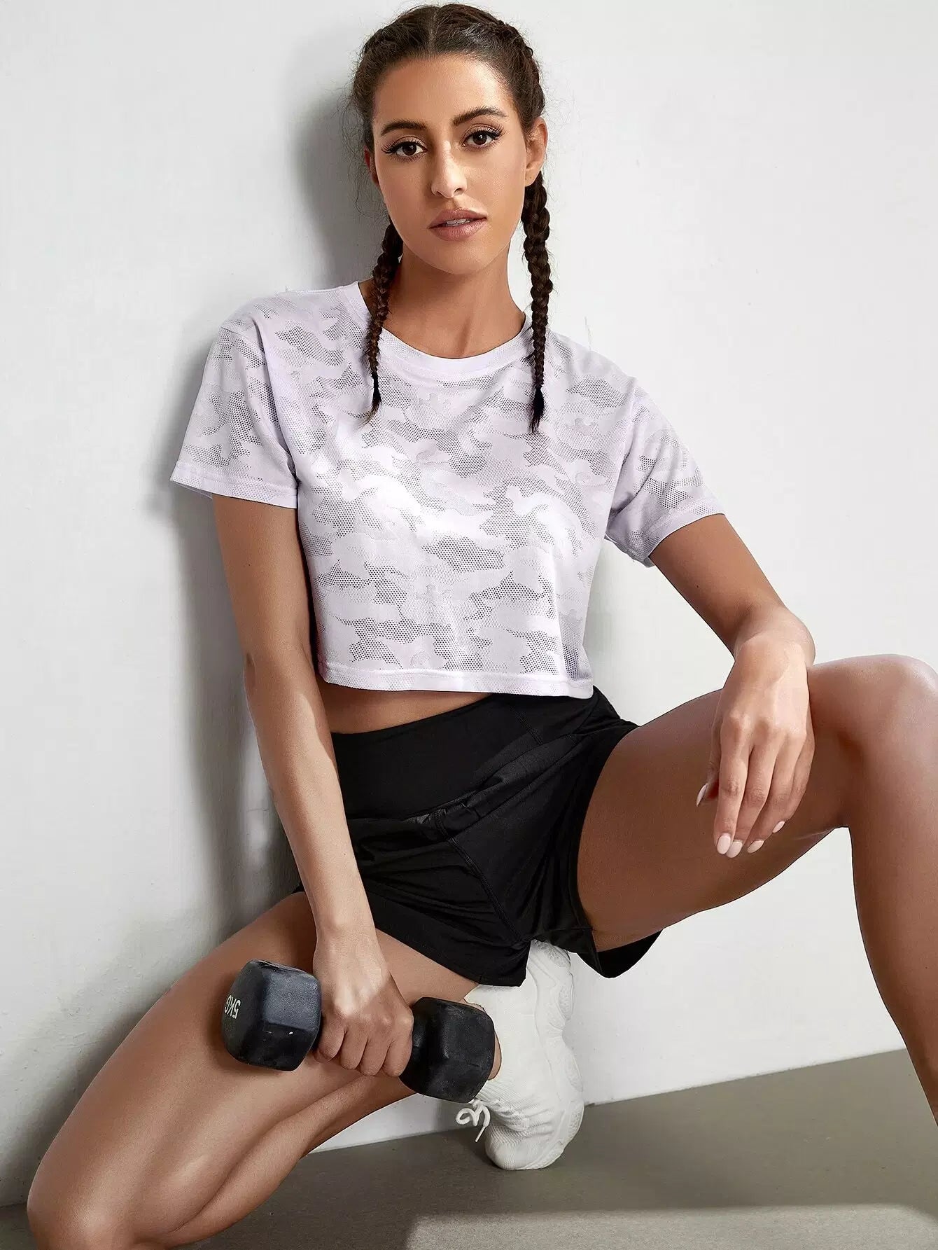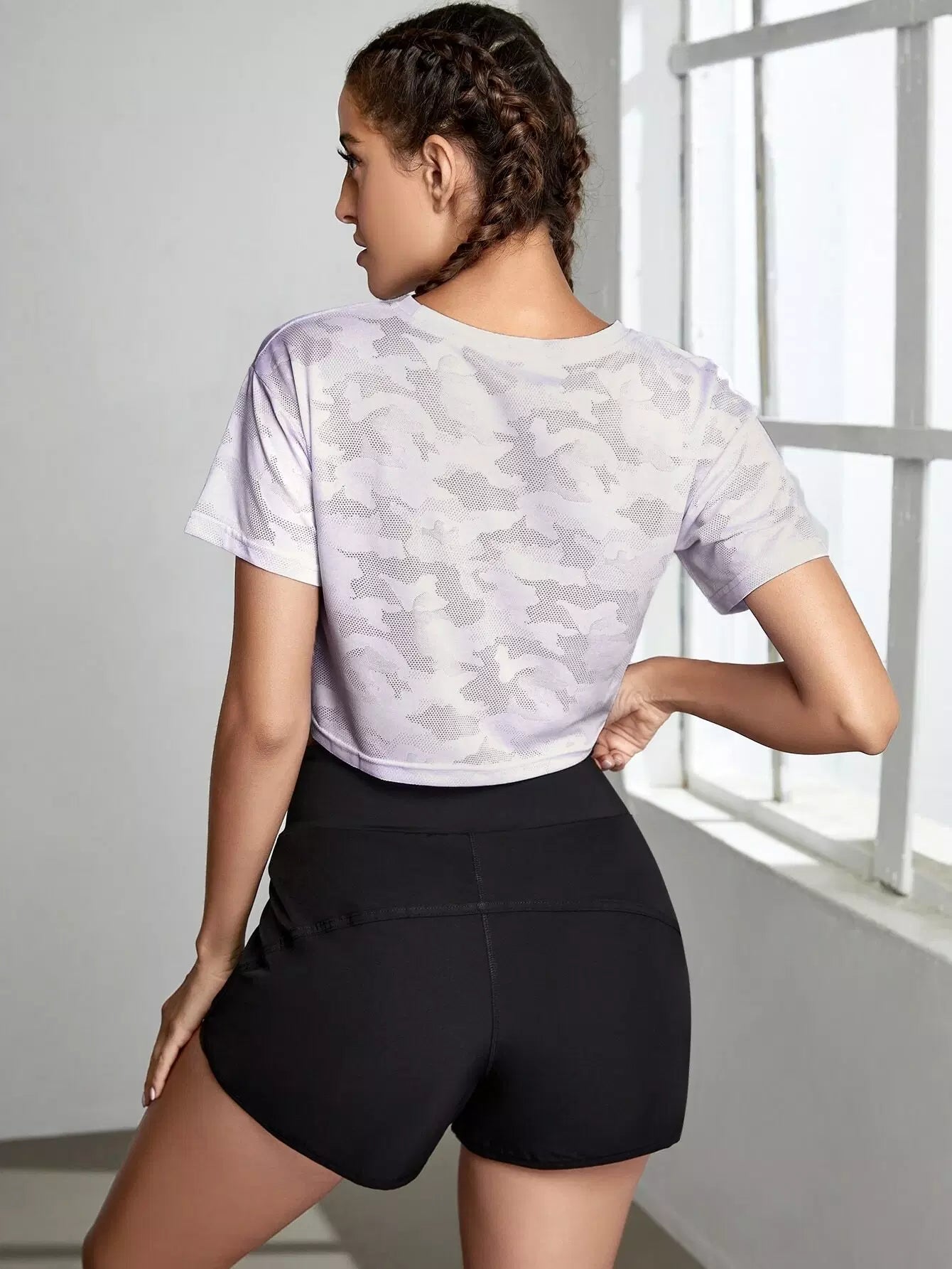 تي شيرت رياضي قصير مموّه قابل للتنفس