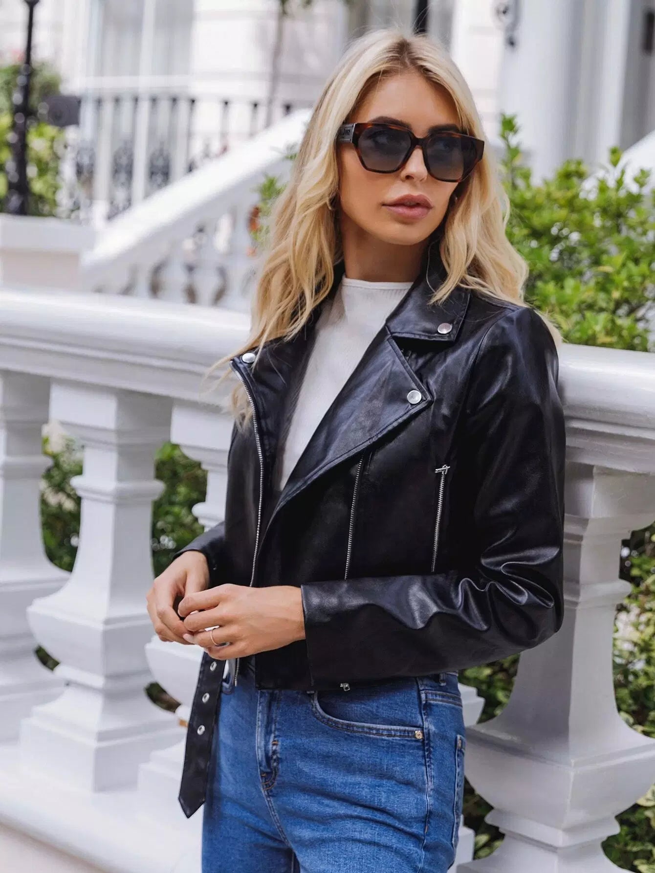 للنساء - سترة موتو من البولي يوريثان بحزام بإبزيم