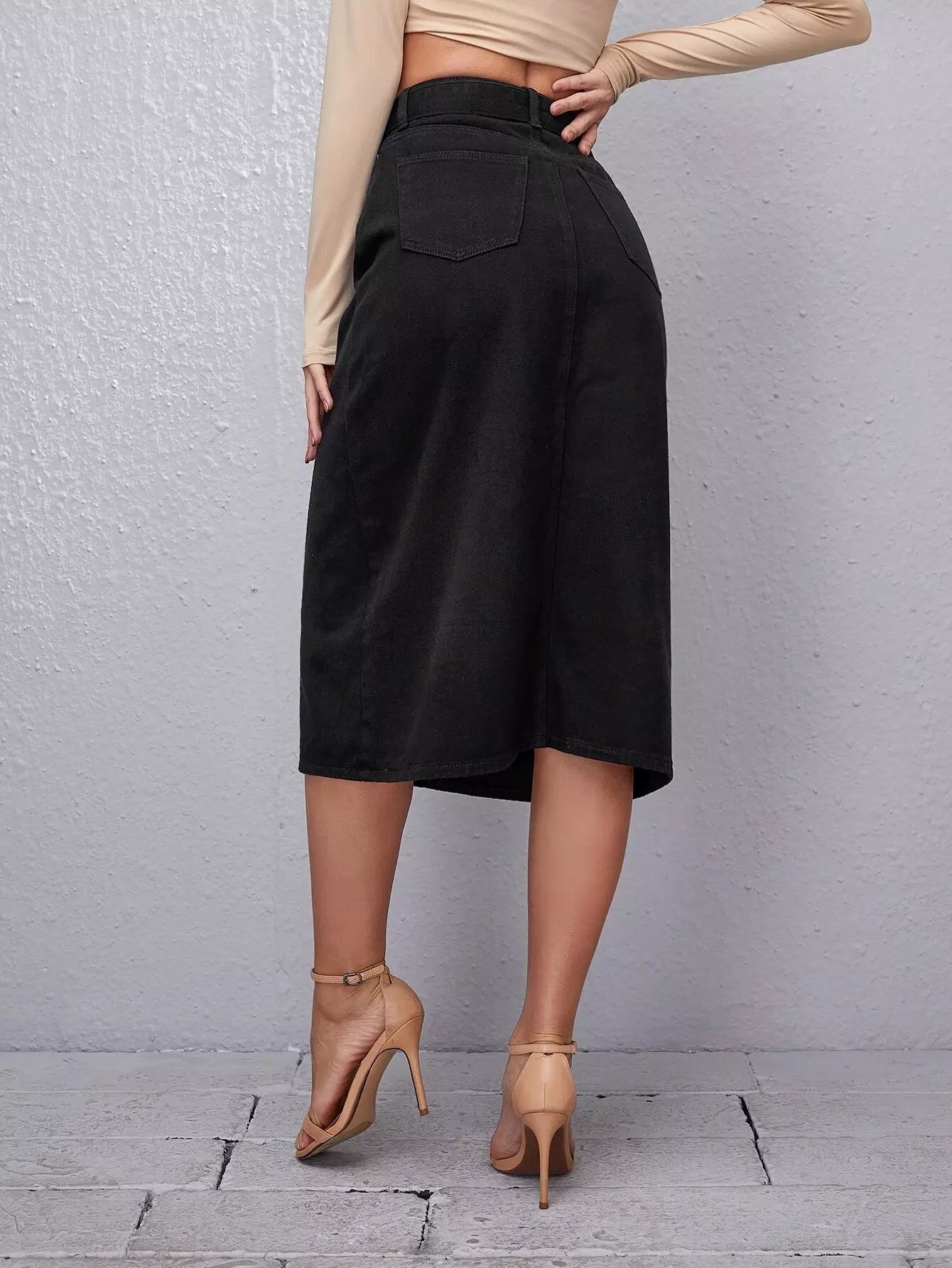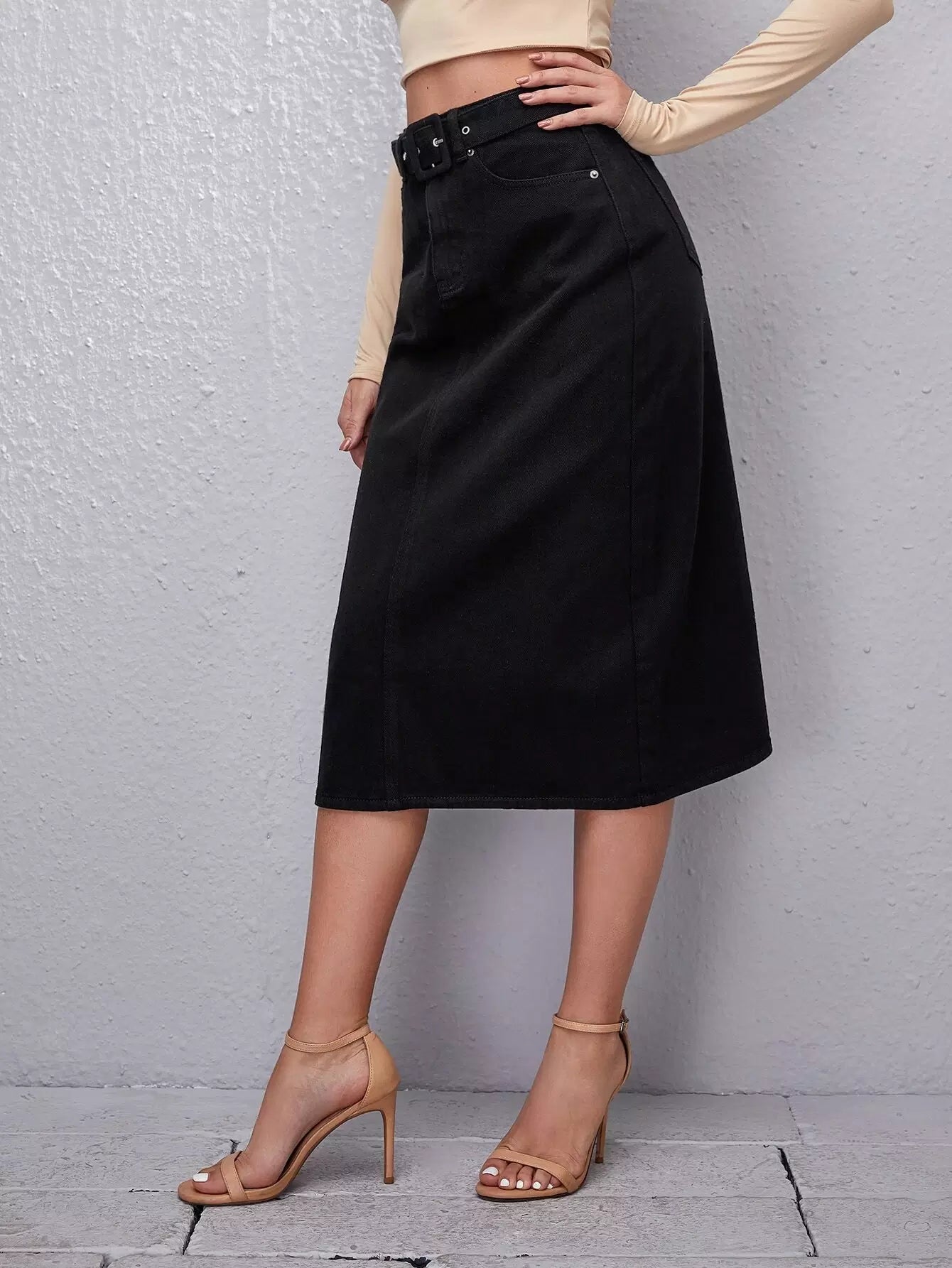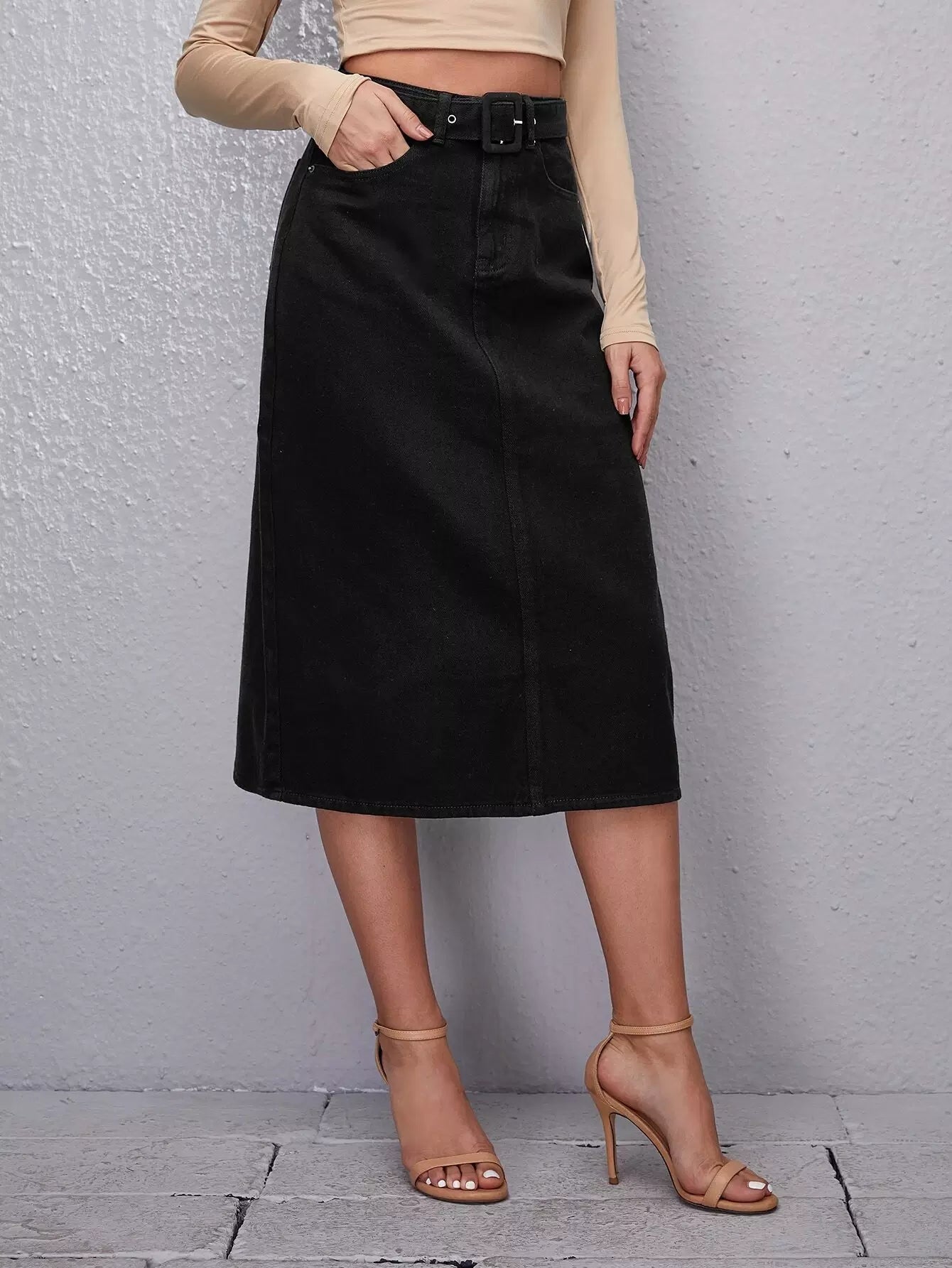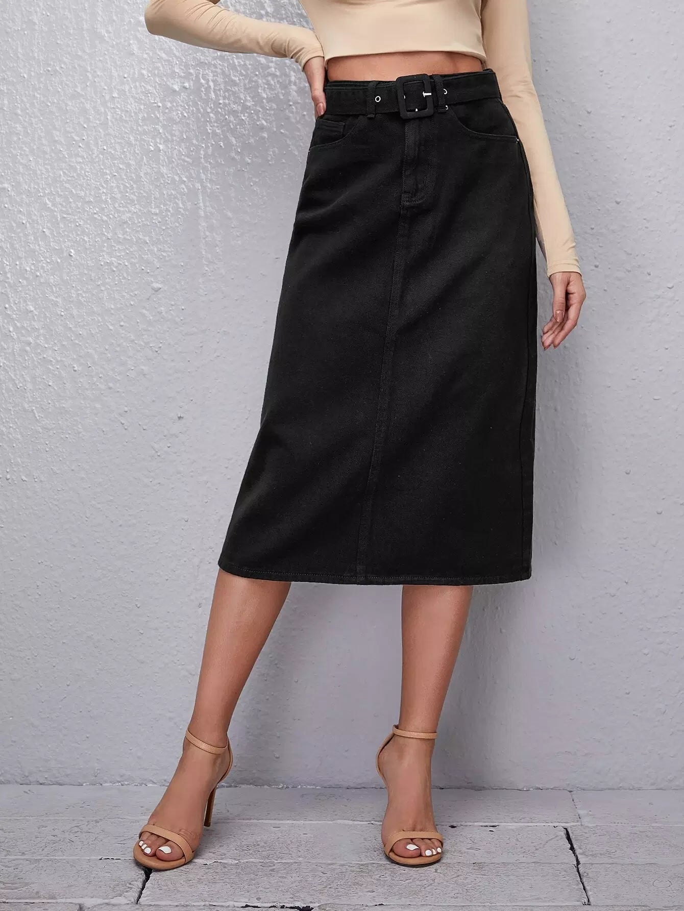 تنورة جينز مستقيمة بإبزيم بدون حزام