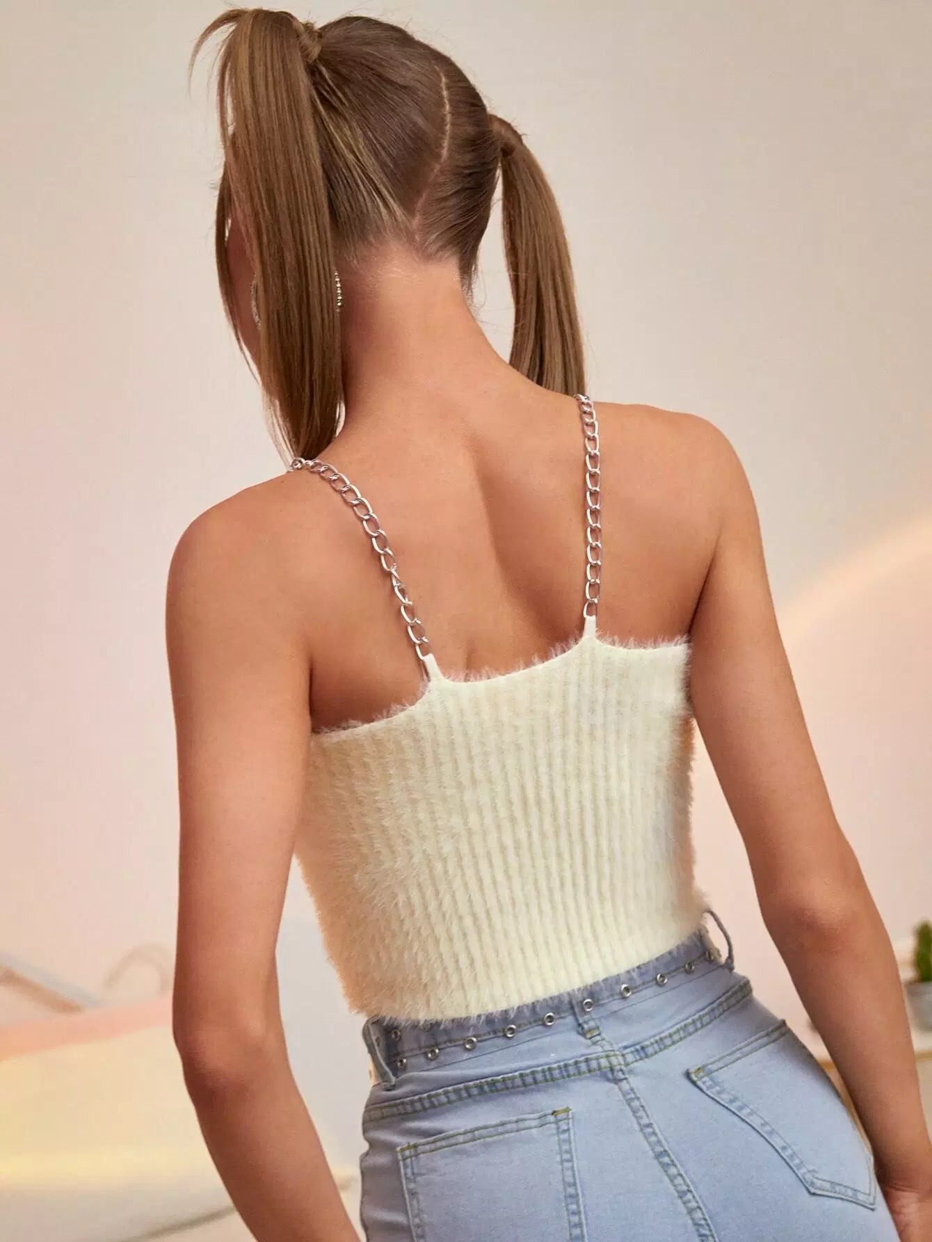 بلوزة محبوكة بحزام سلسلة مزين برقعة على شكل فراشة