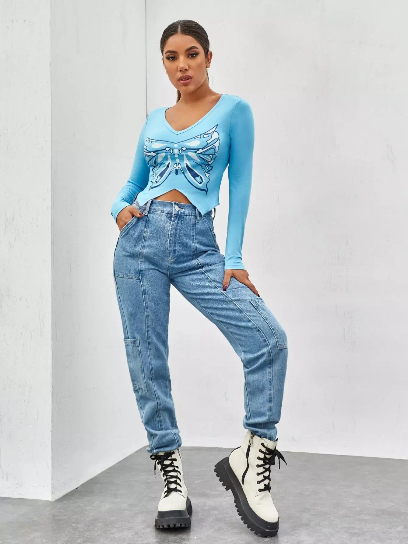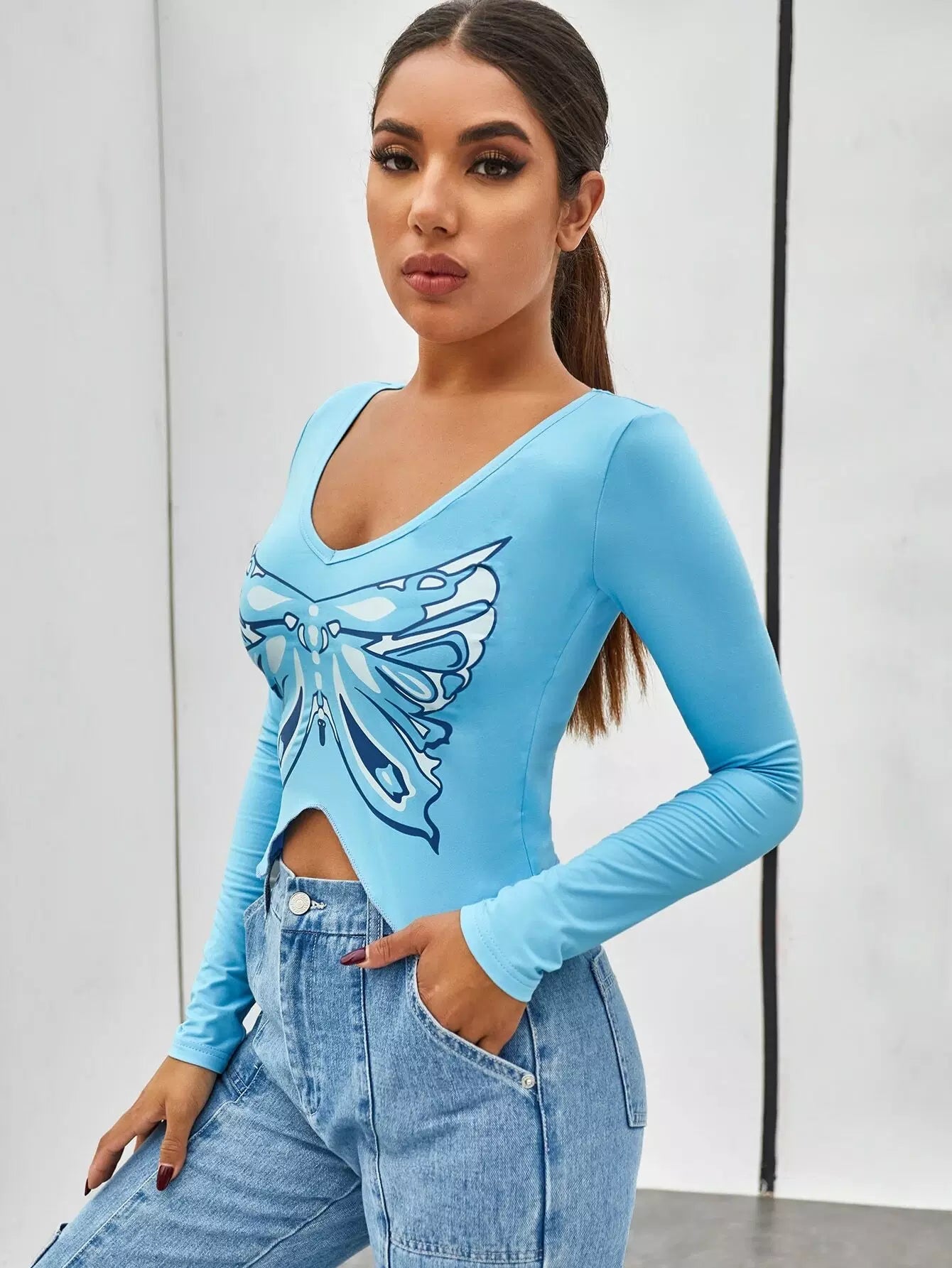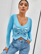 تي شيرت بطبعة فراشات مع حاشية منديل