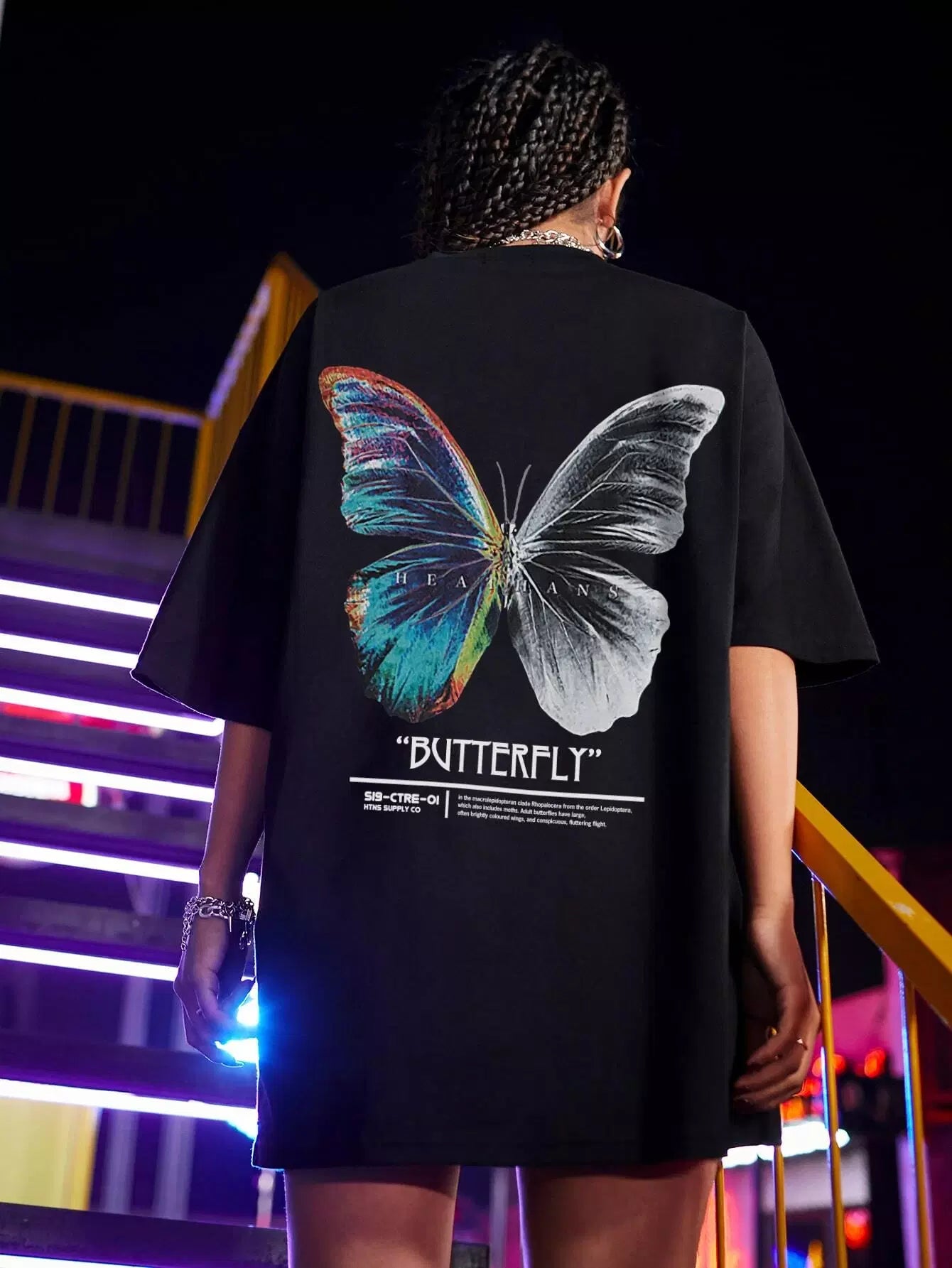تي شيرت فراشة وشعار جرافيك كبير الحجم