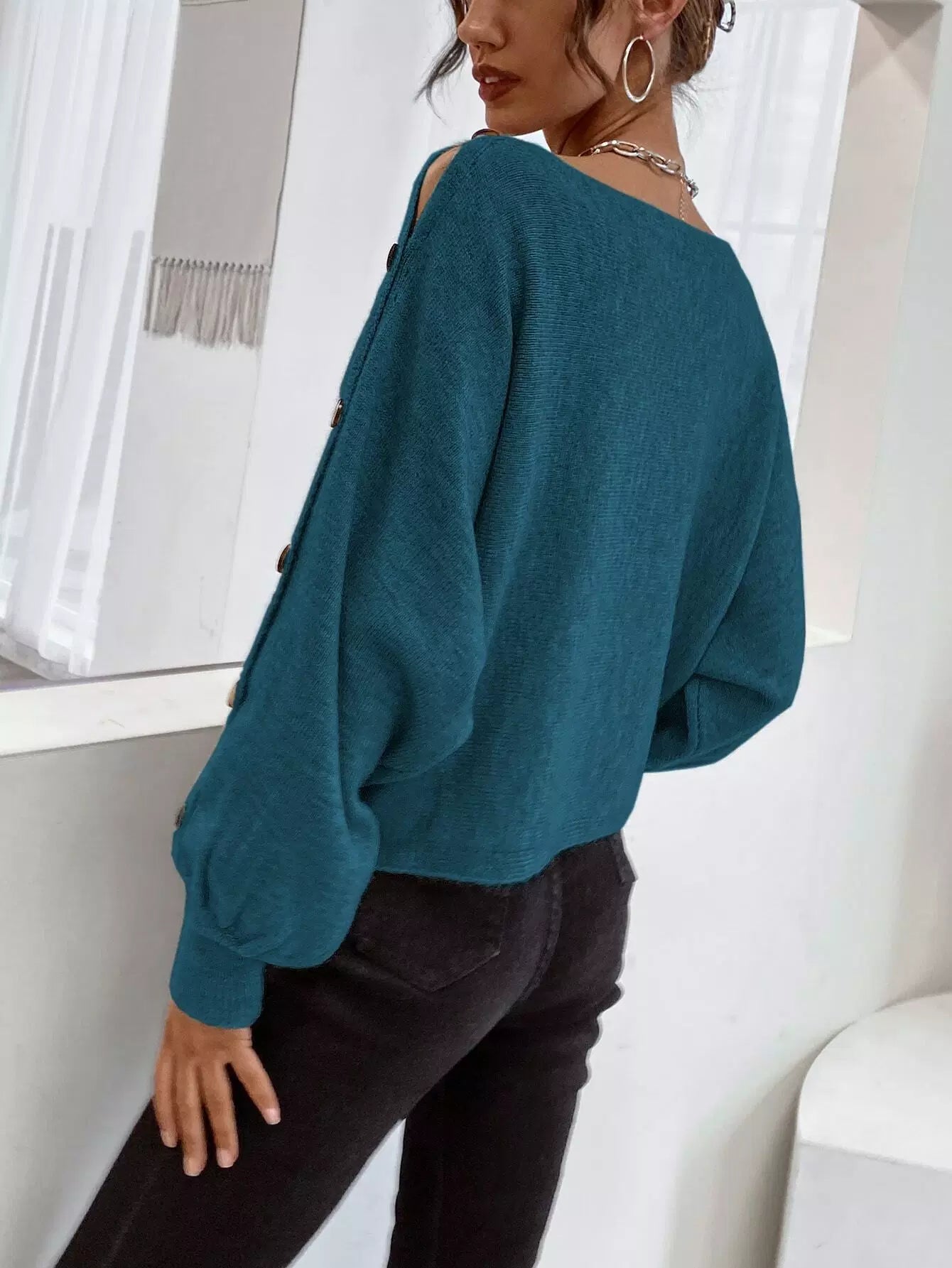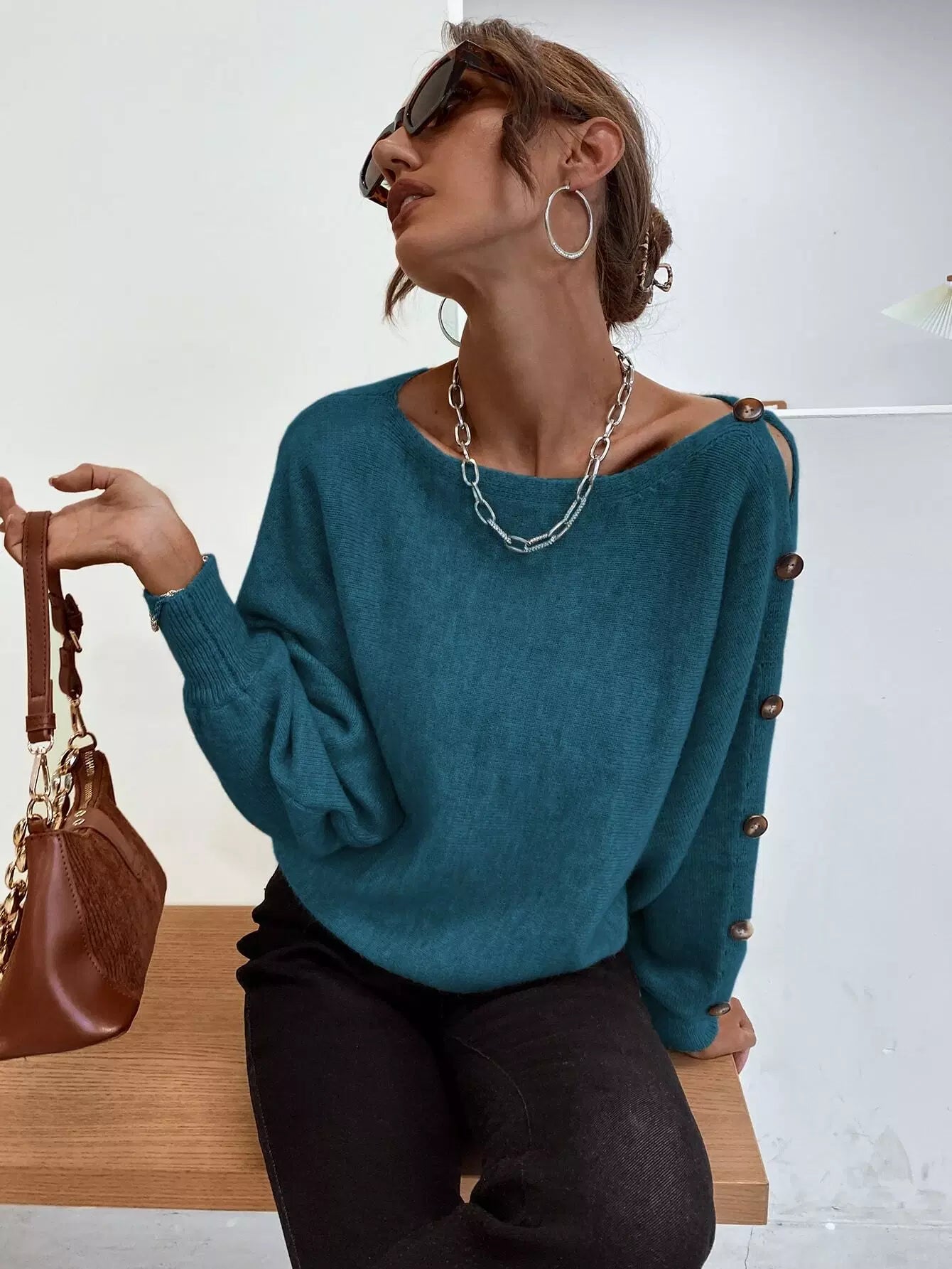 سترة بياقة قارب برقبة قارب بتفاصيل أزرار