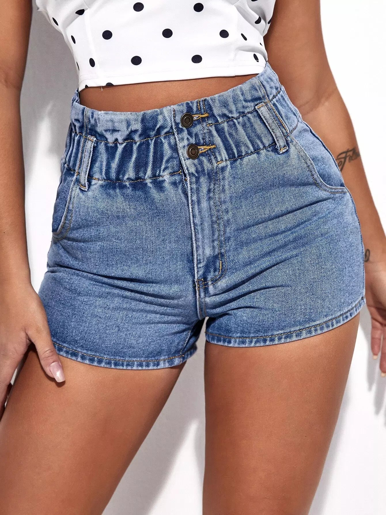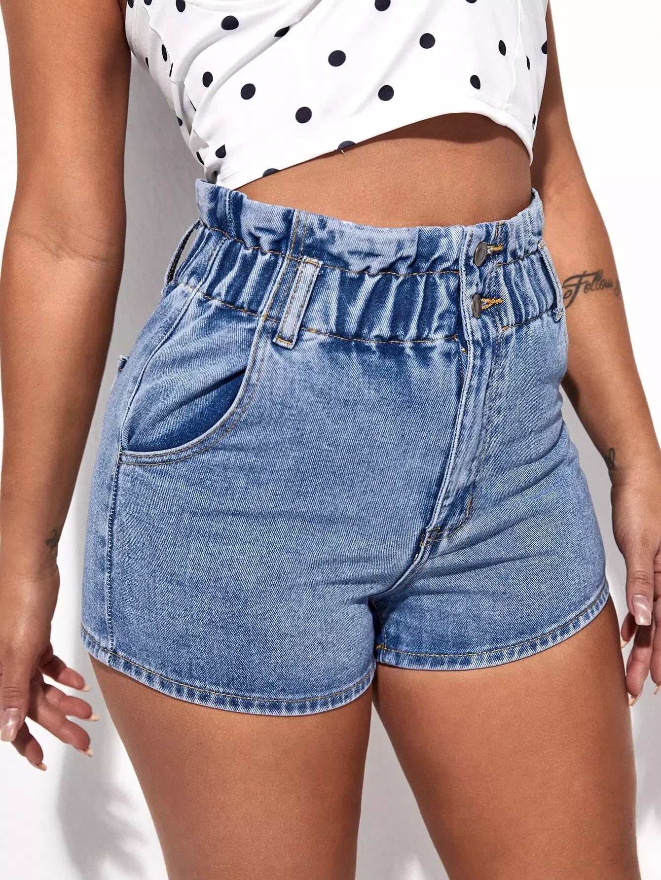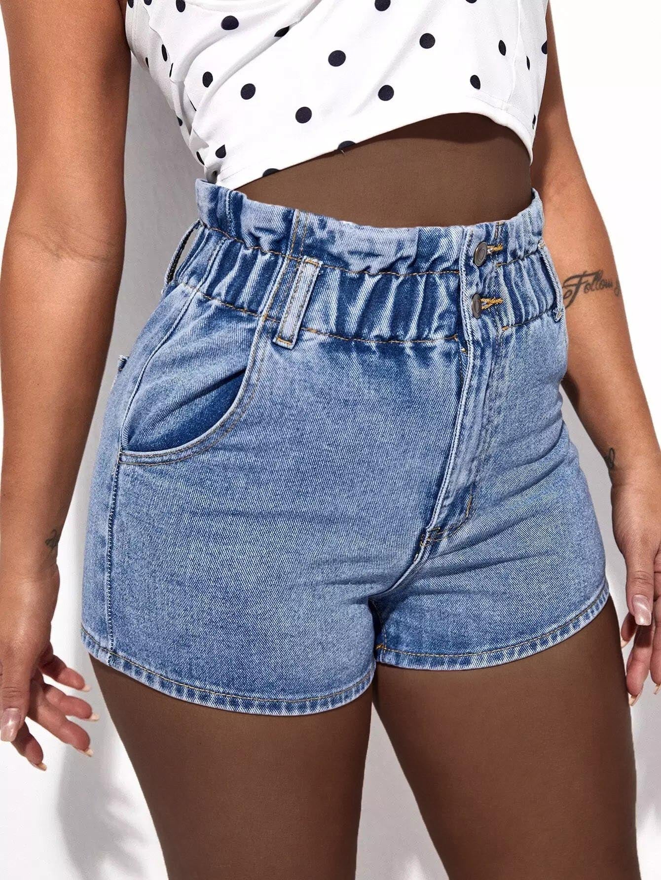 شورت جينز بفتحة مائلة بجيب مائل بأزرار