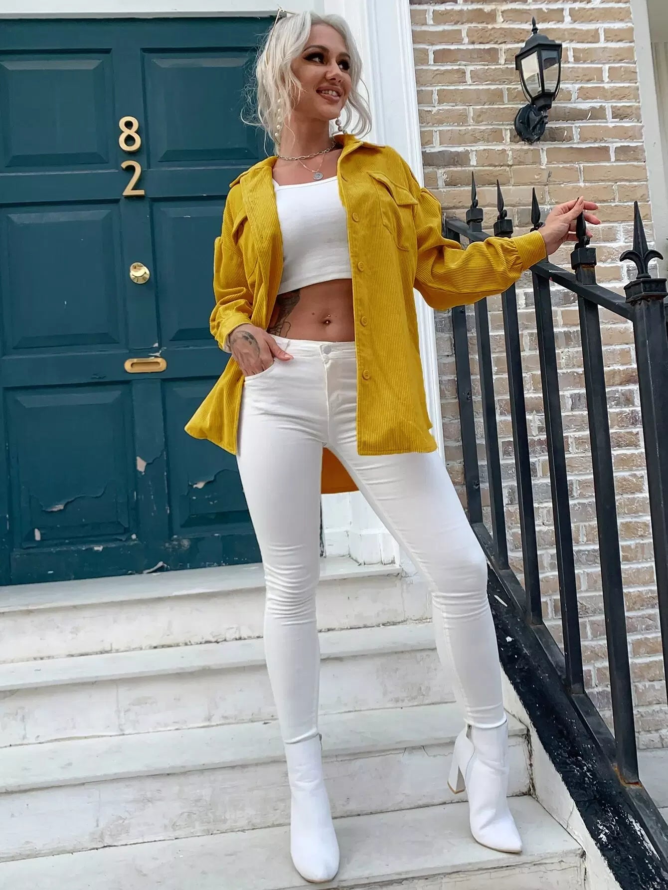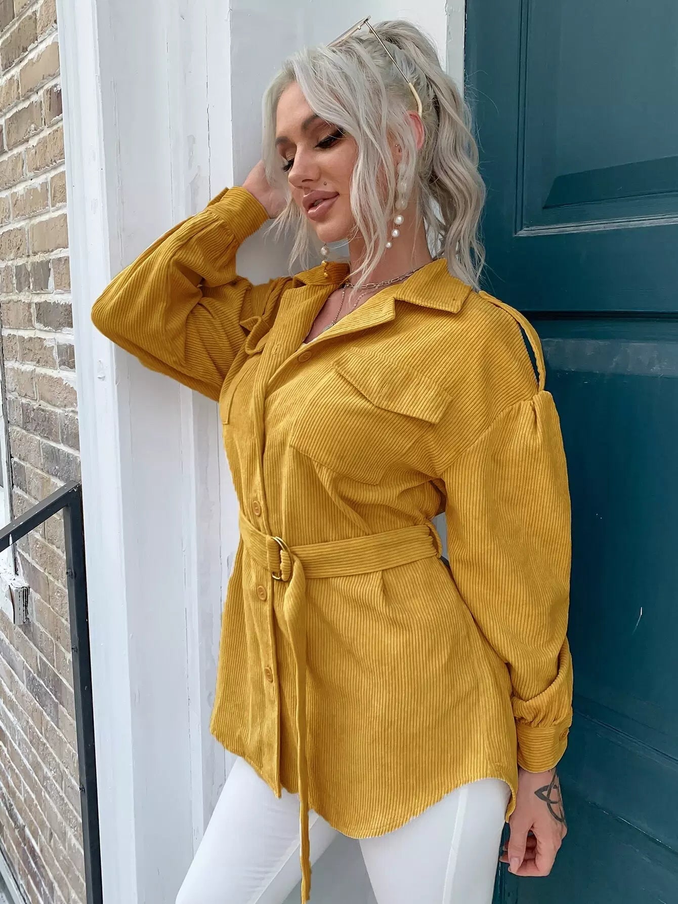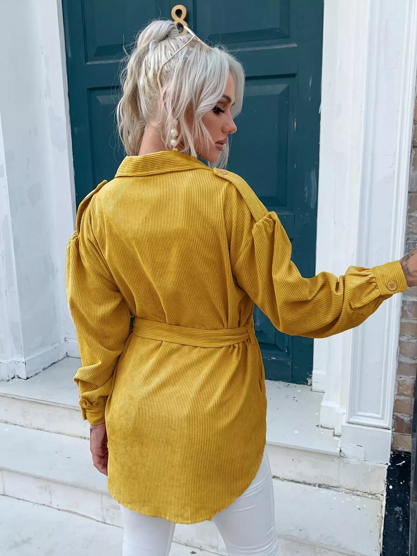 معطف سروال قصير بأزرار أمامية بدون حزام