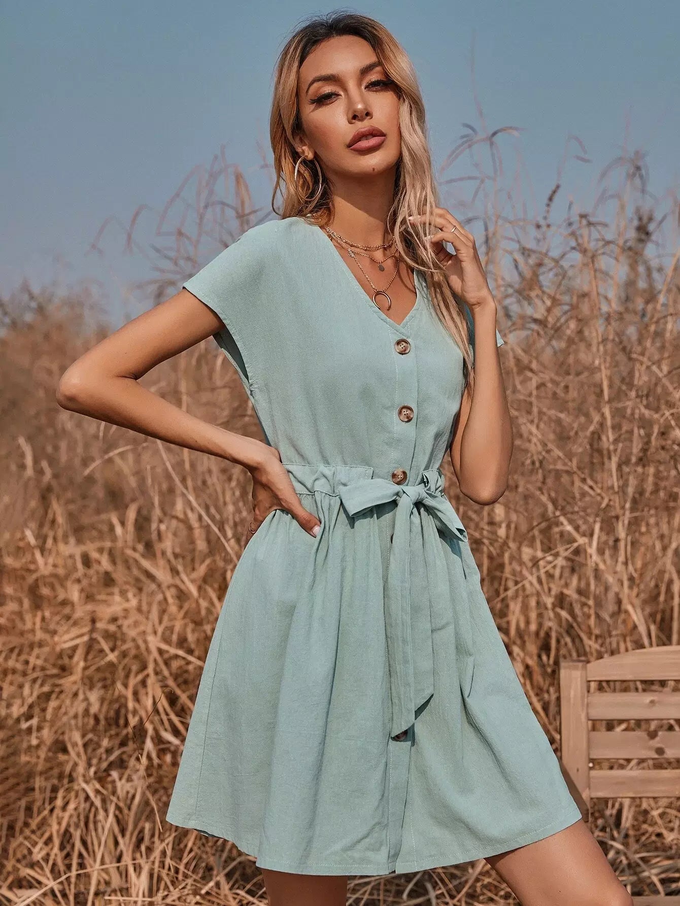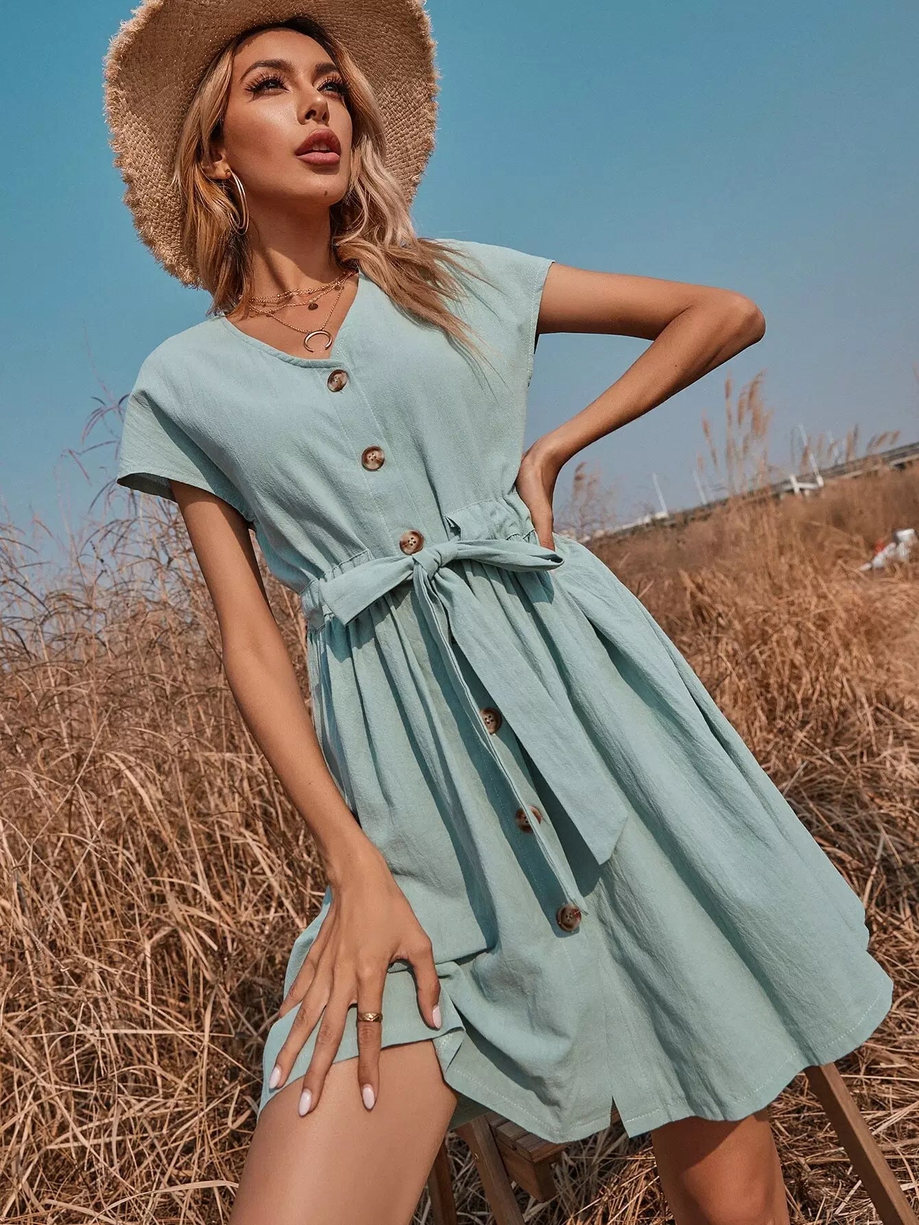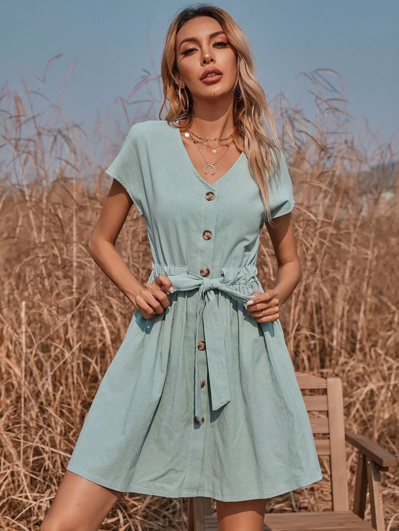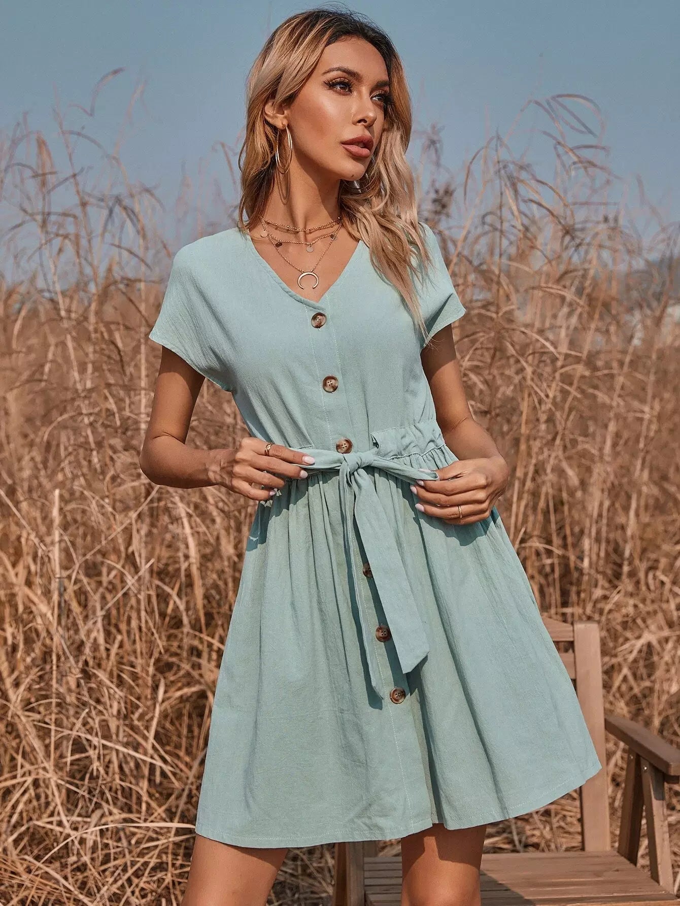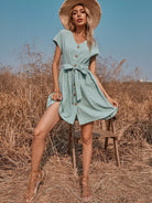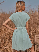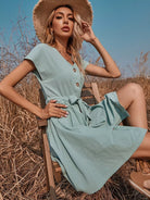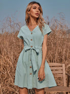 فستان سوينغ بخصر برباط أمامي بأزرار