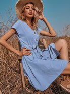 فستان سوينغ بخصر برباط أمامي بأزرار