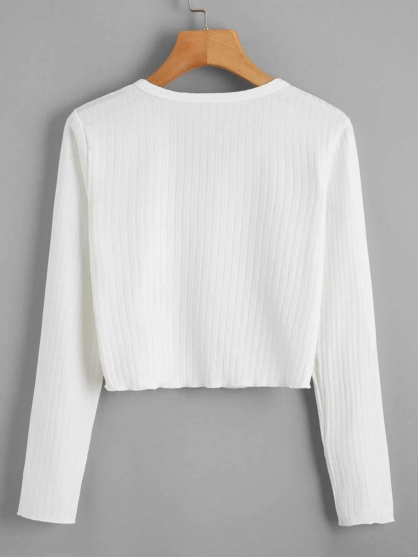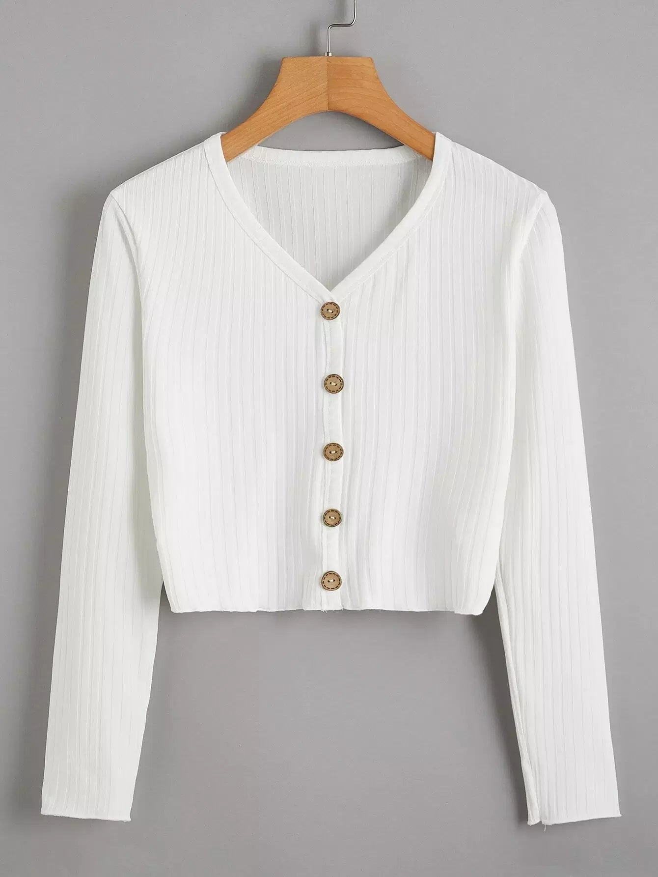 تي شيرت قصير محبوك بأزرار أمامية مضلعة ومحبوكة بأزرار