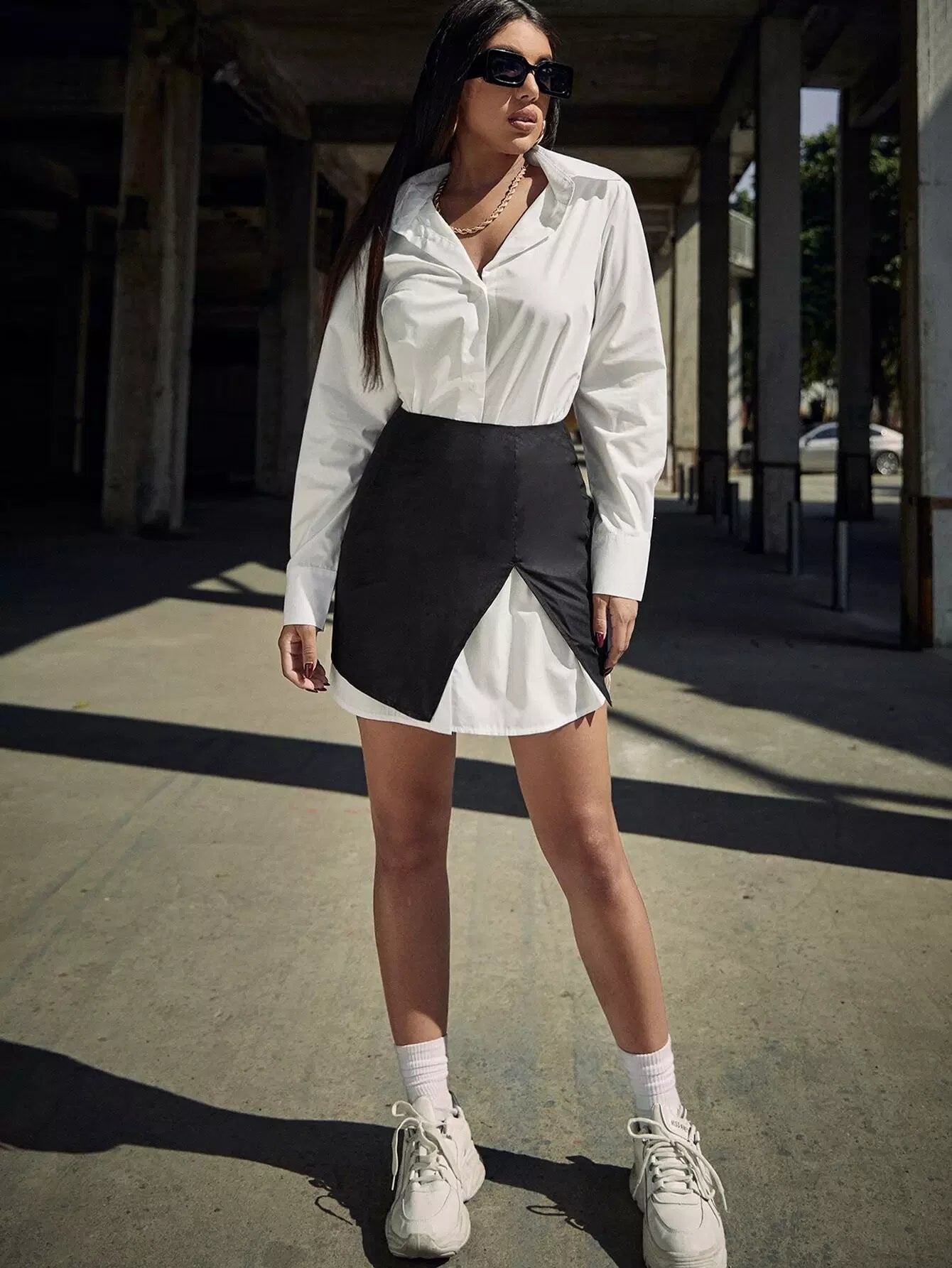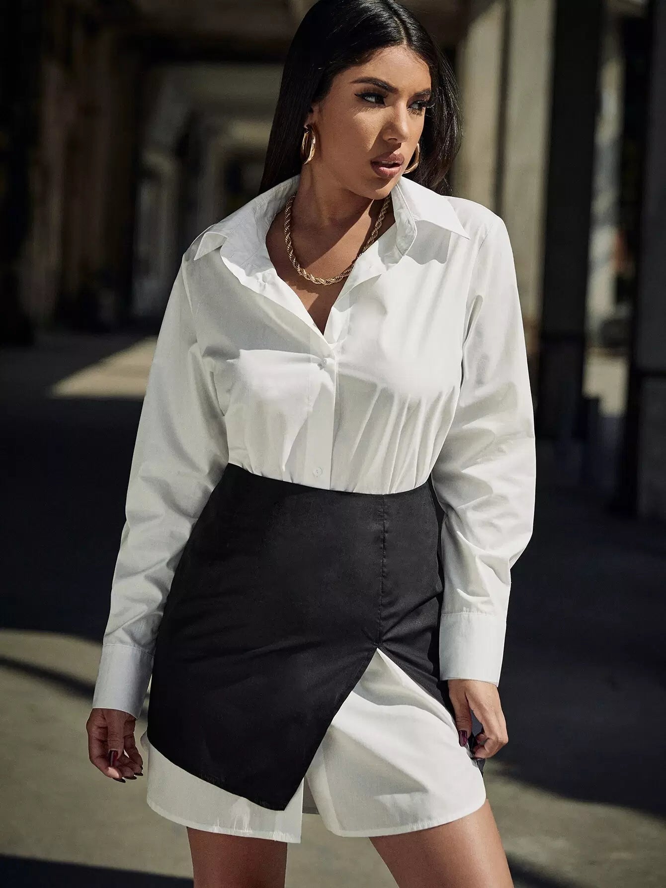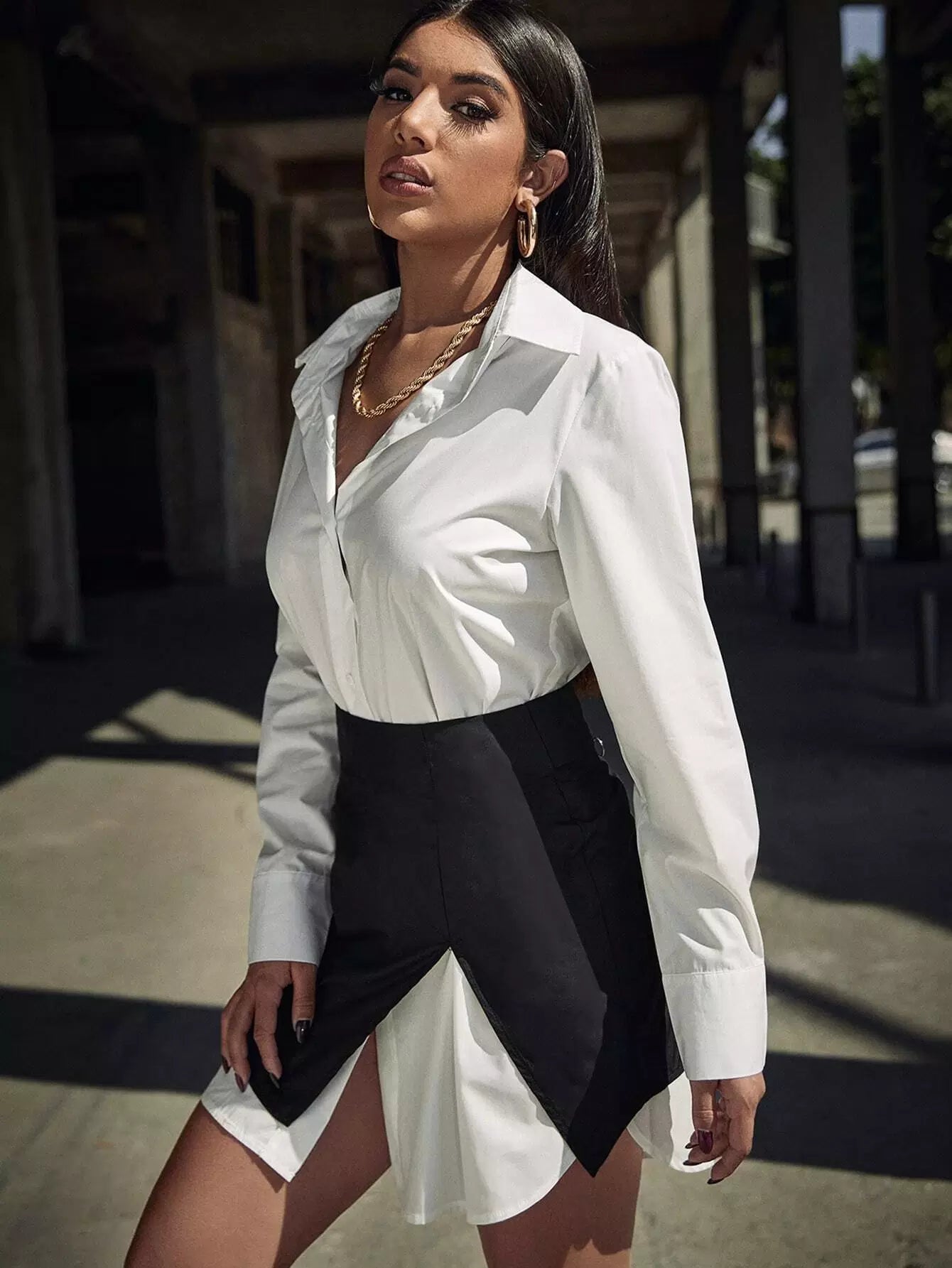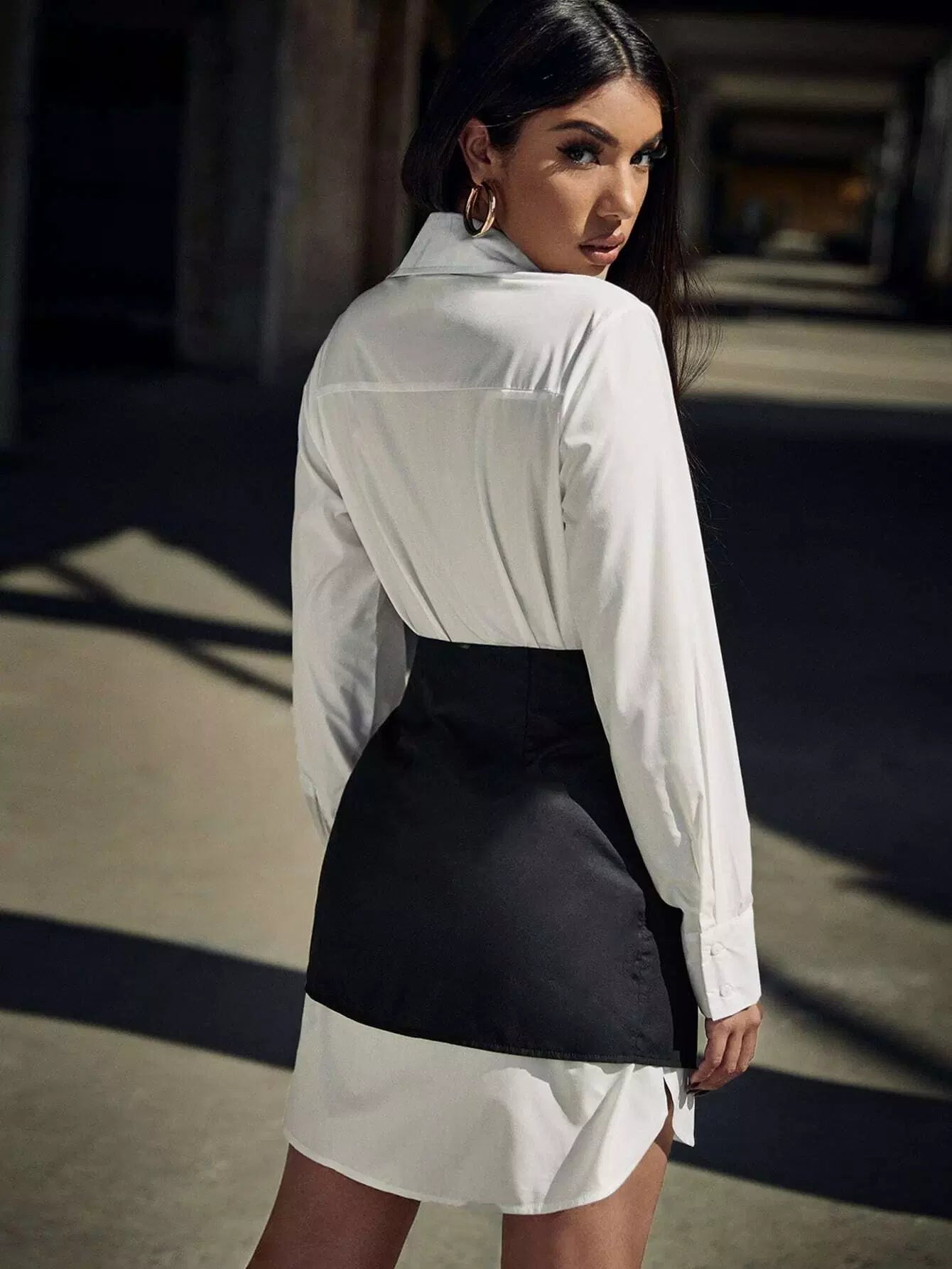 فستان قميص بأزرار أمامية مع كورسيه مشقوق من الأمام