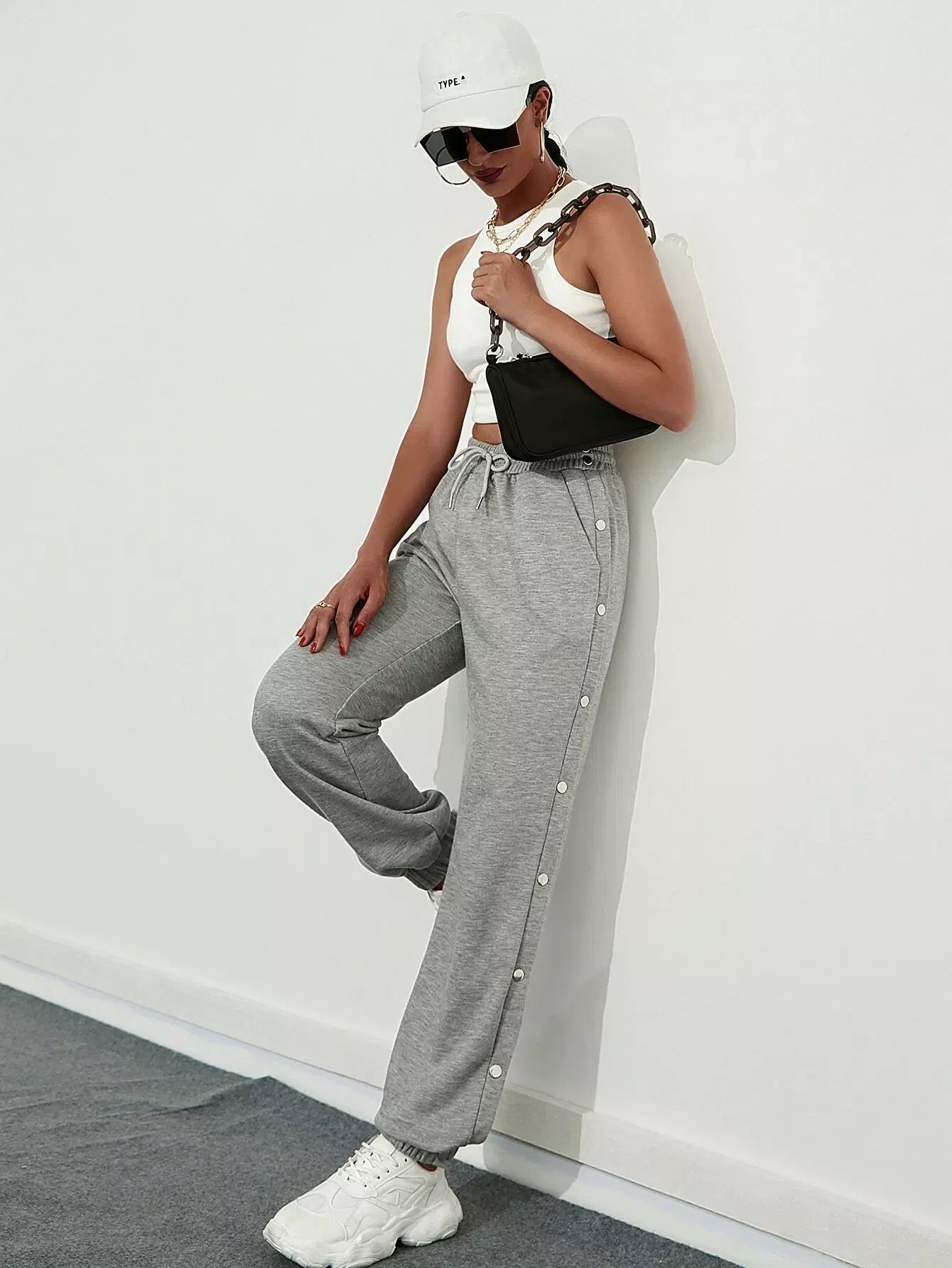 بنطلون رياضي برباط خصر بأزرار جانبية
