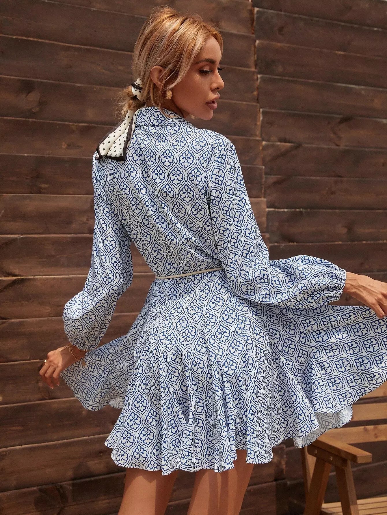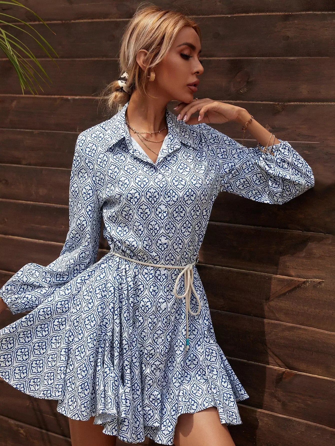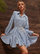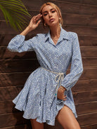 فستان بطبعة أزرار كاملة بدون حزام