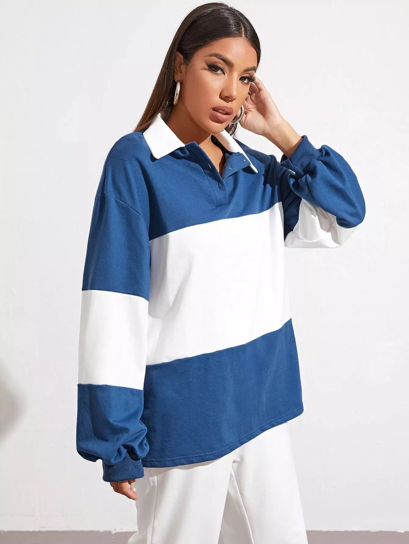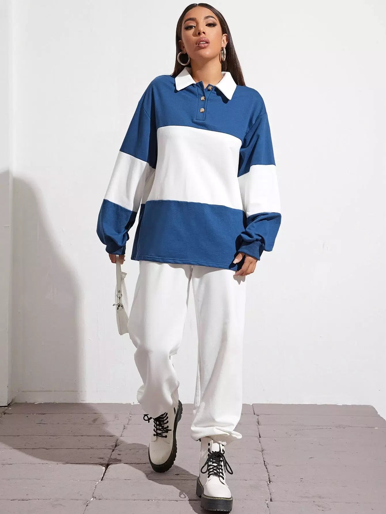 سويت شيرت بأزرار بنصف فتحة بأزرار ملونة