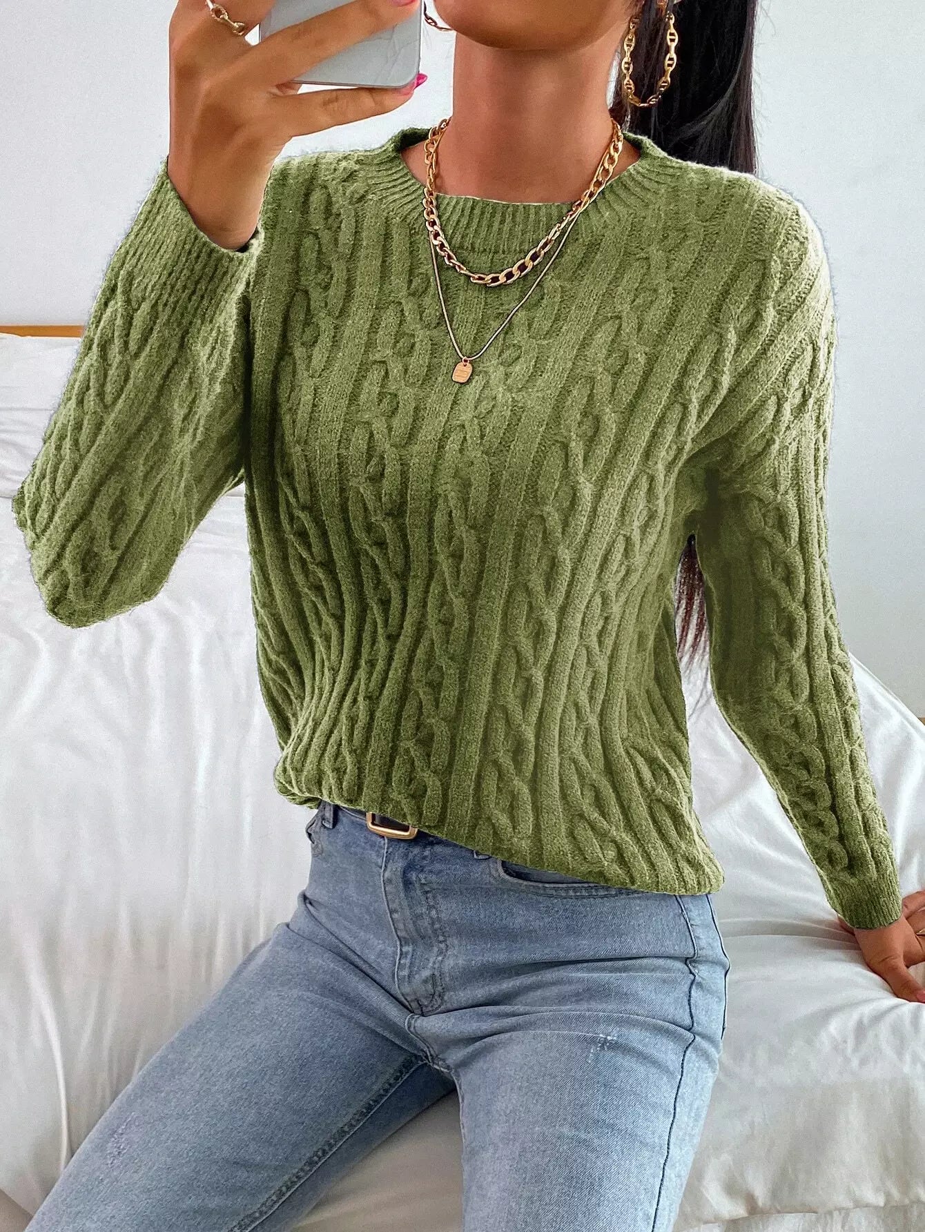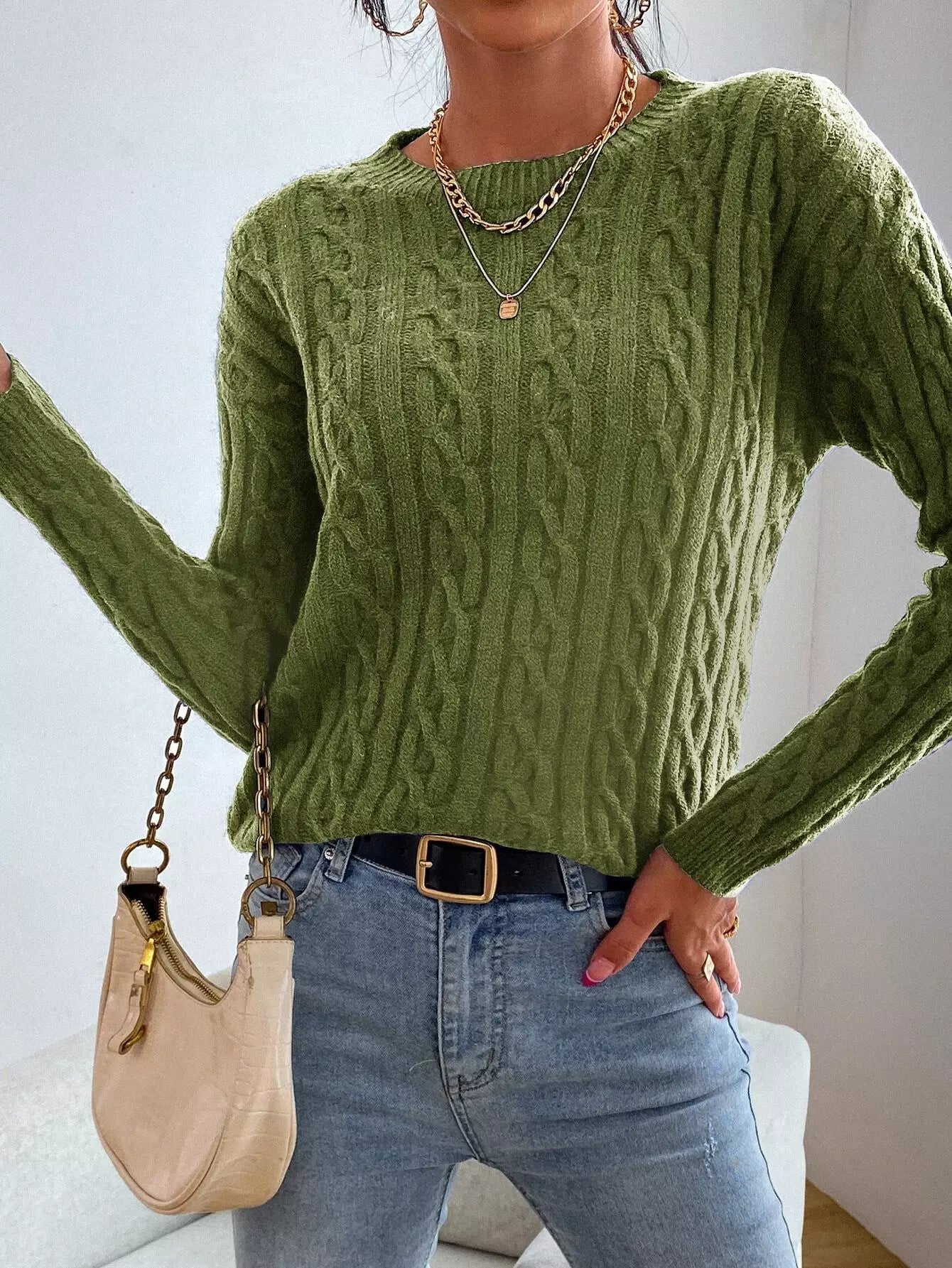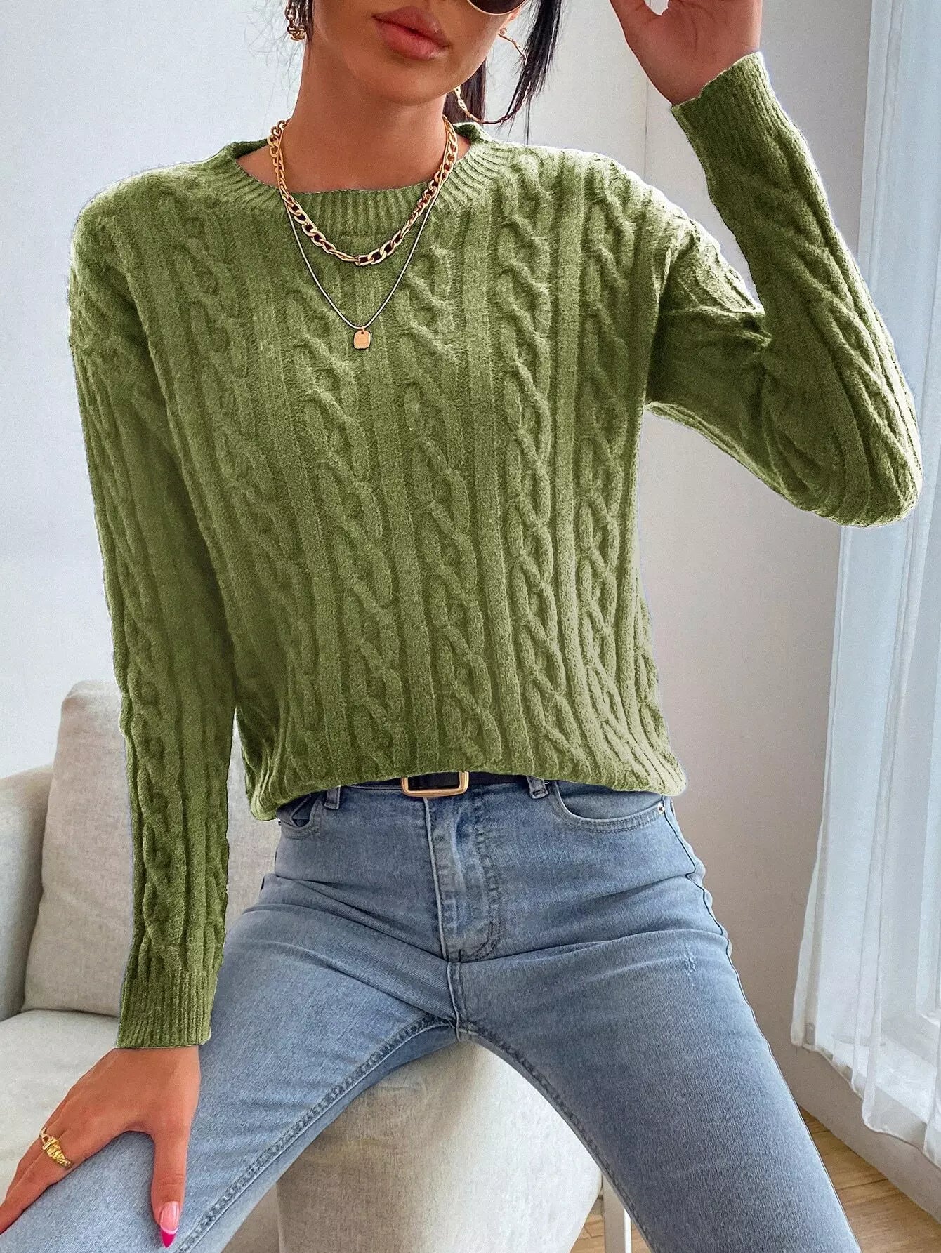 سترة كابل محبوكة منسدلة الكتفين