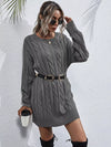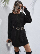 فستان منسدل الأكتاف محبوك بكابل متماسك بدون حزام
