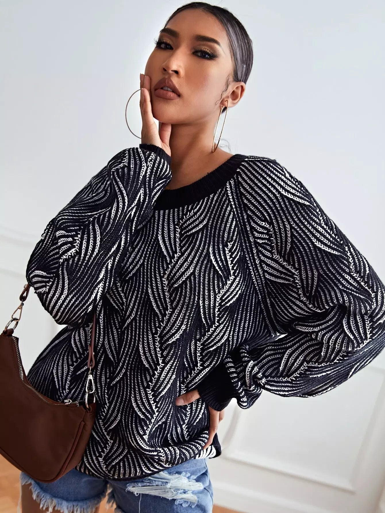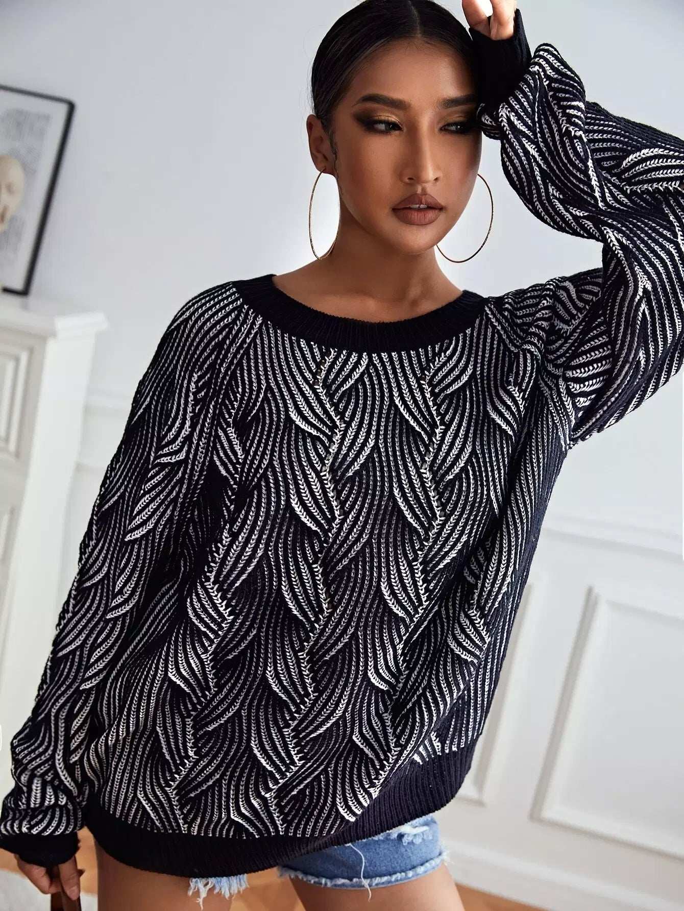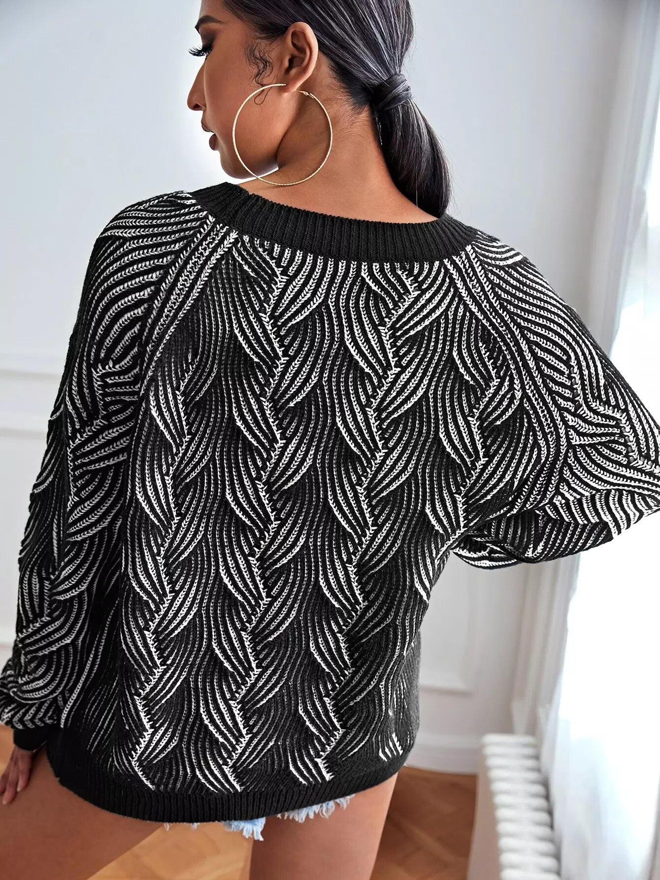 كنزة بأكمام راجلان محبوكة بكابلات