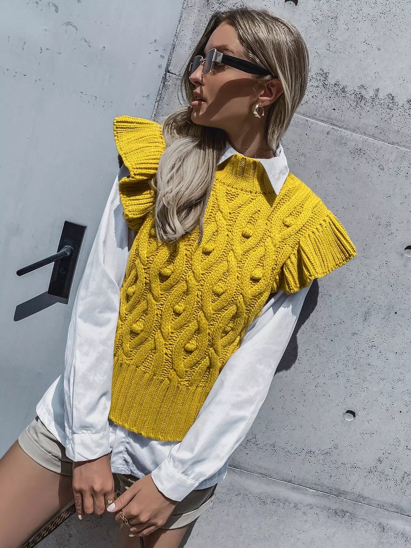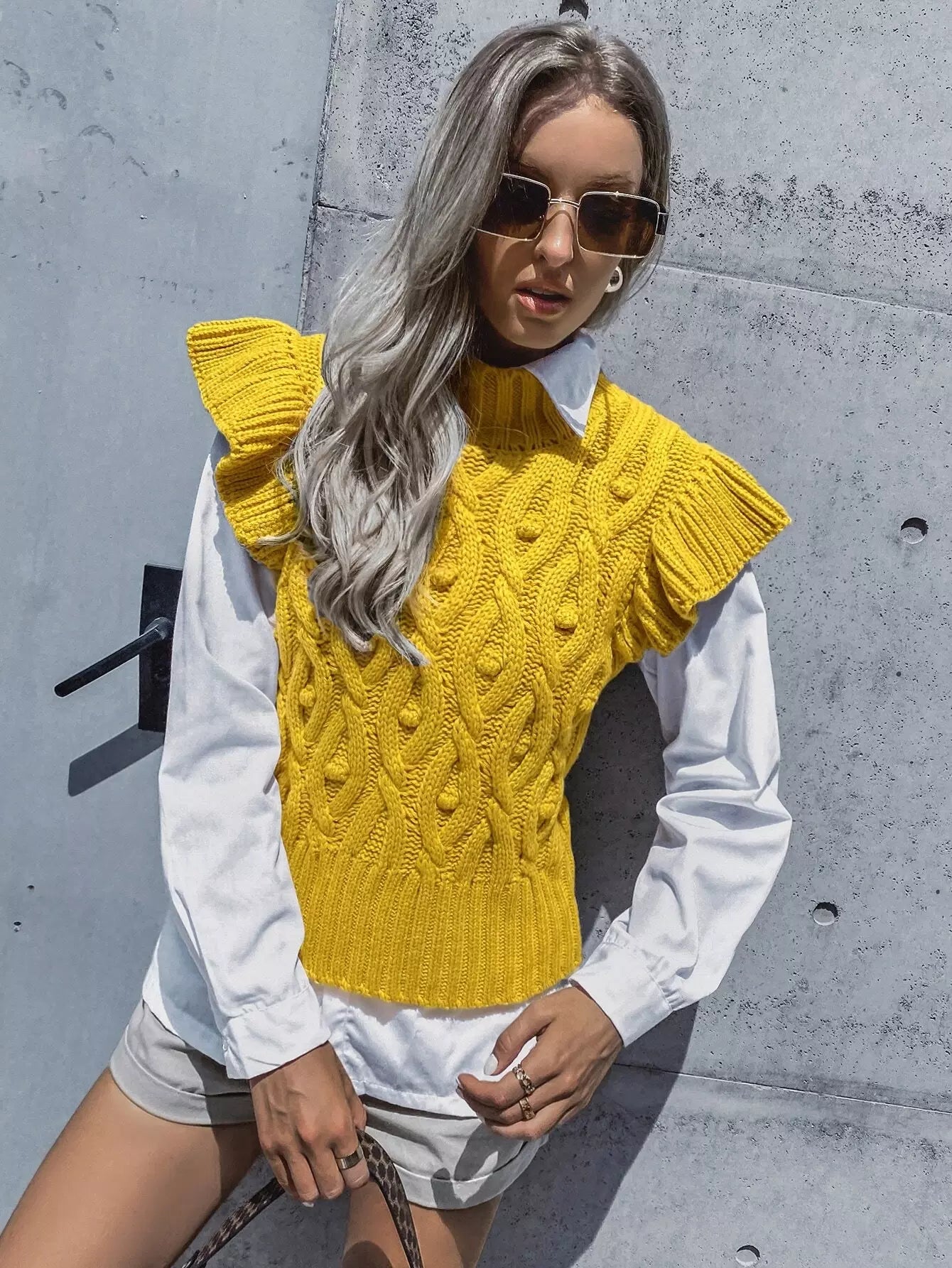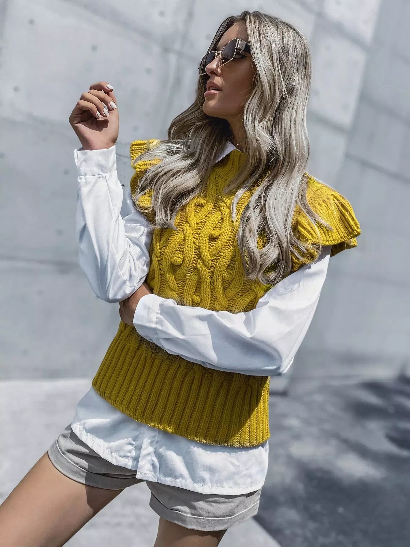 سترة كنزة بحياكة كبلية مكشكشة بحواف مكشكشة