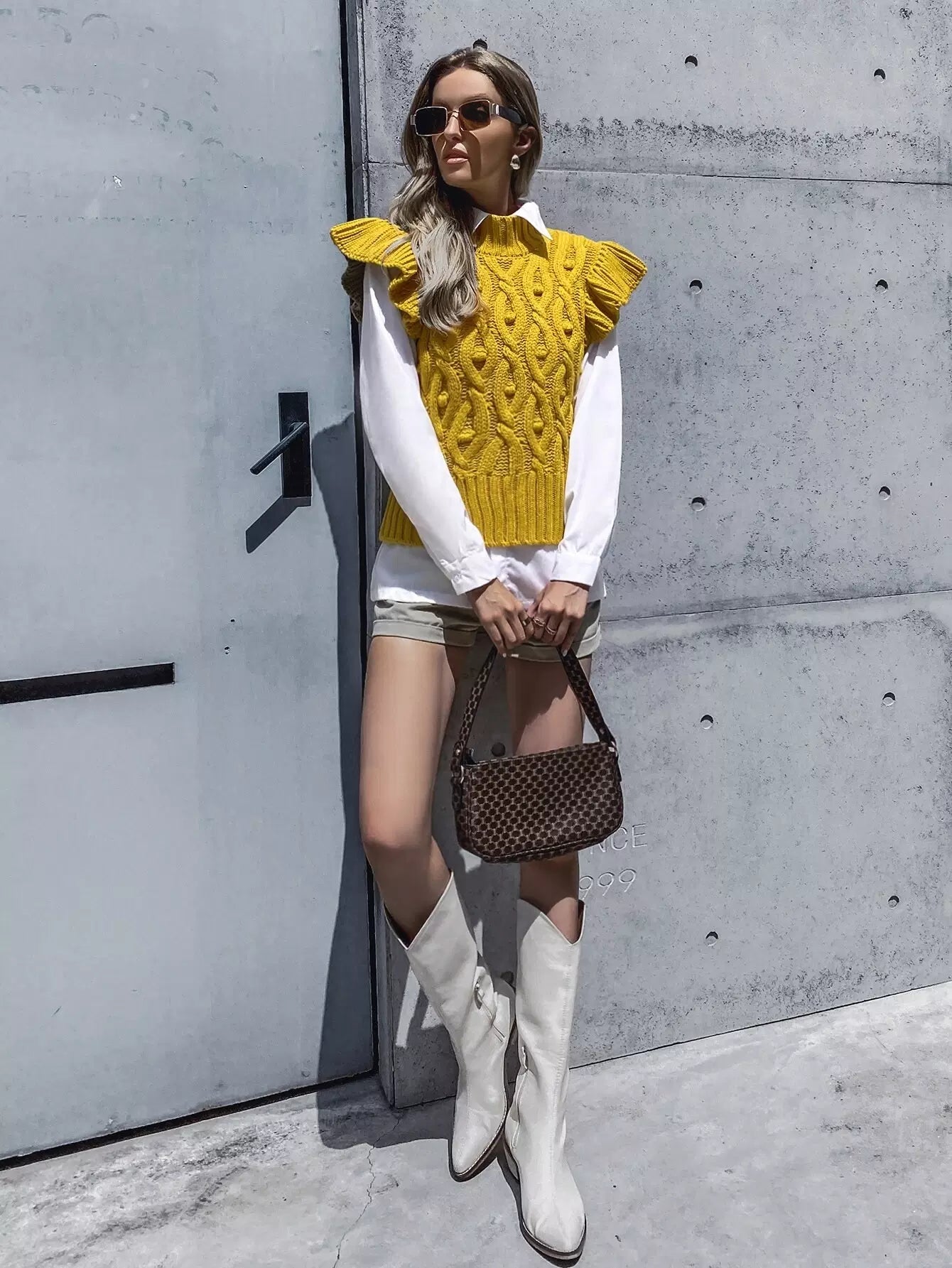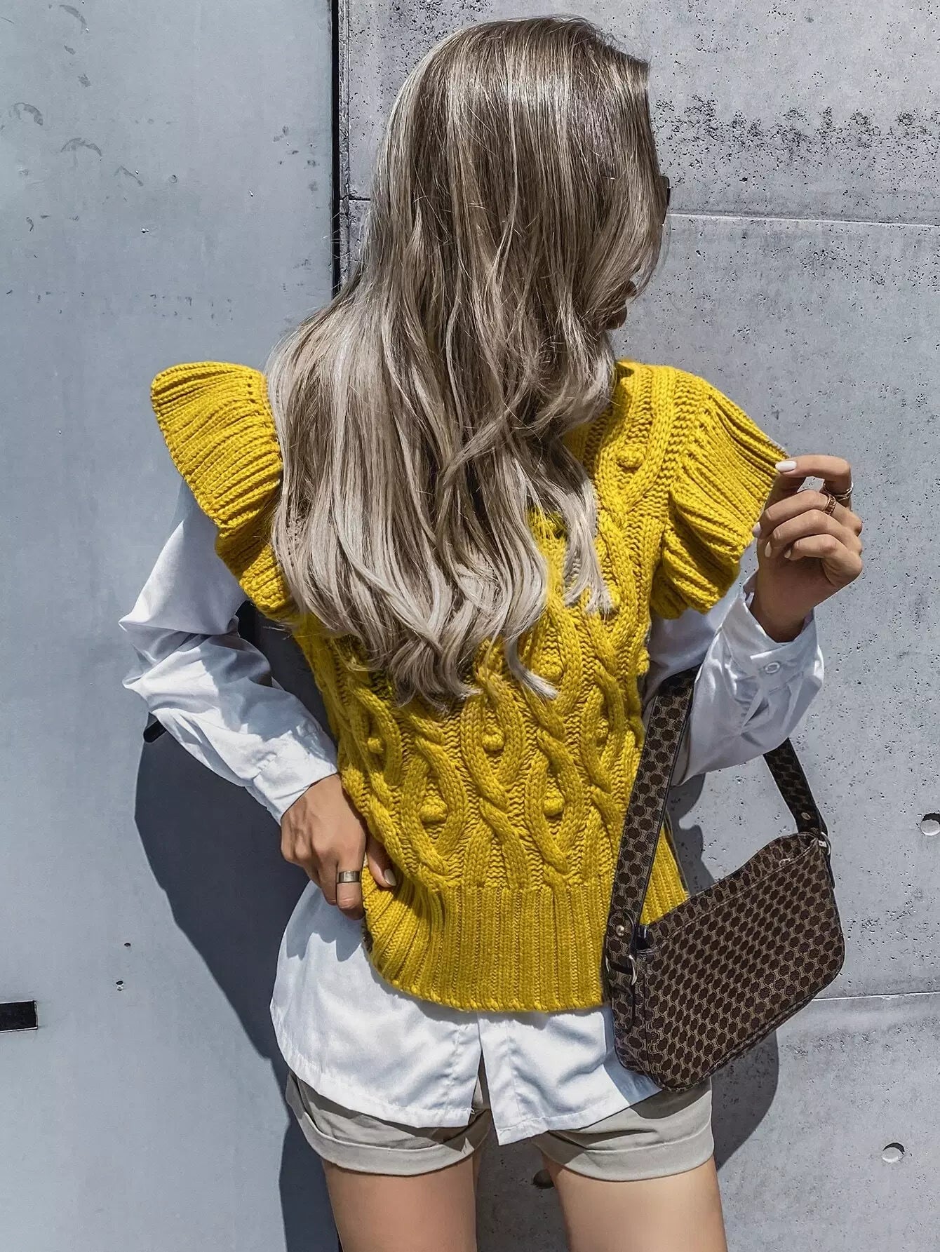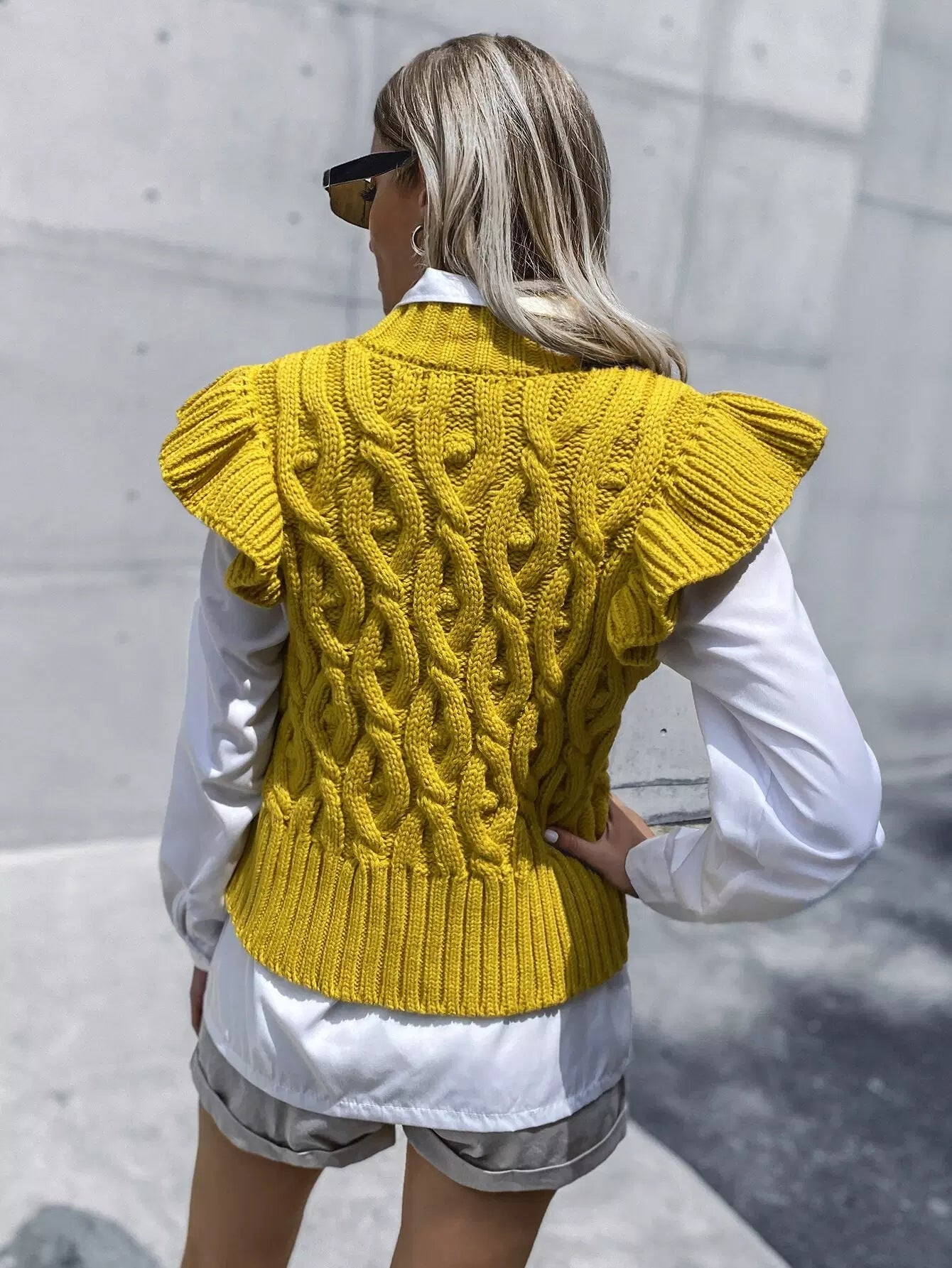 سترة كنزة بحياكة كبلية مكشكشة بحواف مكشكشة