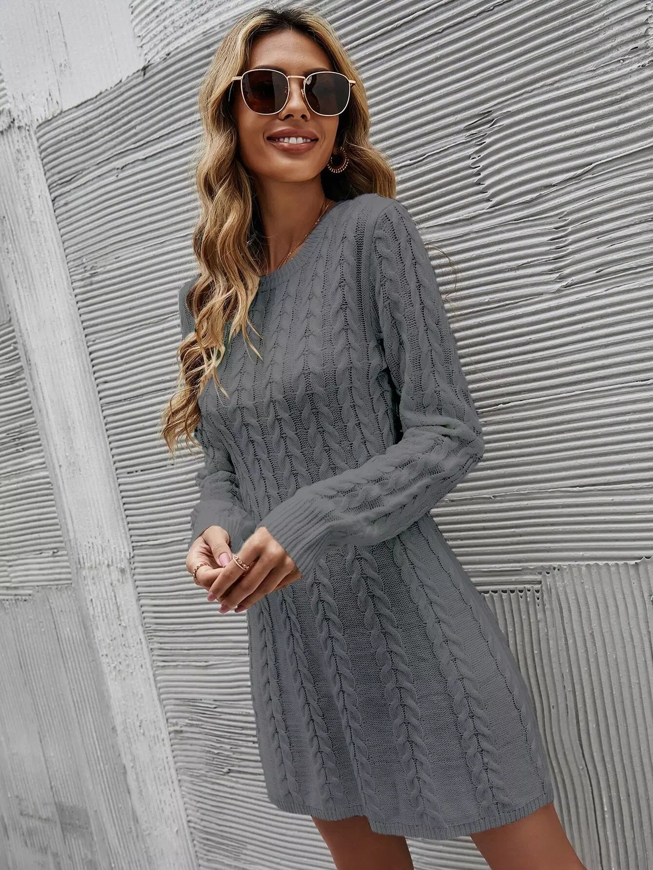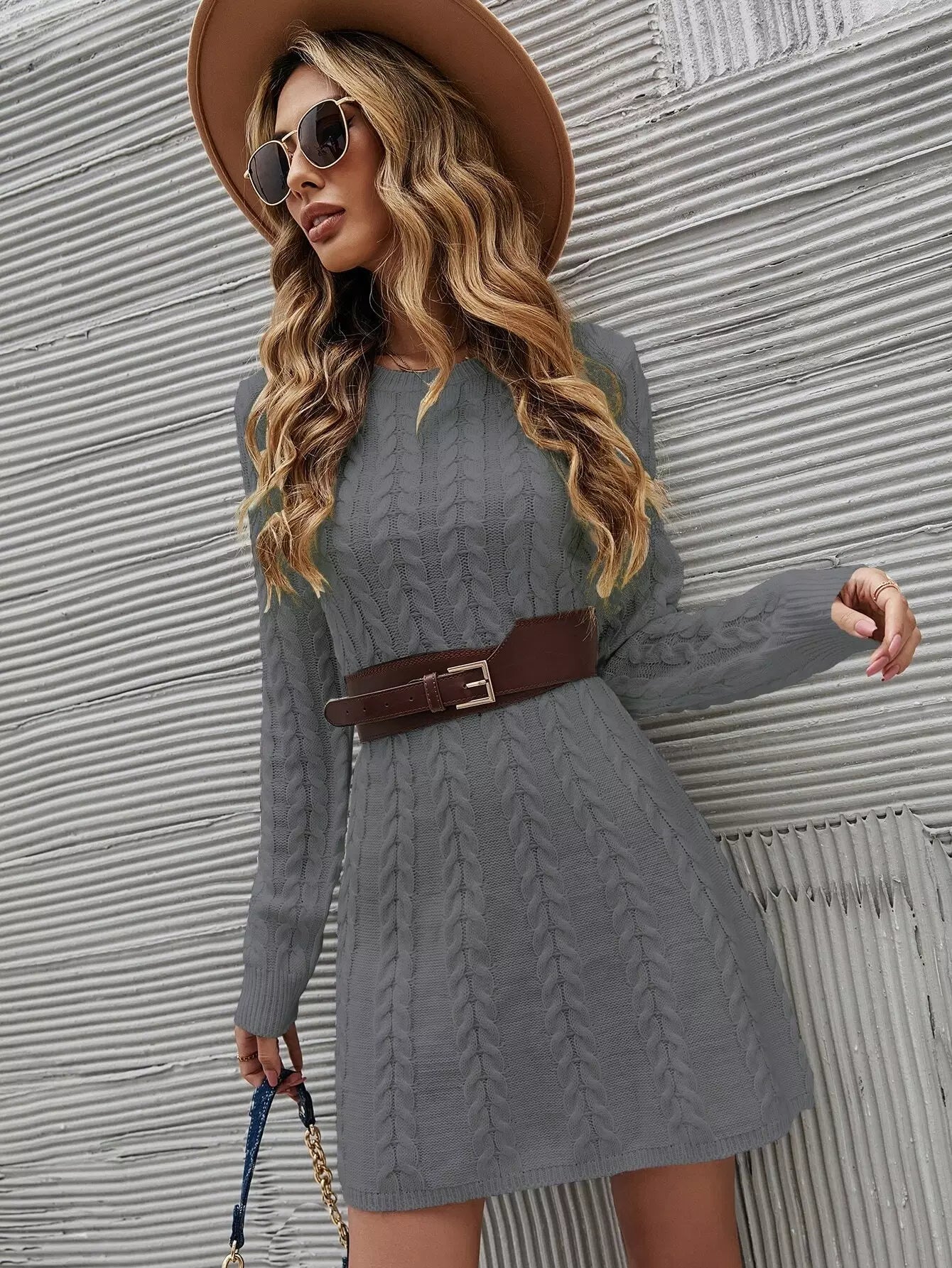 فستان كنزة كبلية محبوكة بدون حزام
