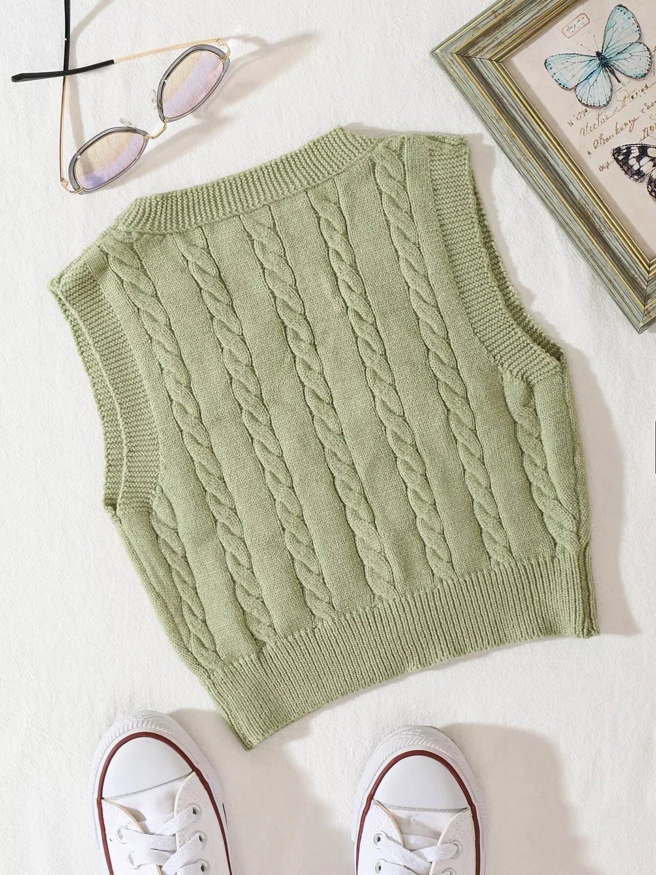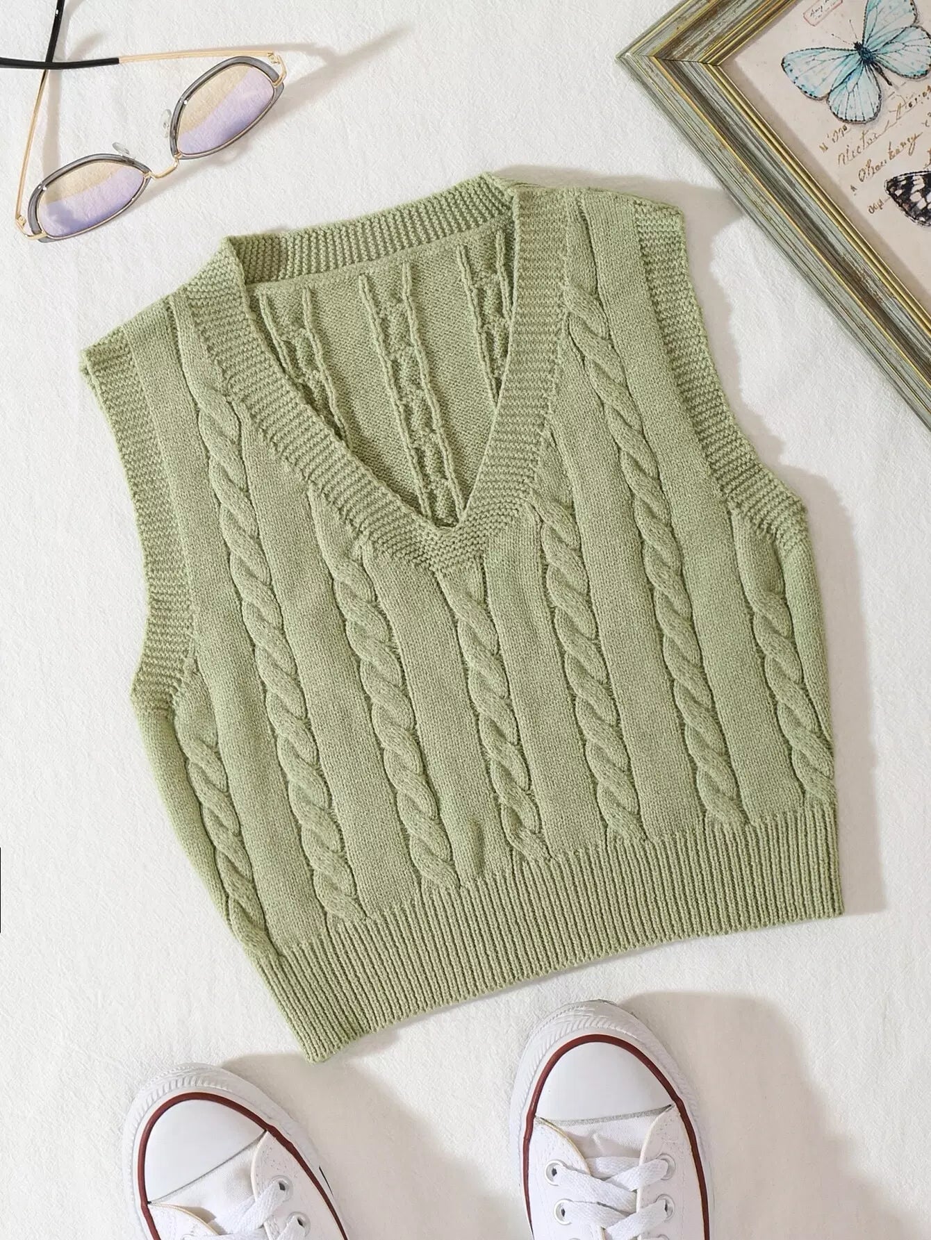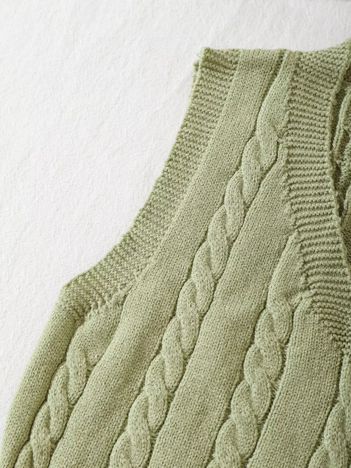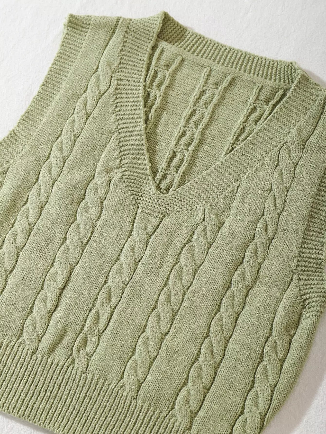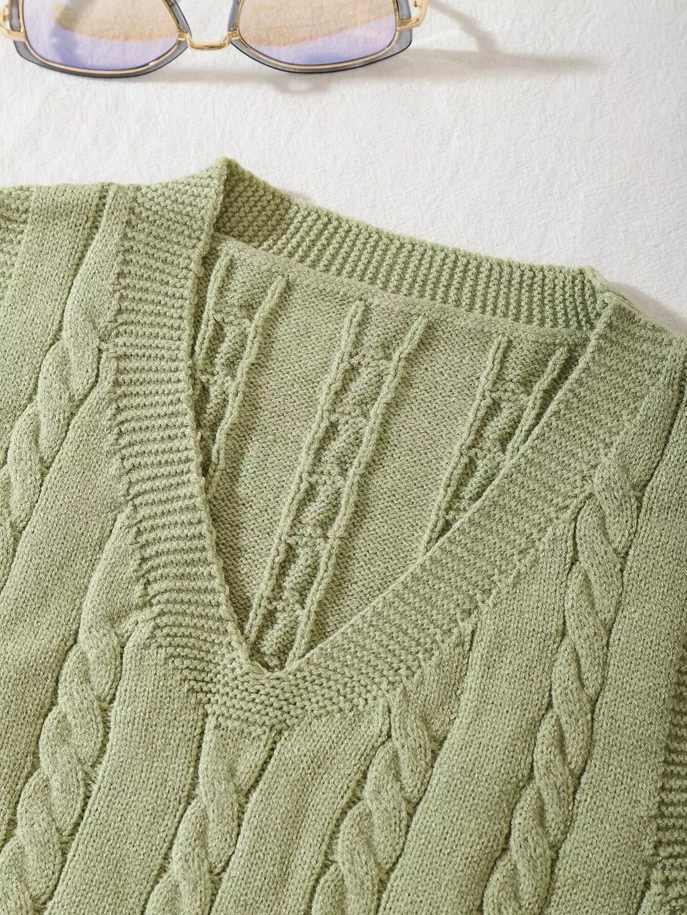 سترة صوفية بياقة على شكل كابل محبوكة على شكل حرف V