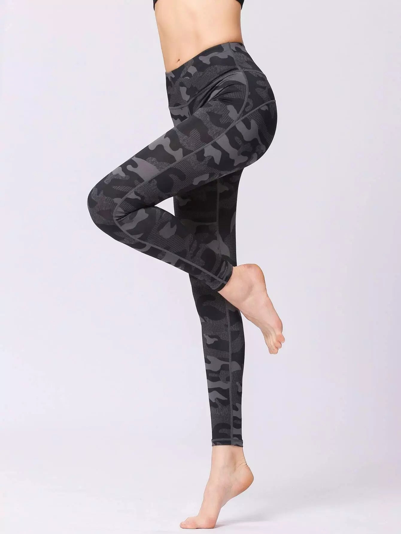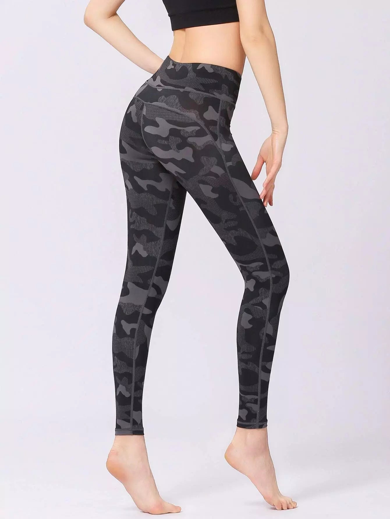 بنطلون ضيق رياضي بحزام خصر عريض بنقشة كامو