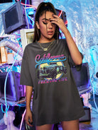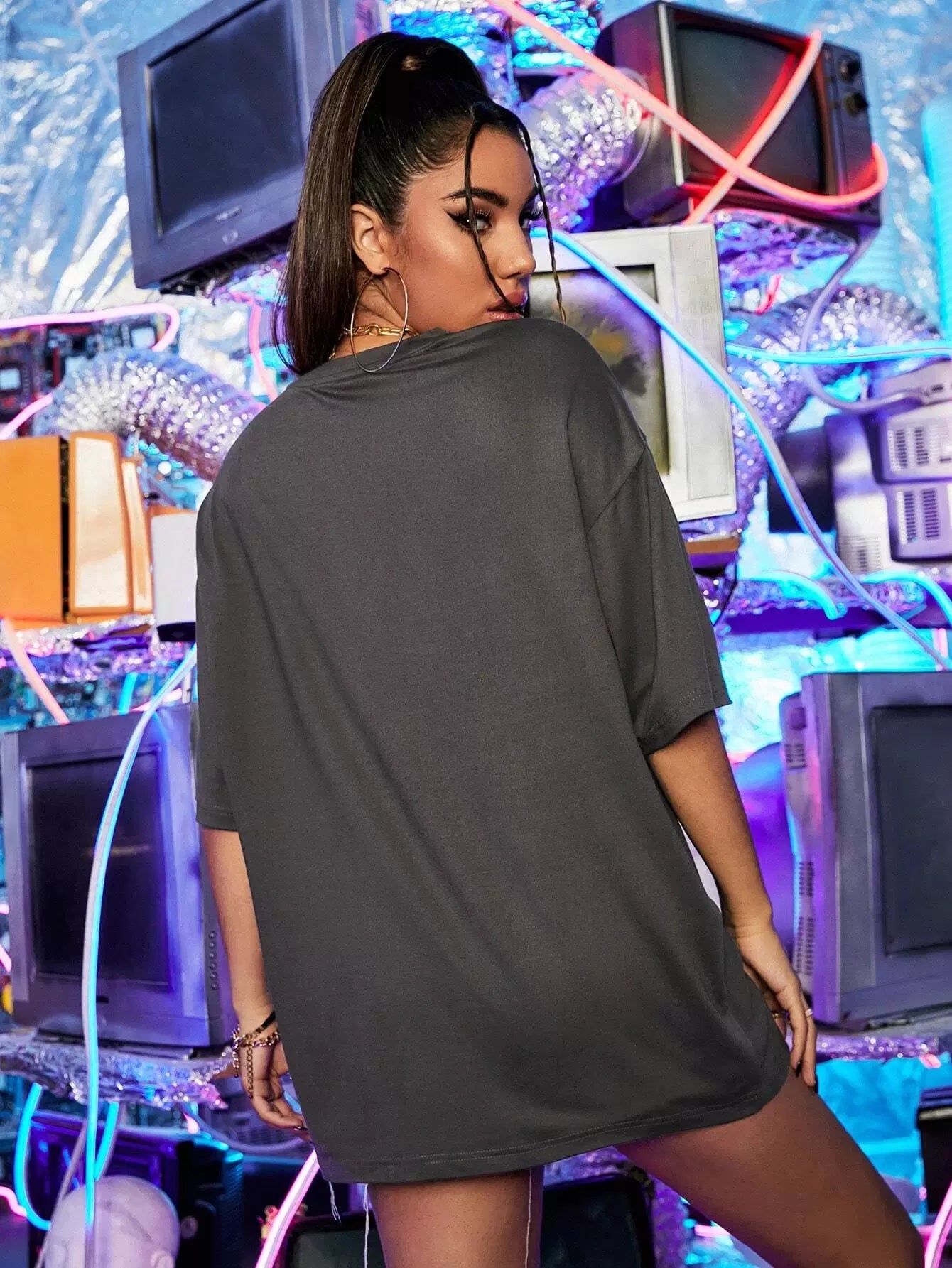 تي شيرت منسدل الكتف برسمة سيارة وحرف