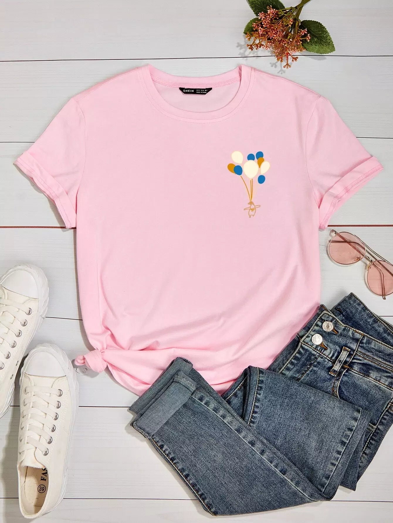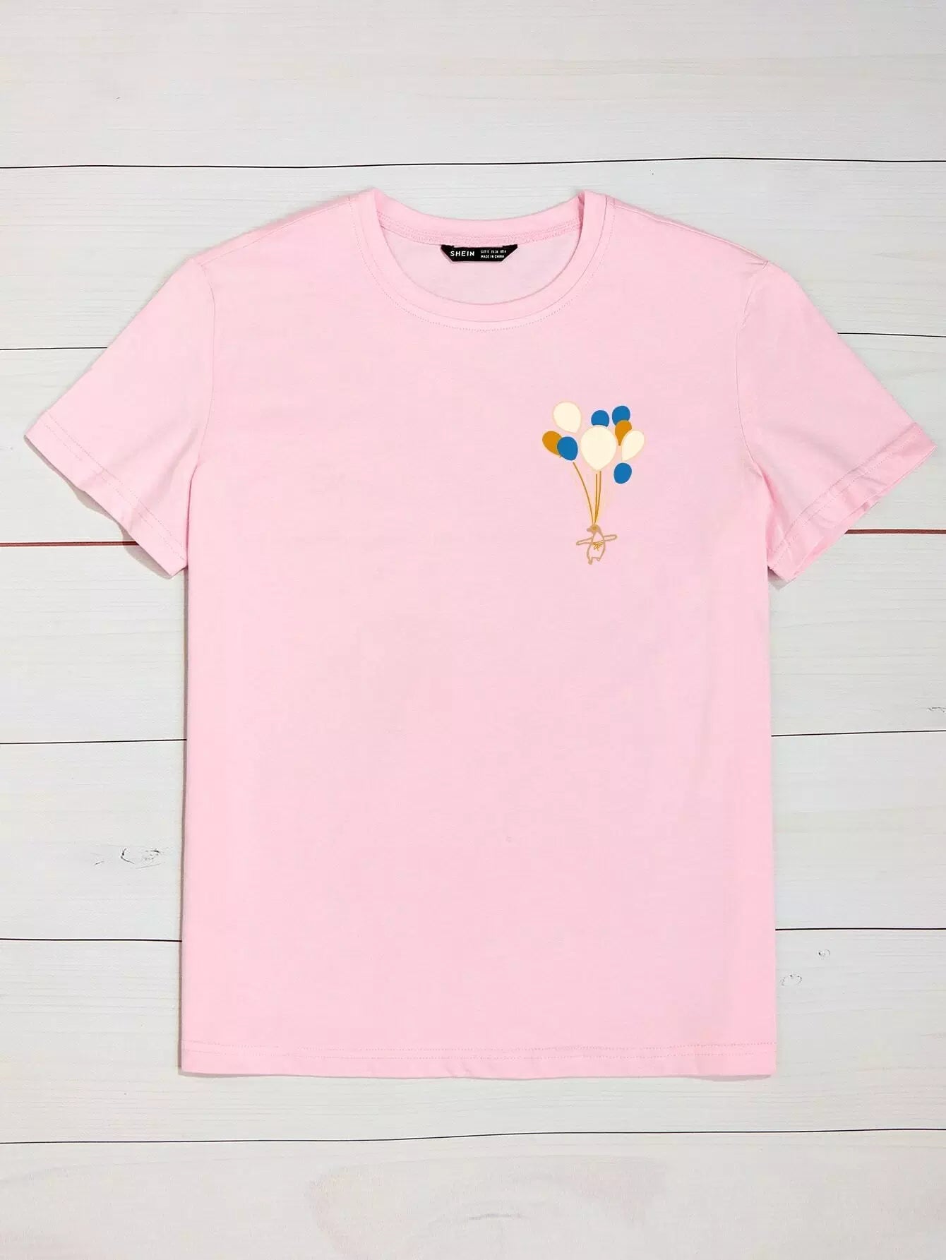 تي شيرت برقبة مستديرة برسومات كرتونية