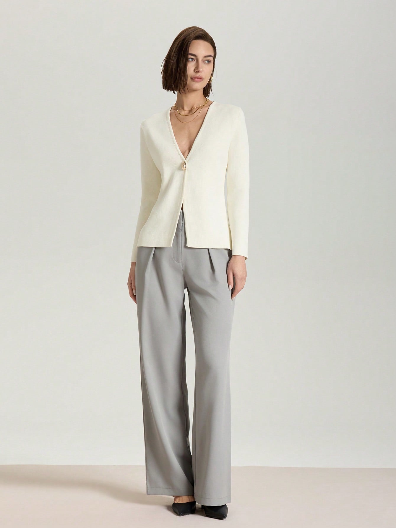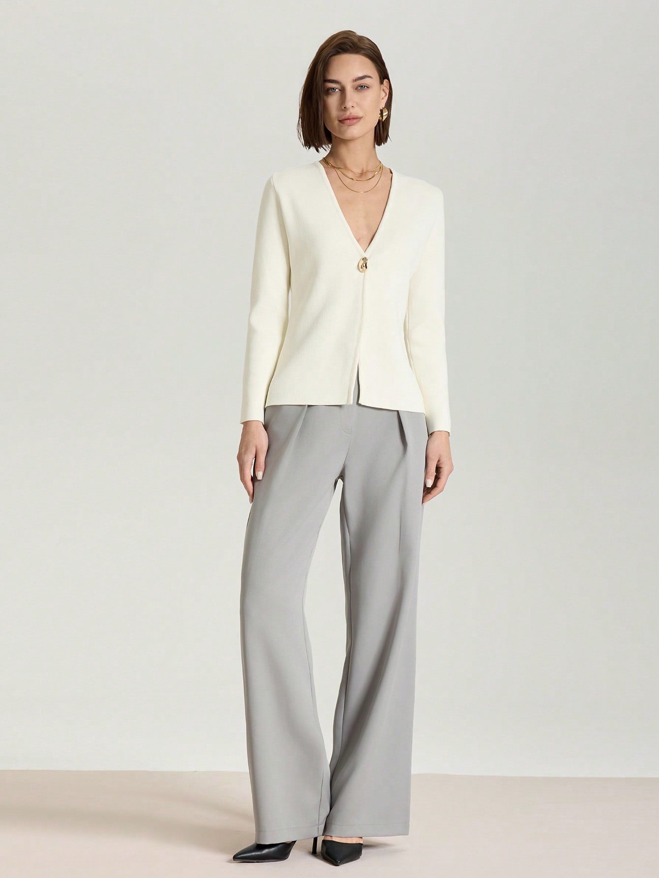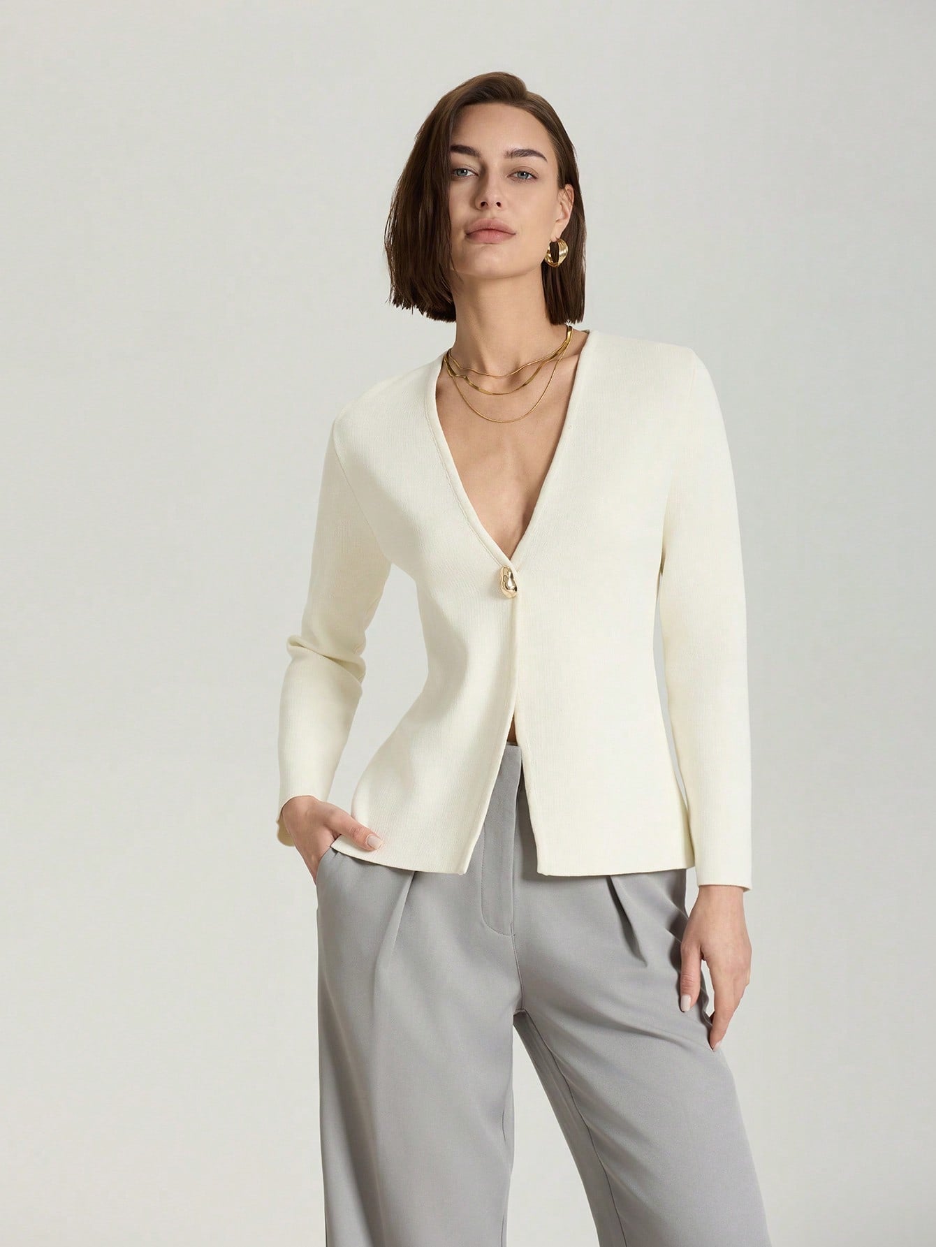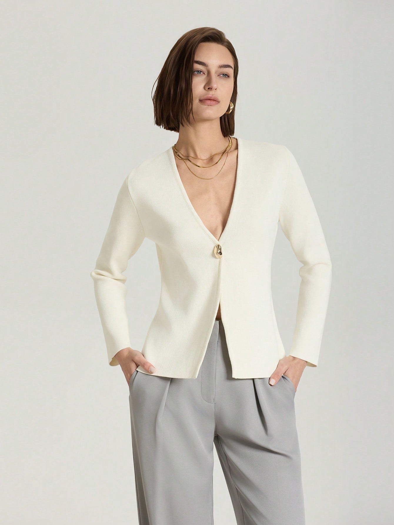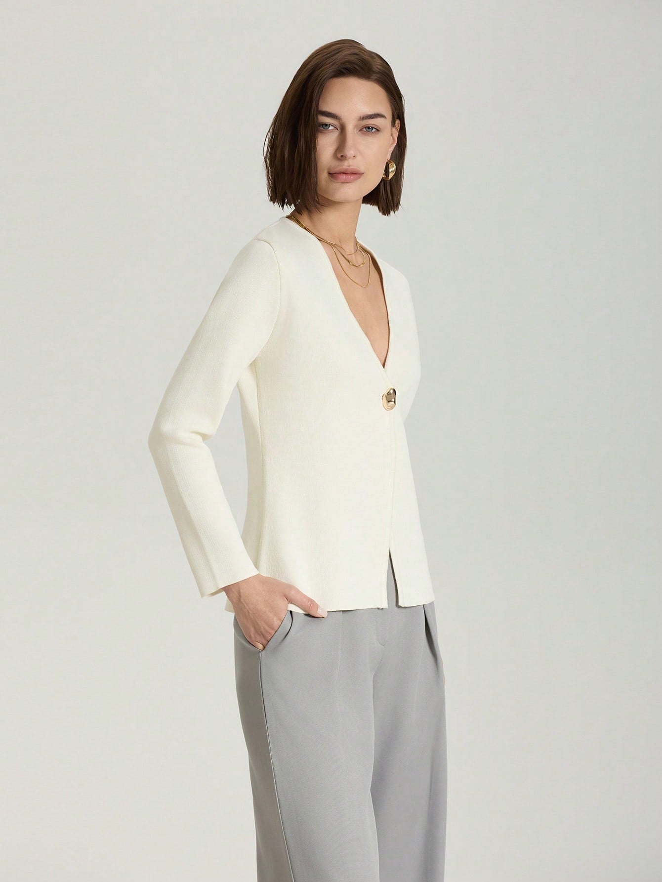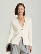 كارديجان محبوك بلون موحد، عملي وأنيق