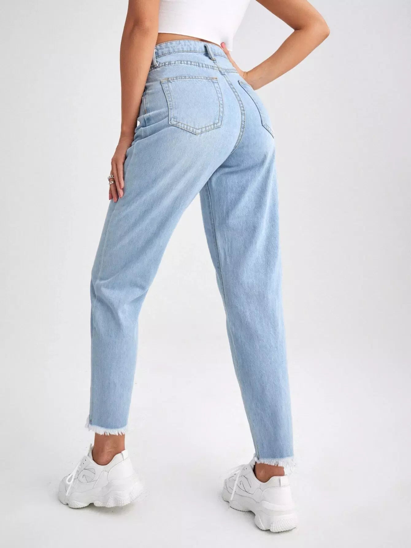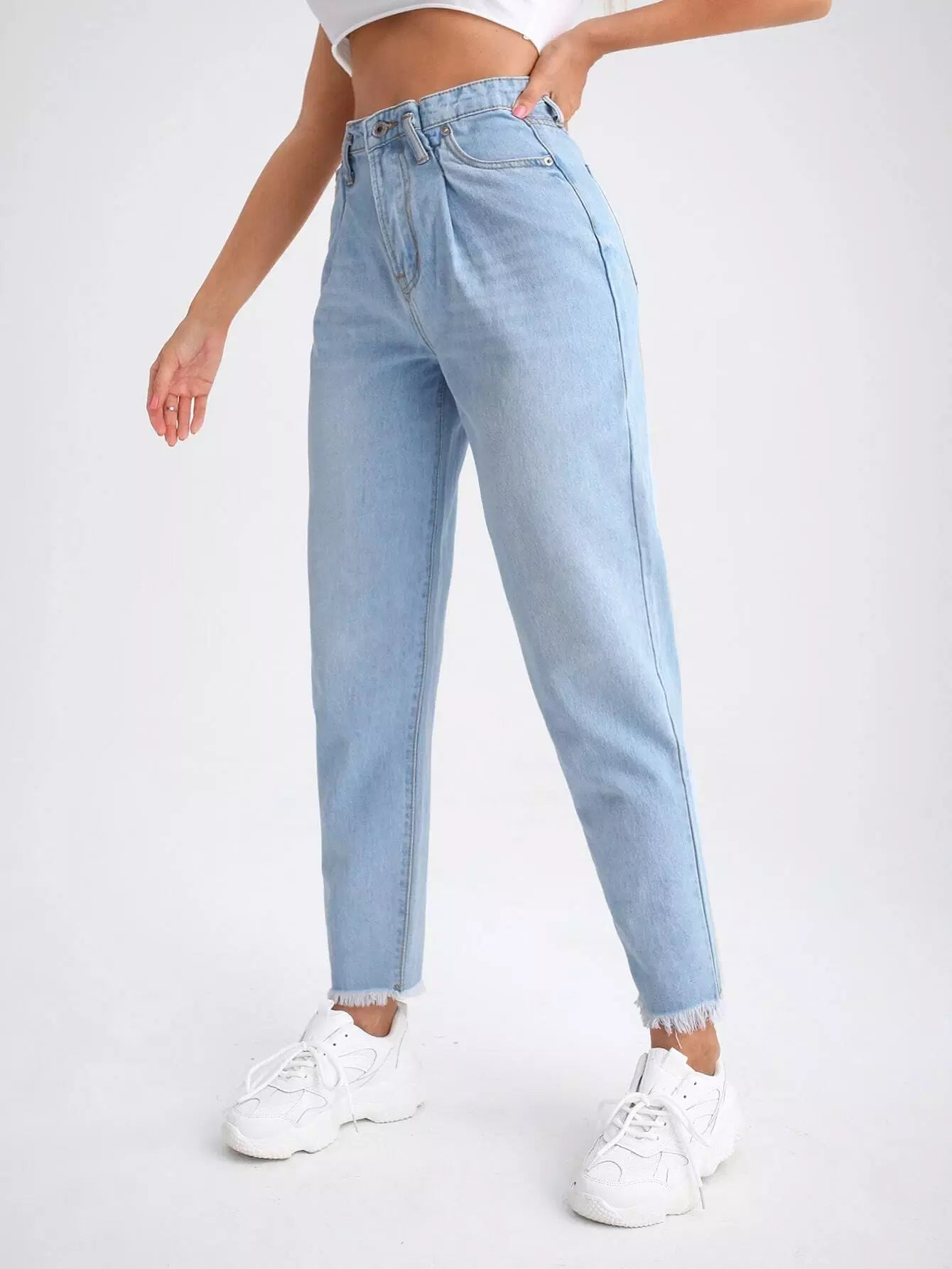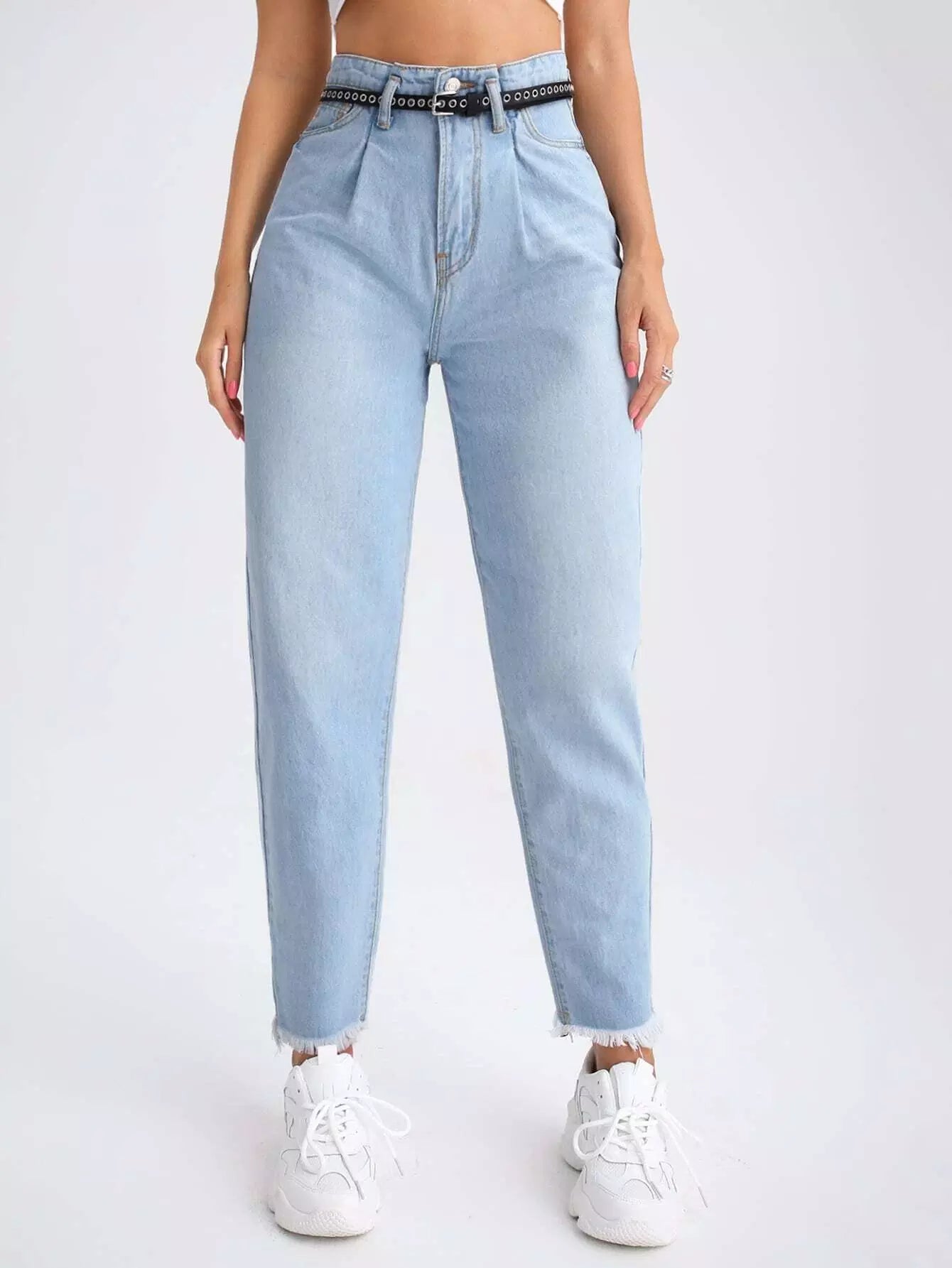 بنطلون جينز بحاشية من القطط بحزام من دون حزام