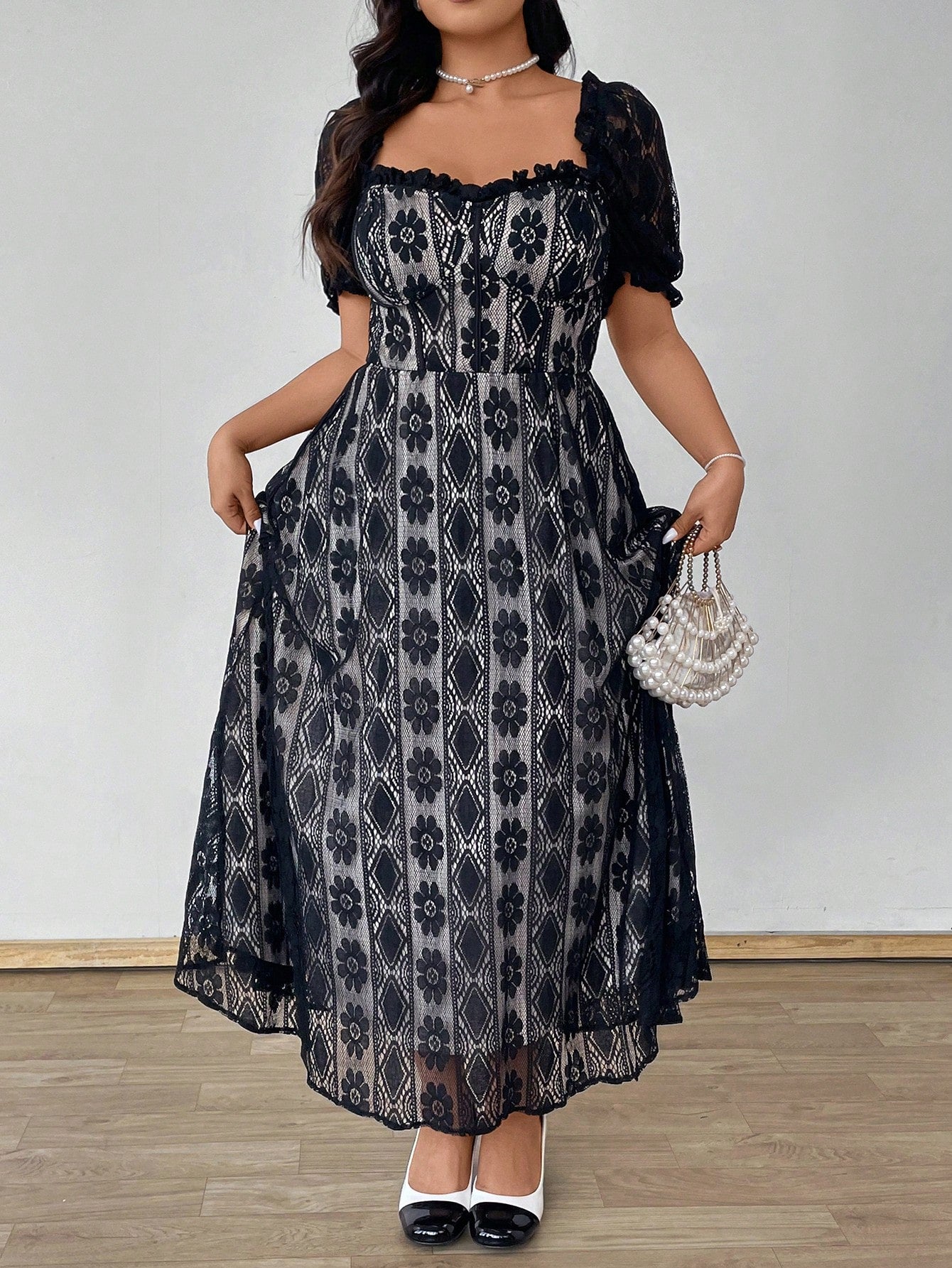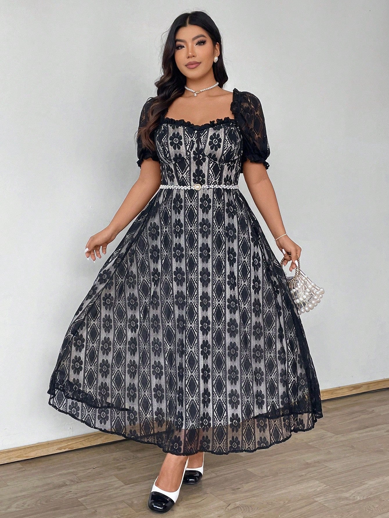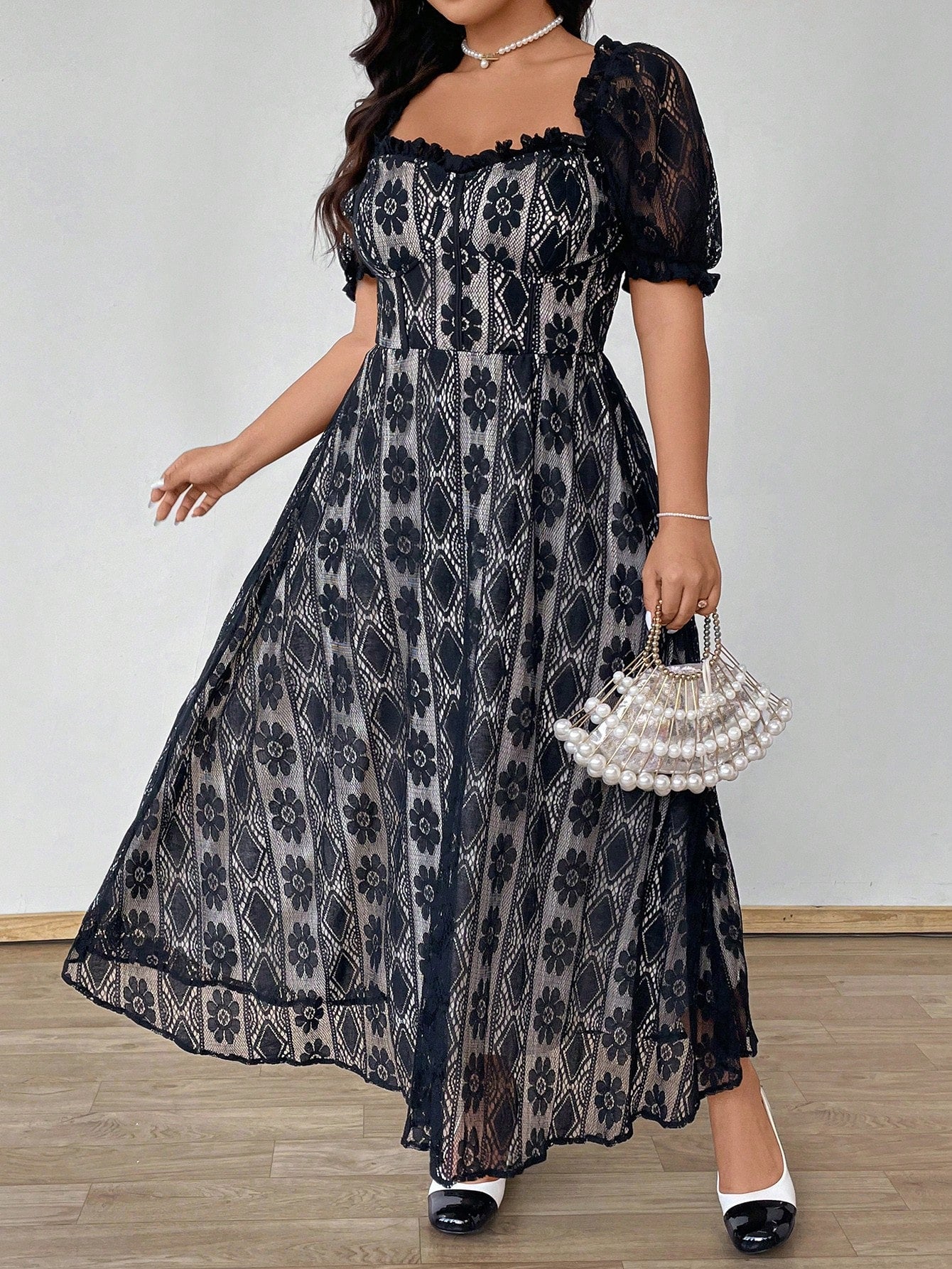 فستان Celure للنساء بمقاسات كبيرة من الدانتيل بأكمام قصيرة