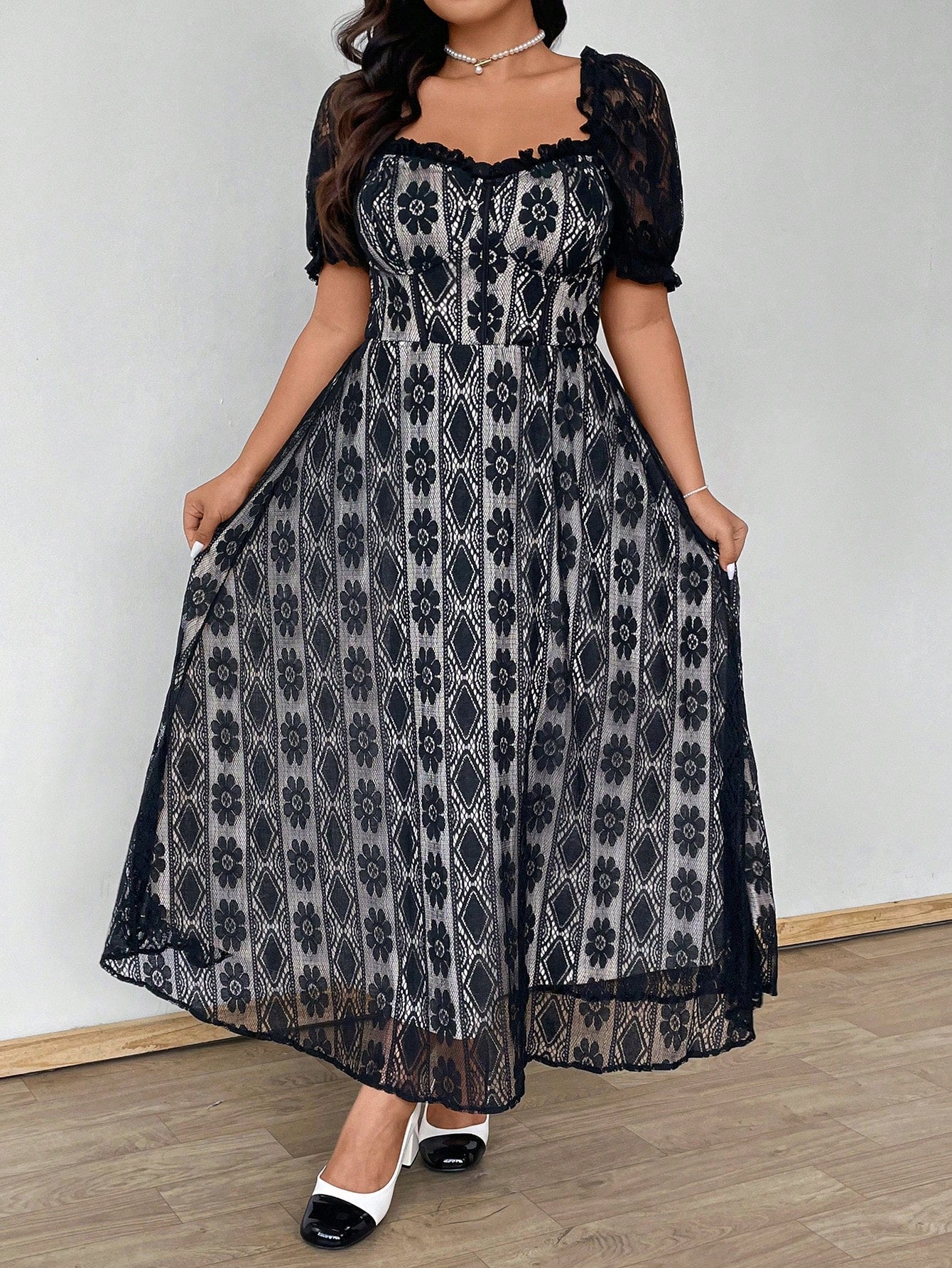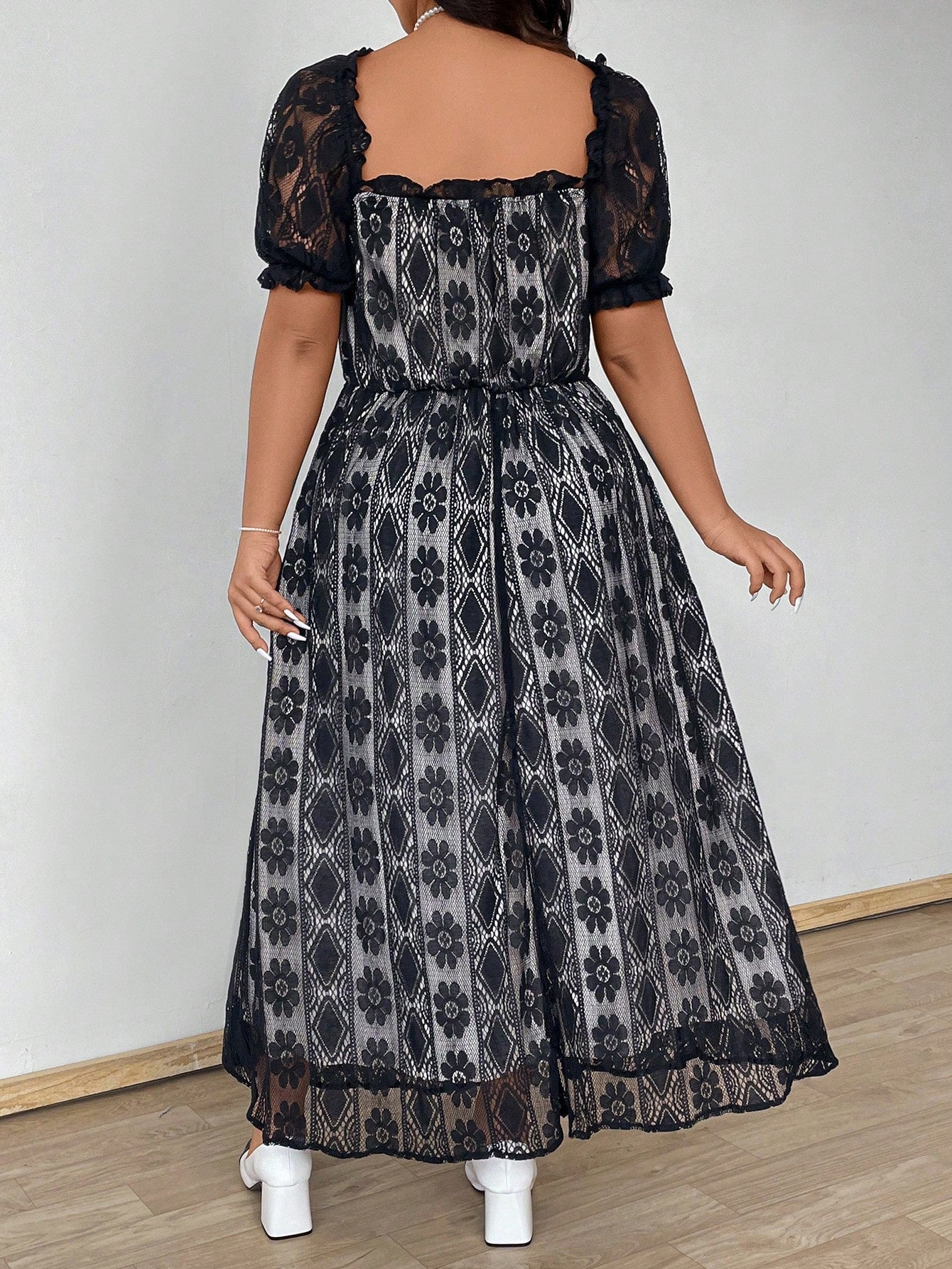 Celure Plus Size Women Lace Patchwork Short Sleeve Dress