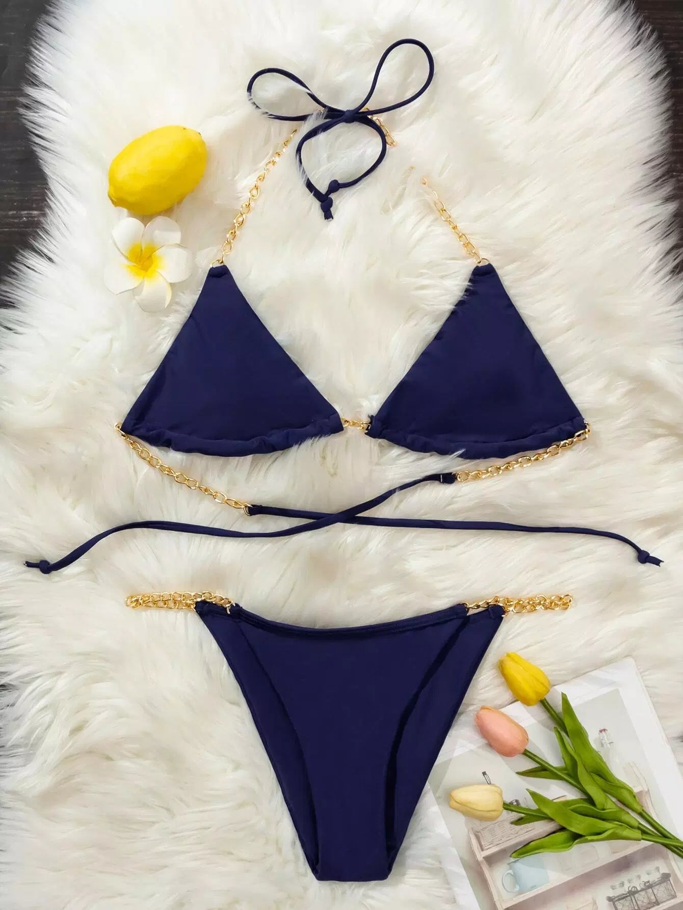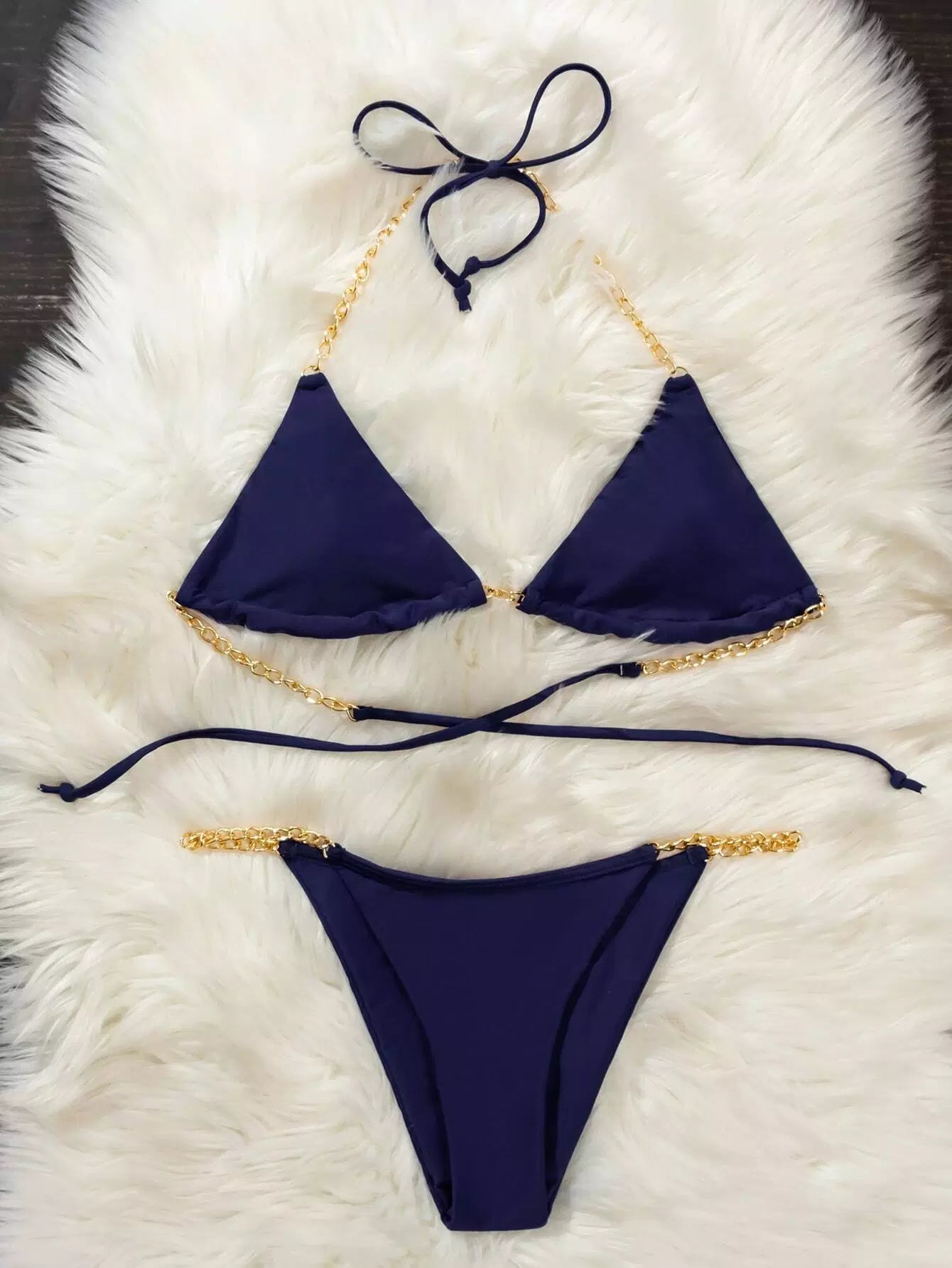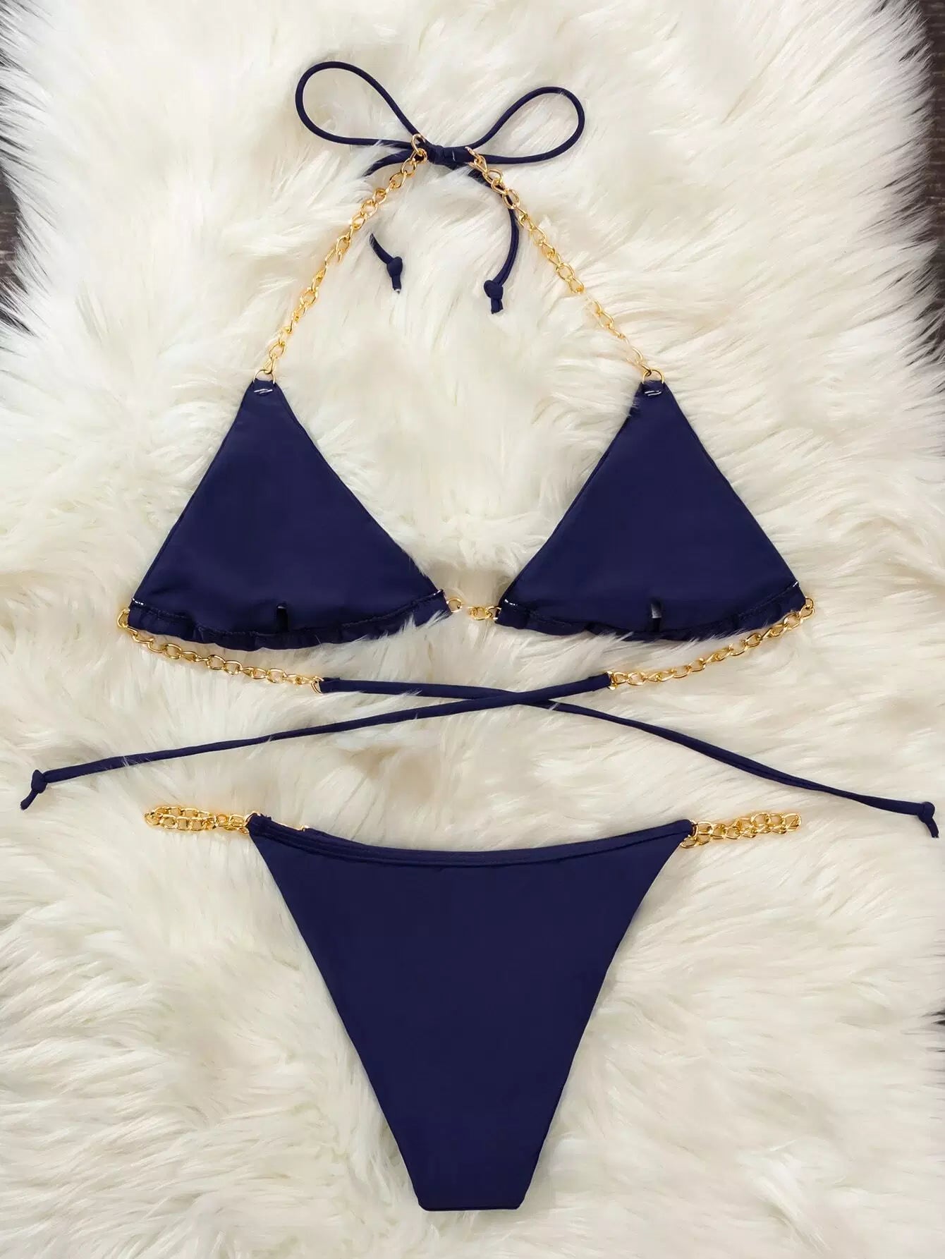 بدلة سباحة بيكيني بحزام بحزام سلسلة ثونغ