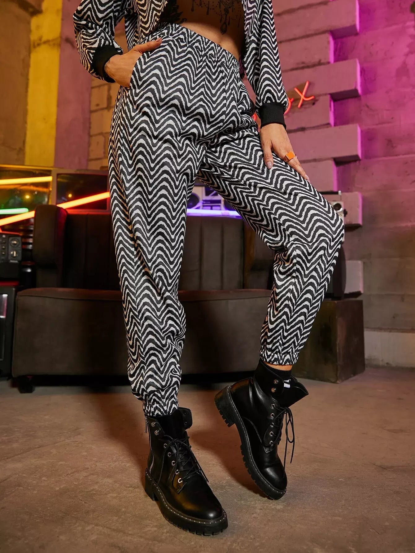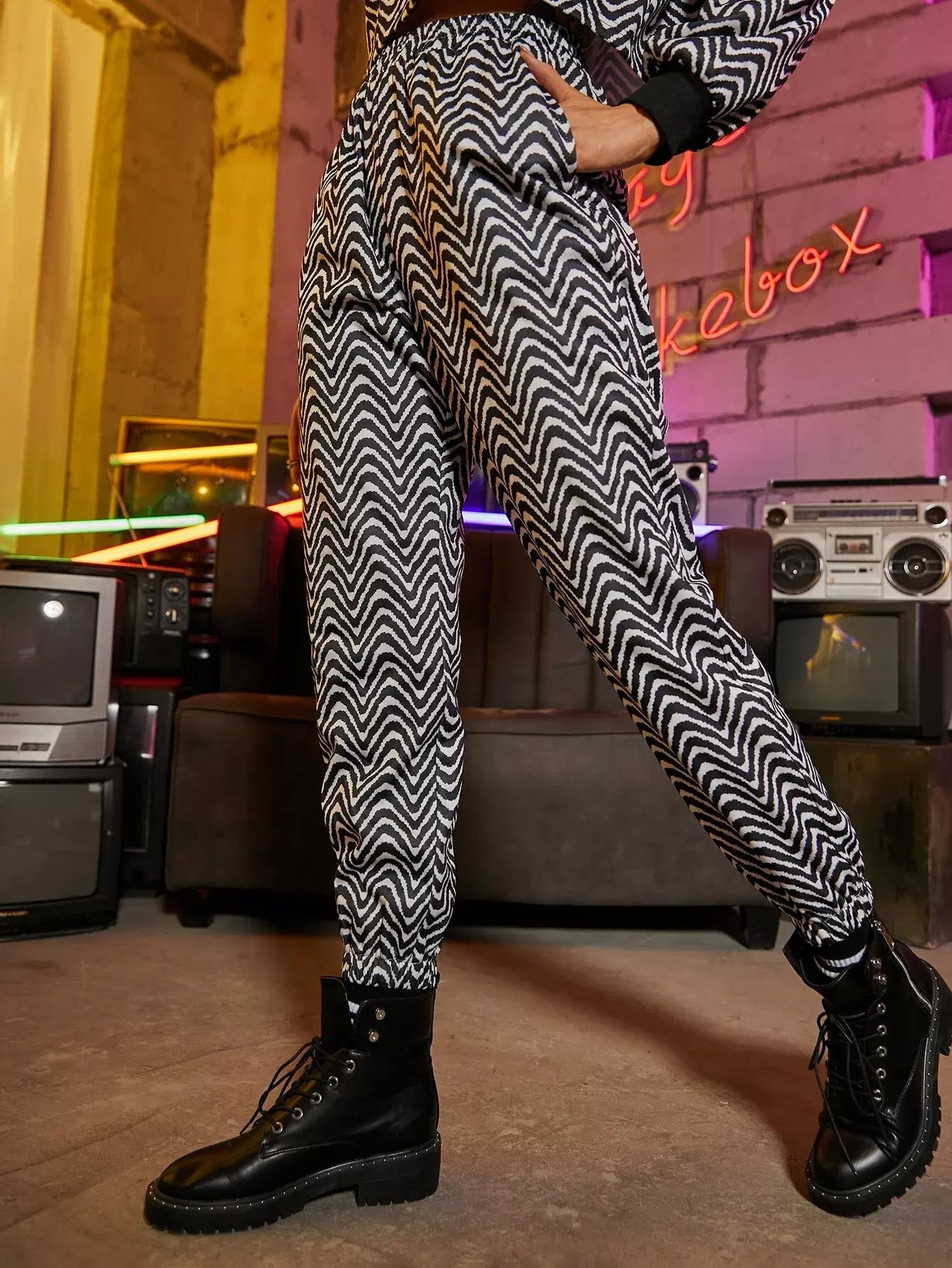 بنطال رياضي حراري بجيوب مائلة وطبعة شيفرون