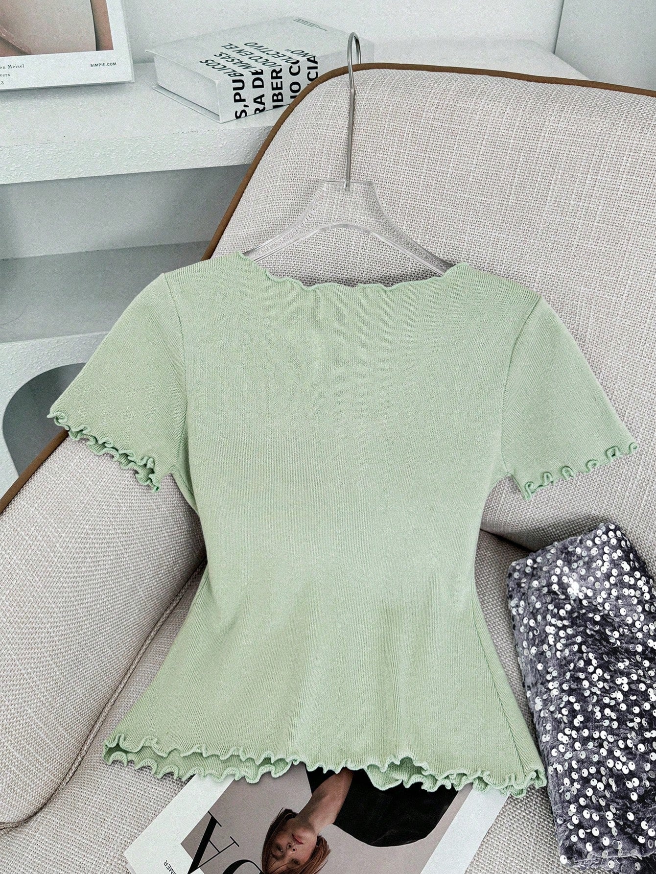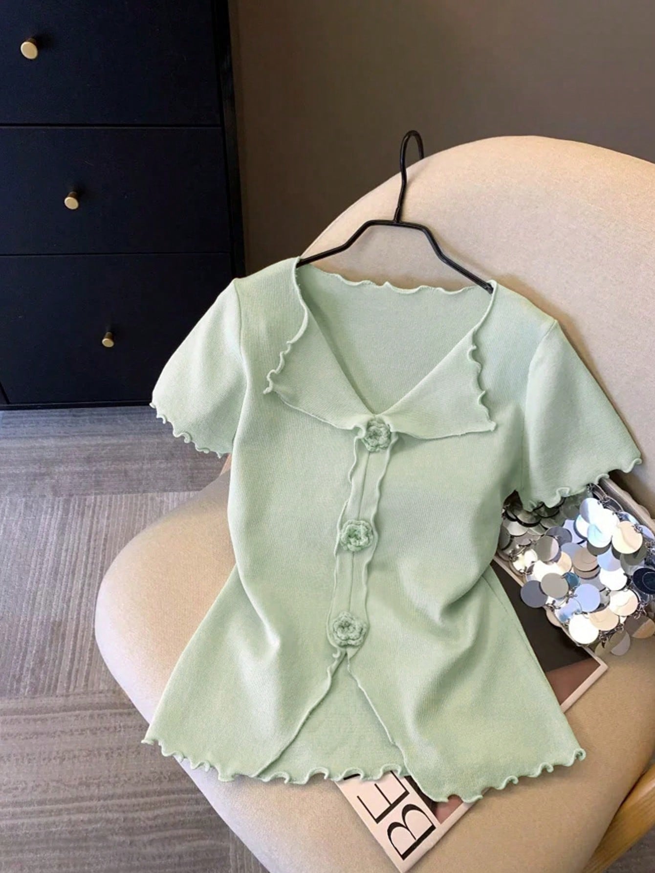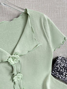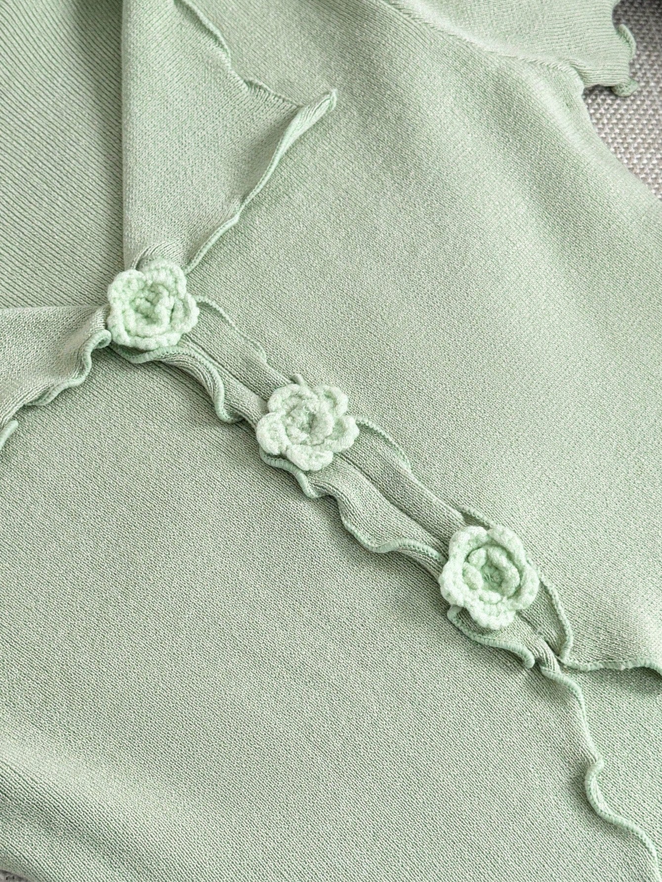 Chiquease V-Neck 3D Flower Trim Fitted Knit Top For Women