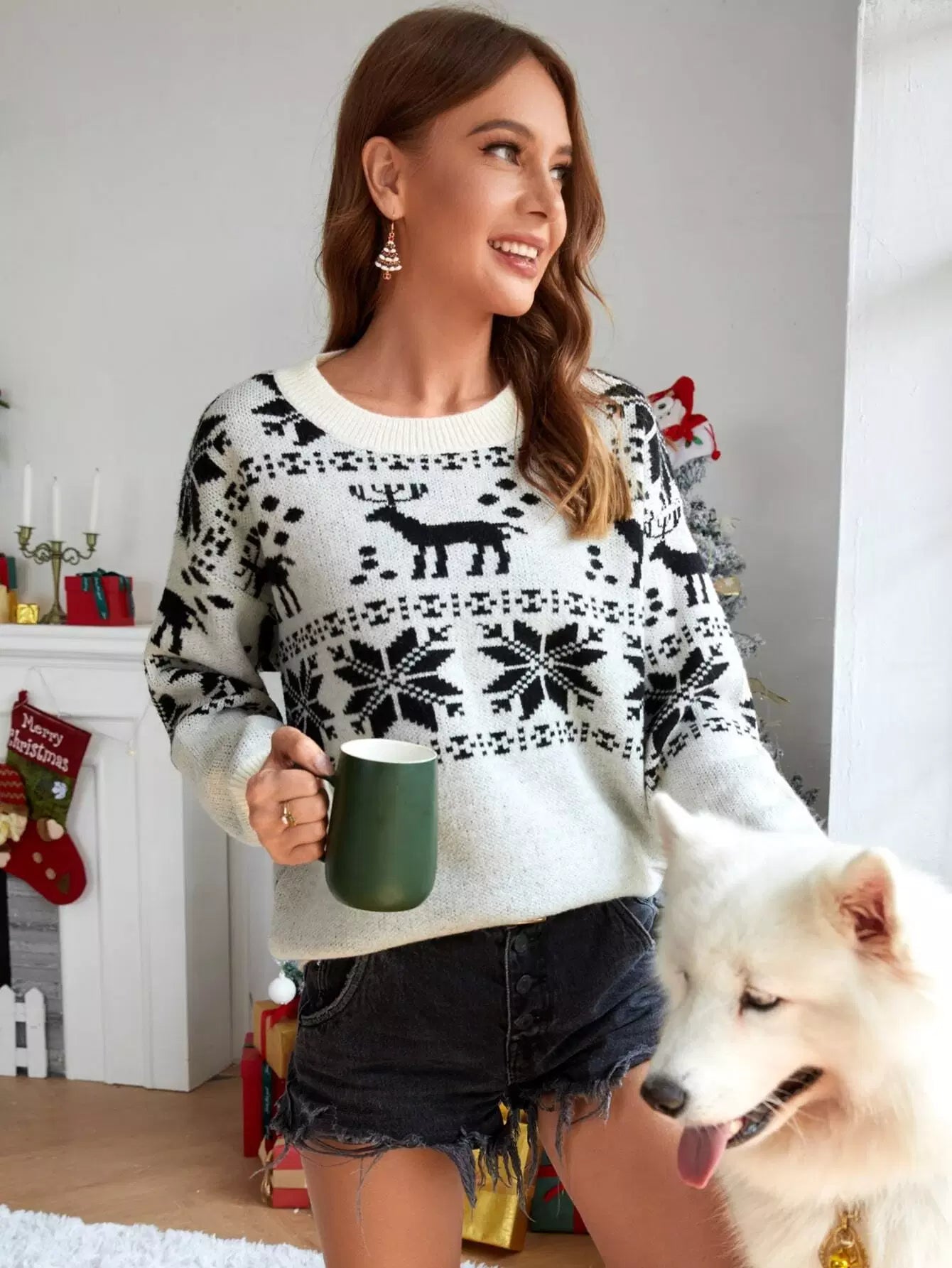 سترة كتف منسدلة بنقشة عيد الميلاد