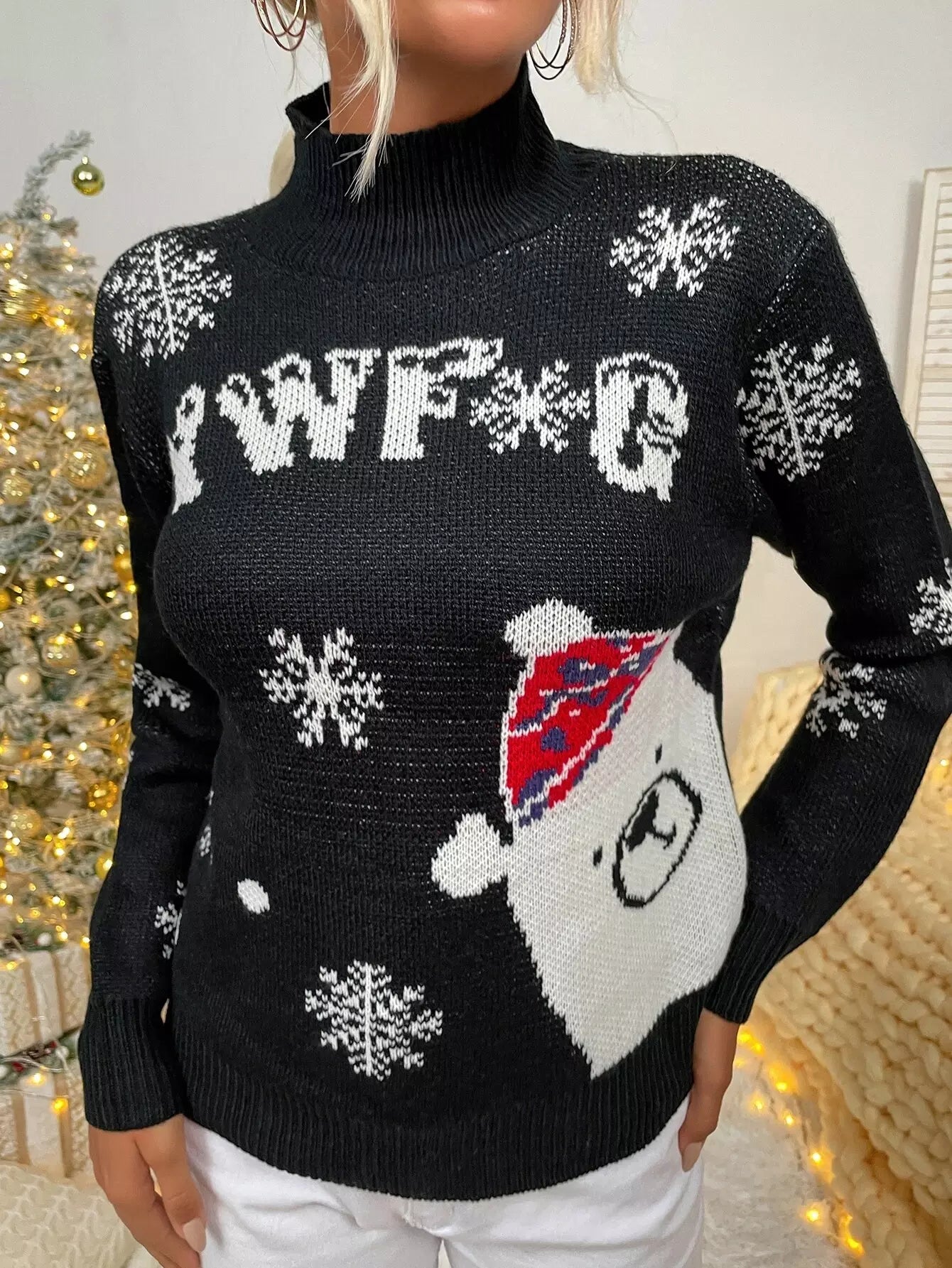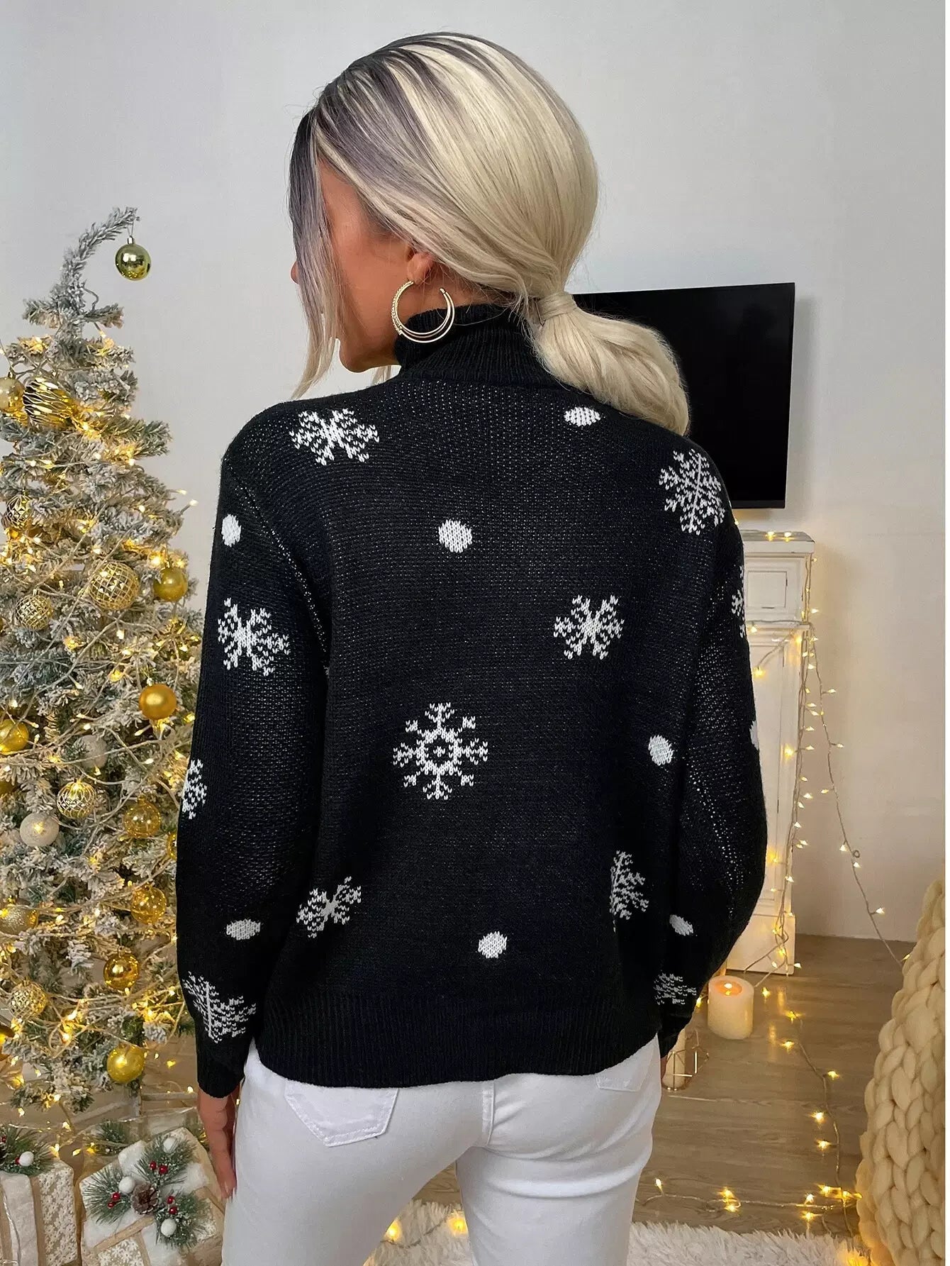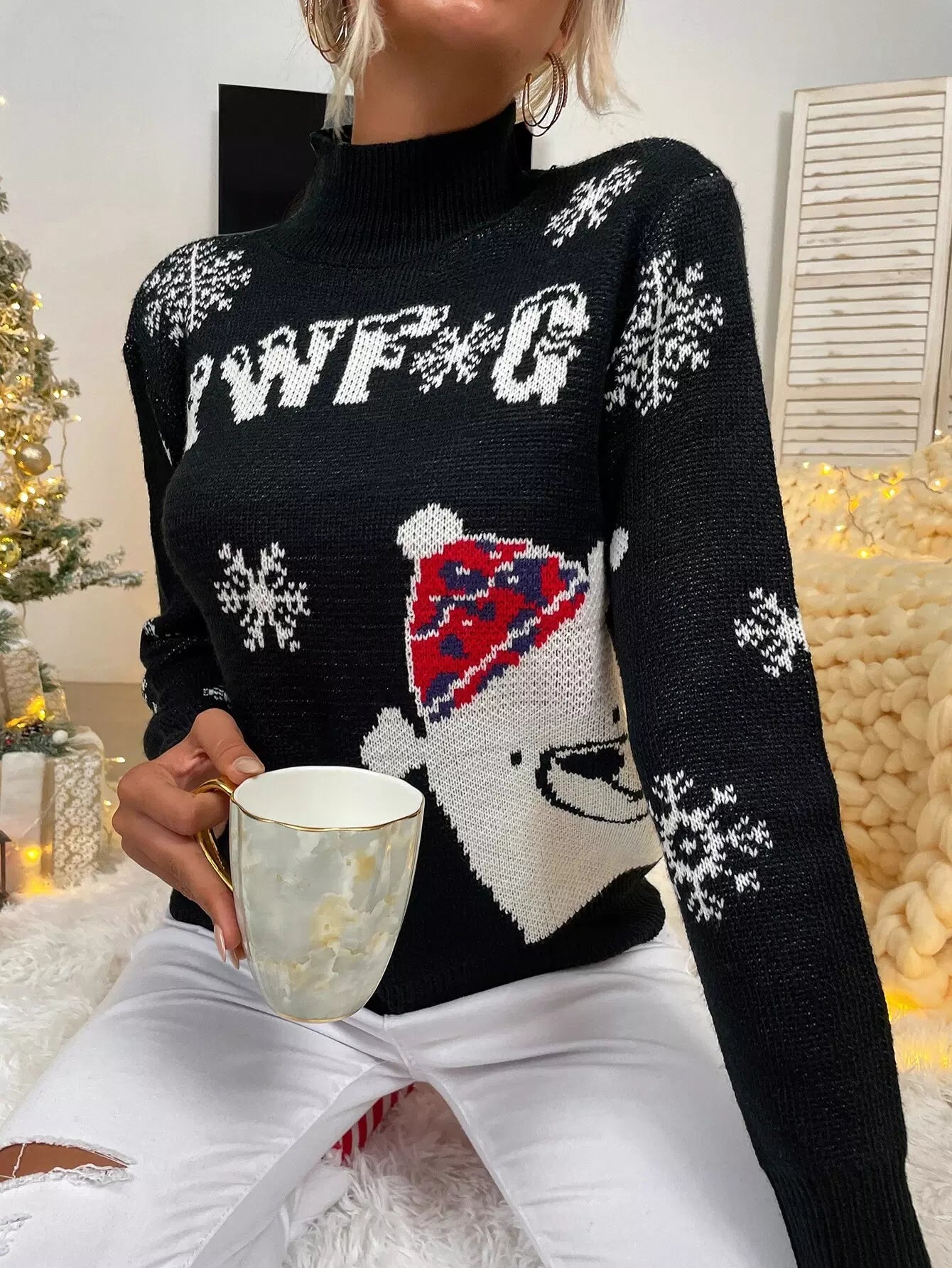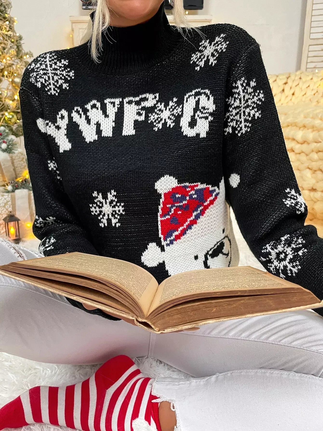 سترة عالية الرقبة عالية الرقبة بنقشة عيد الميلاد