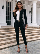 Clasi Polka Dot Print Colorblock Notched Neck Tee