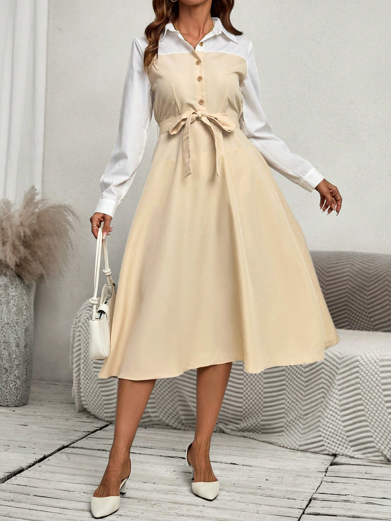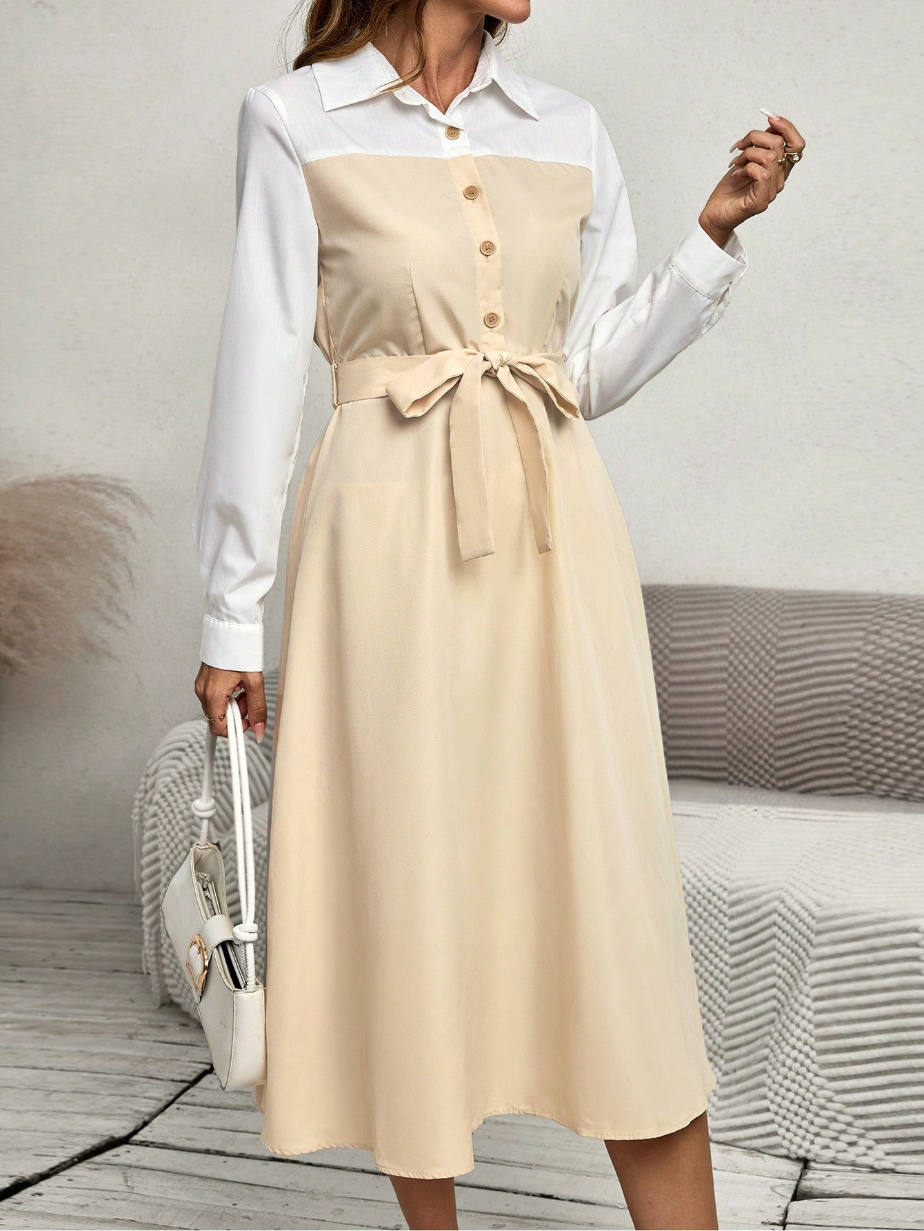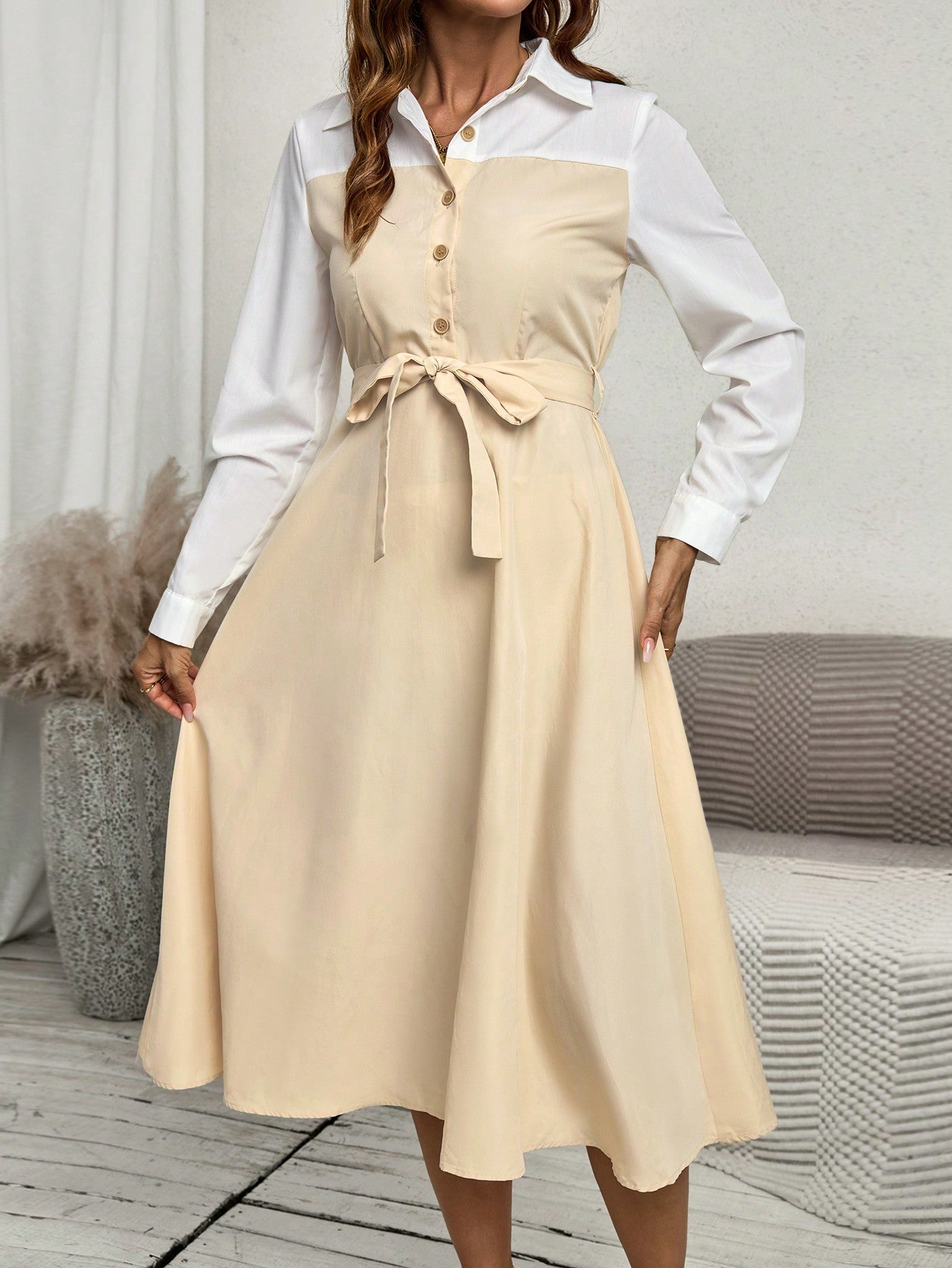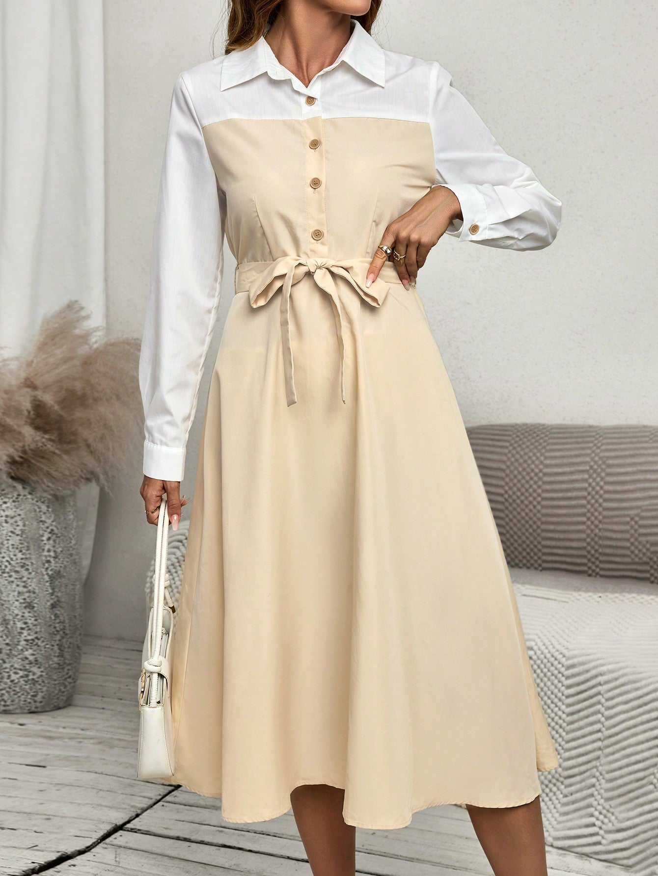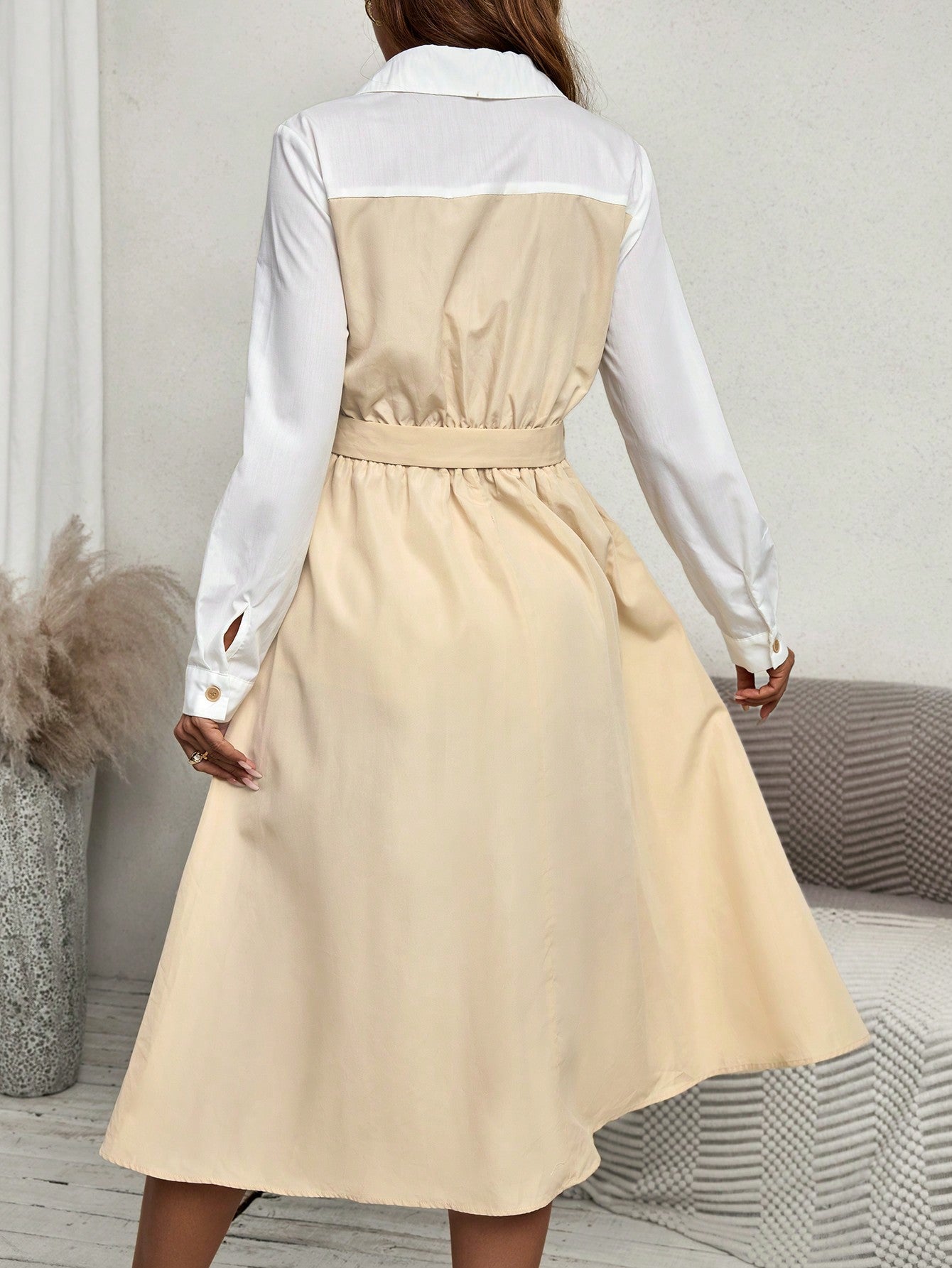 Clasi Women's Colorblock Shirt Collar Splice Dress Fall Cloth For Women