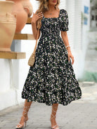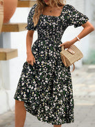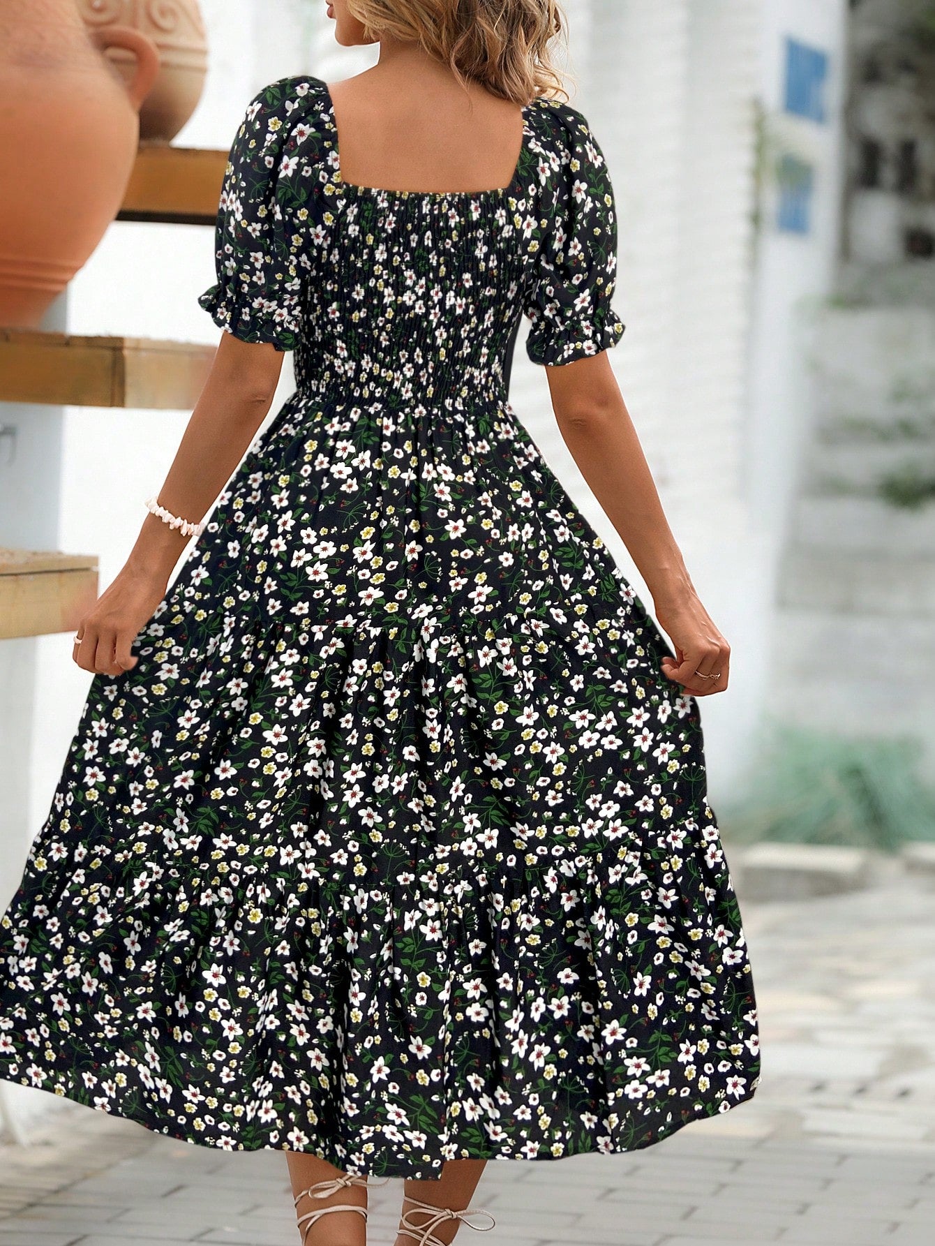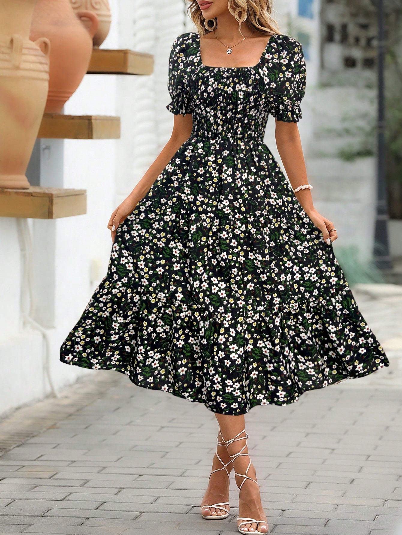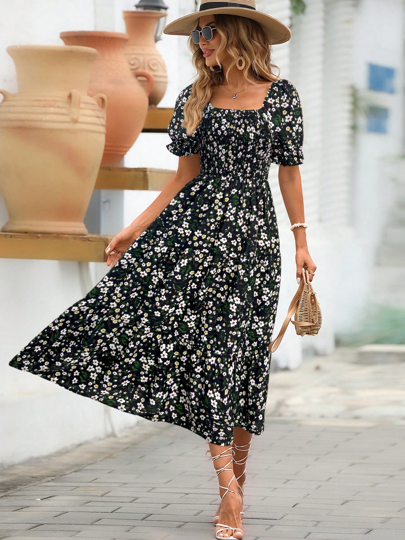 Clasi Women's Floral Print Puff Sleeve Waist Tie Mini Dress Maxi Women Outfit