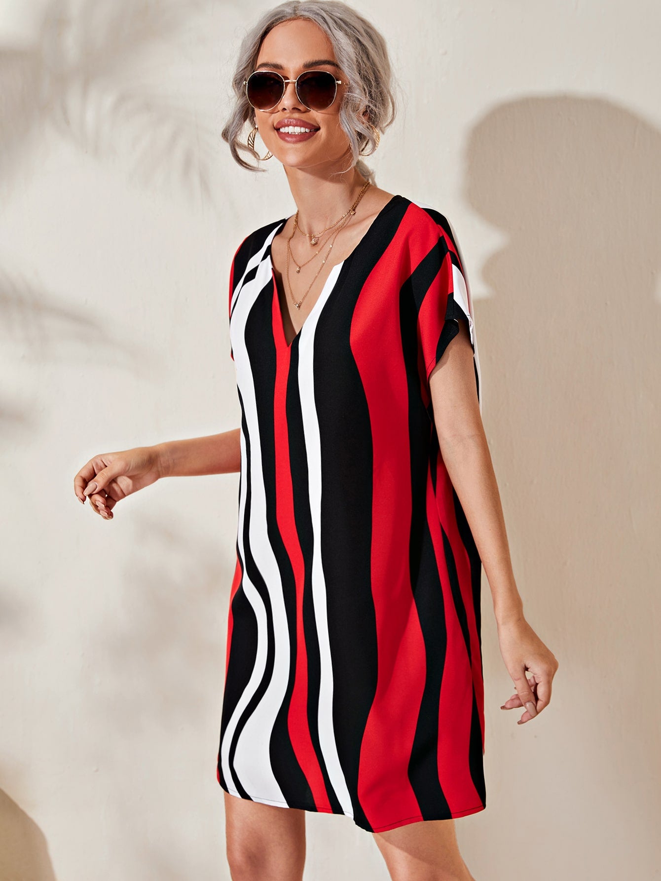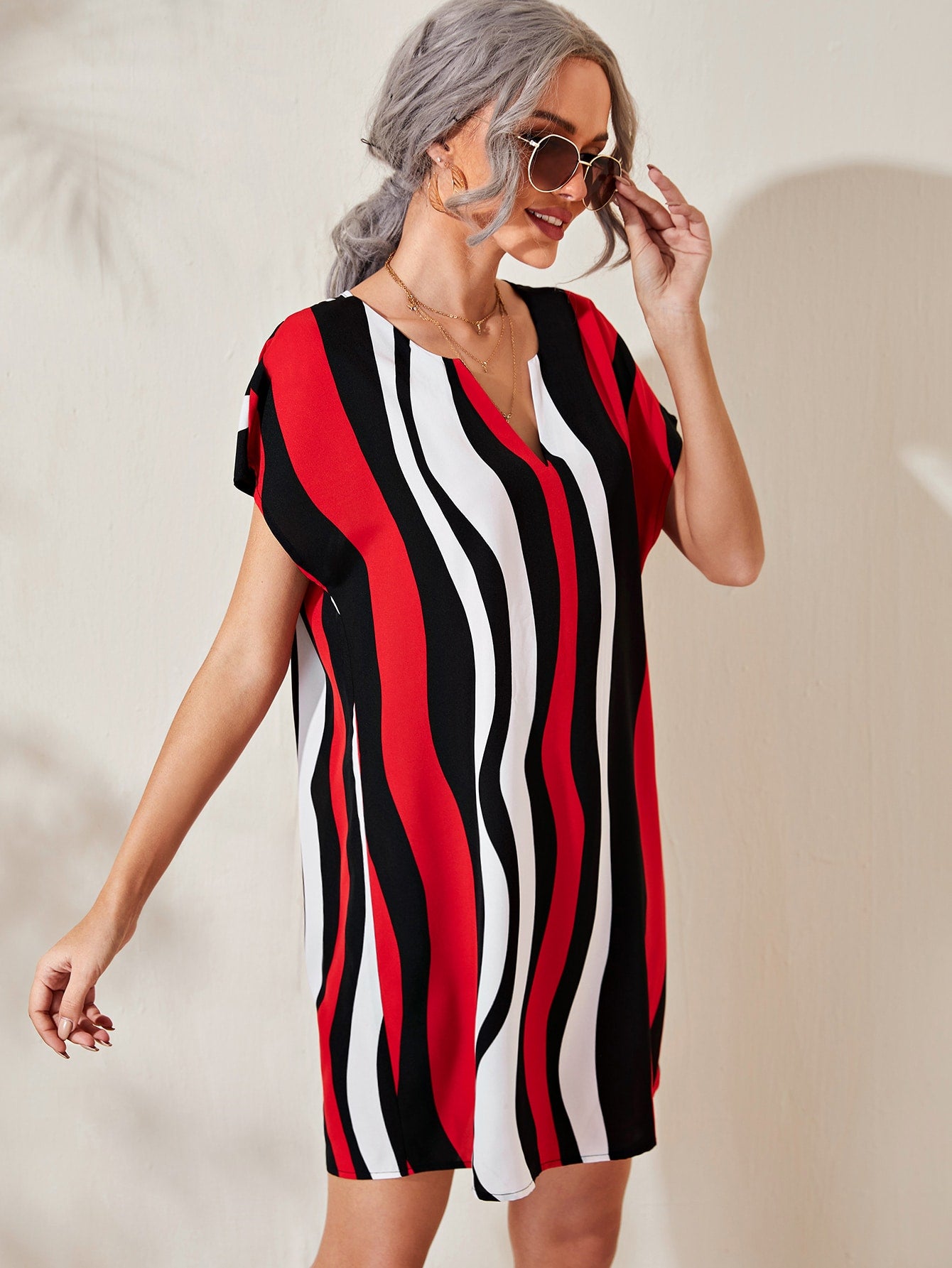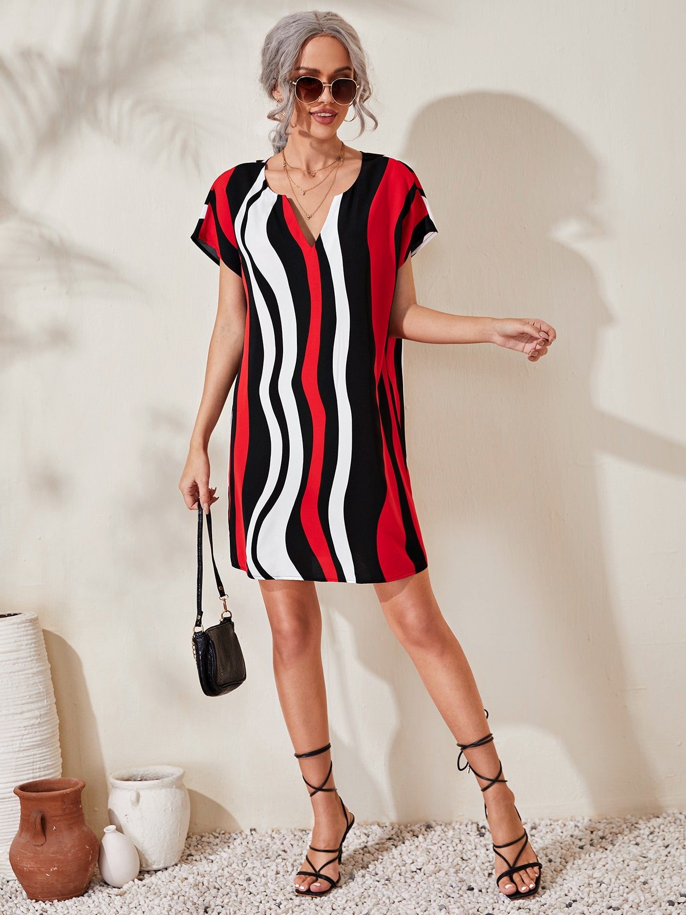 Notched Neck Colorblock Dress