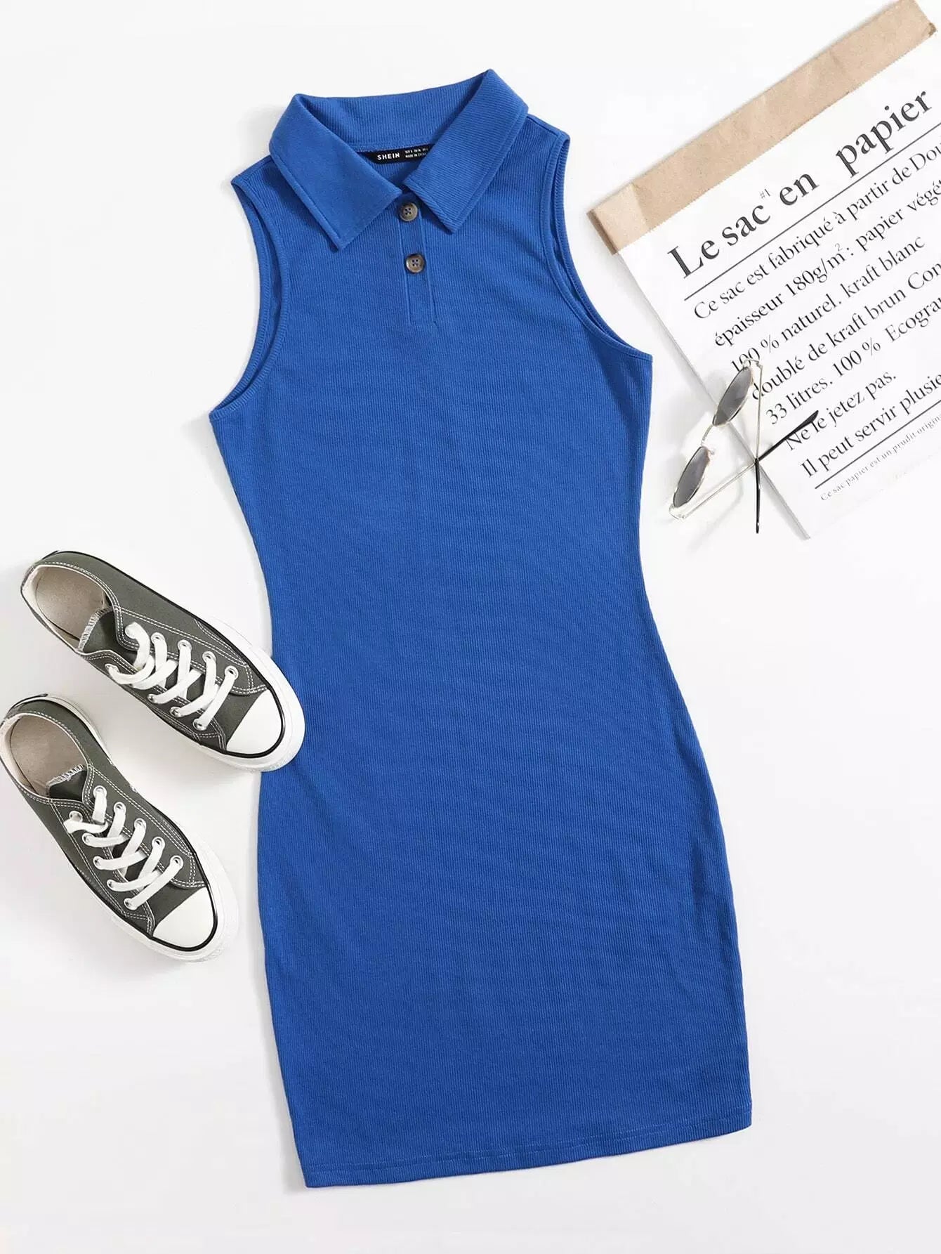 فستان بدون أكمام بأزرار أمامية بأزرار من الأمام