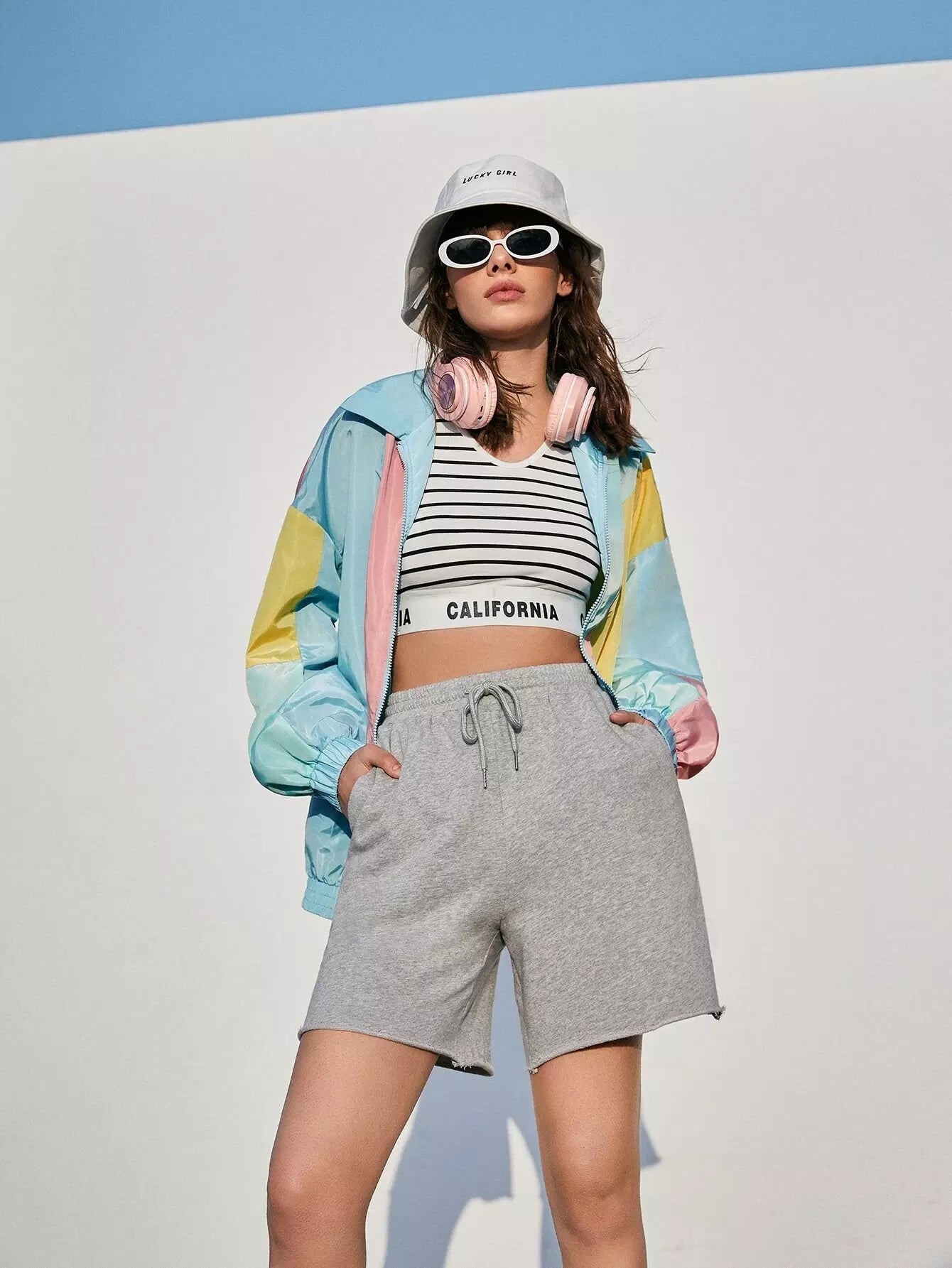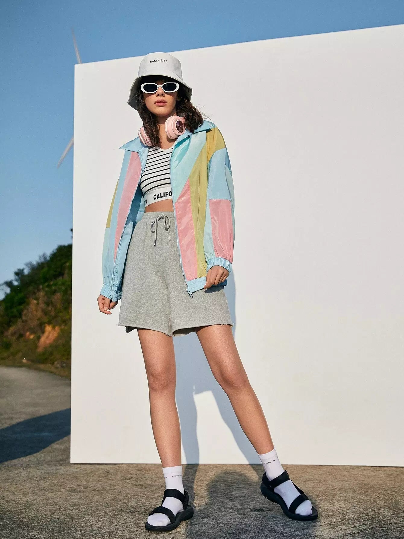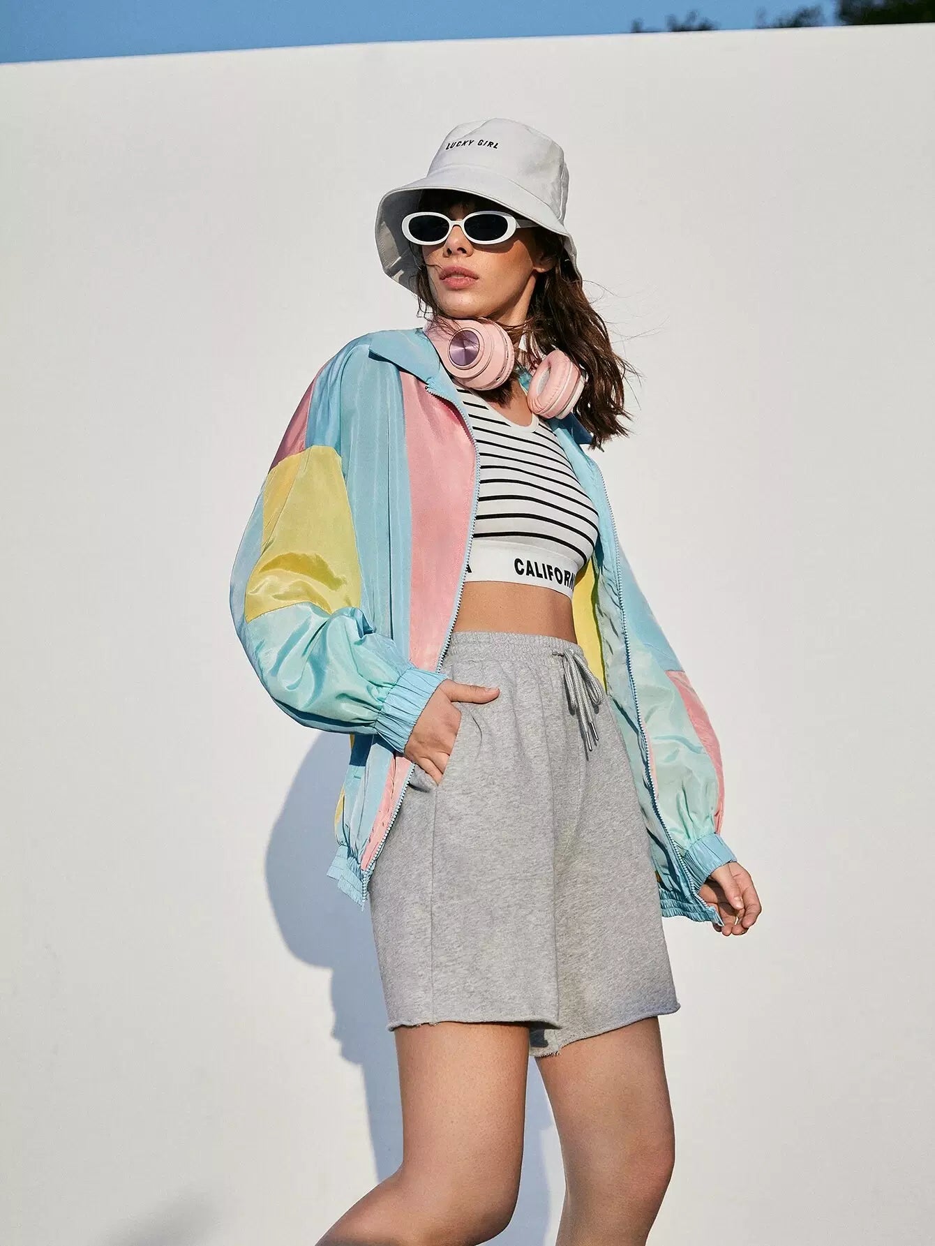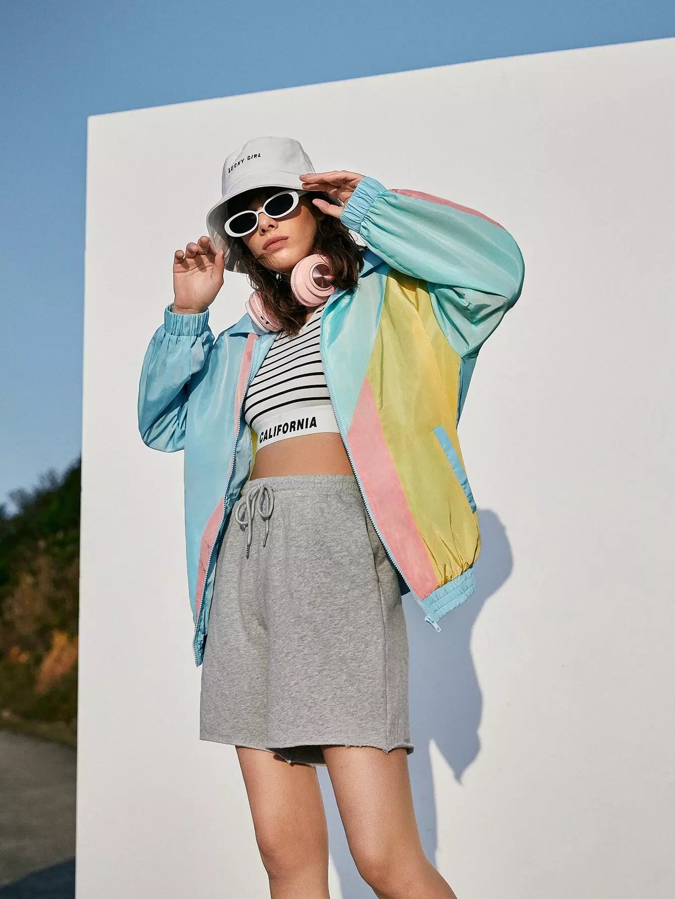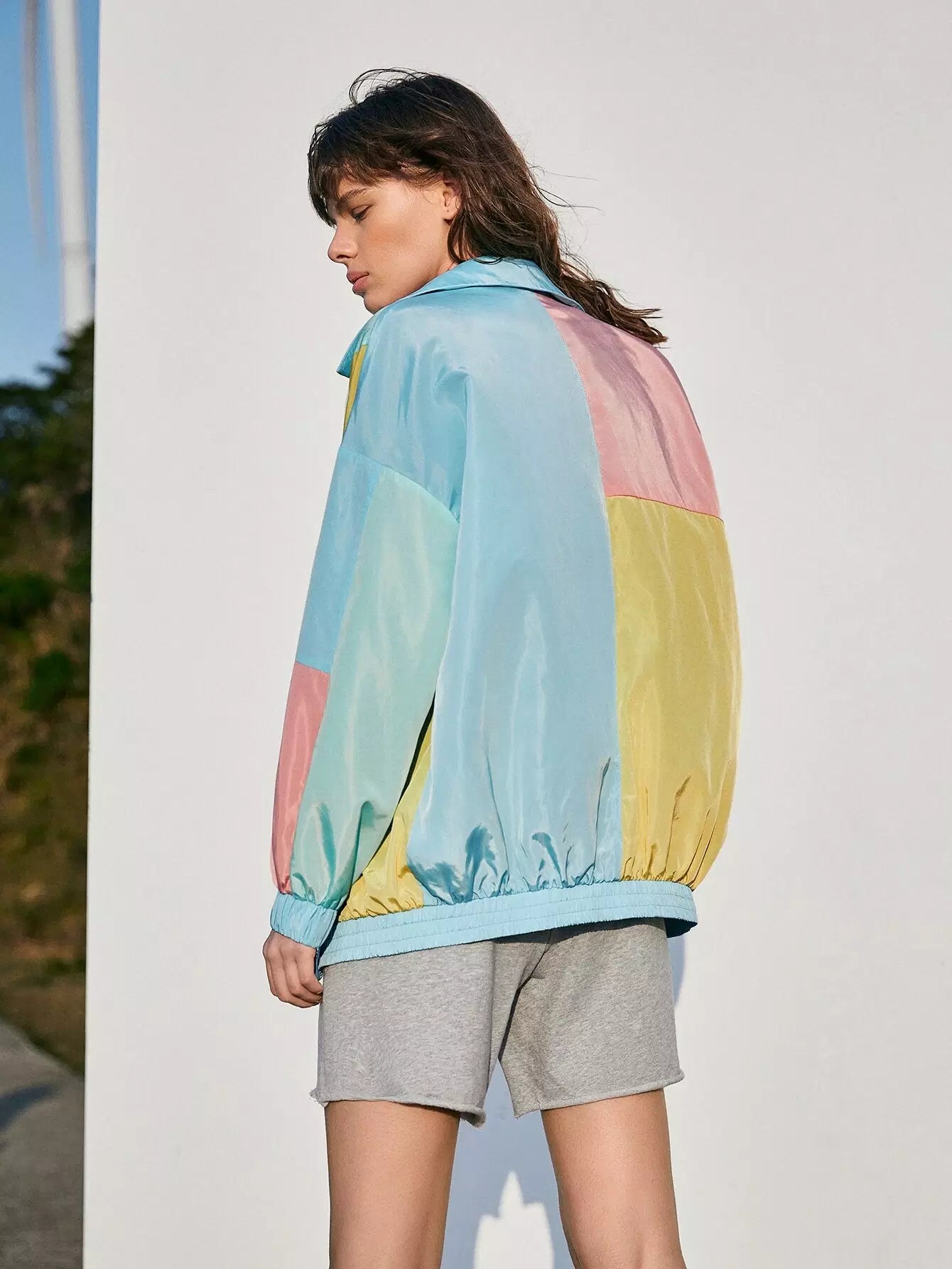 جاكيت رياح بياقة بسحاب بسحاب ملون