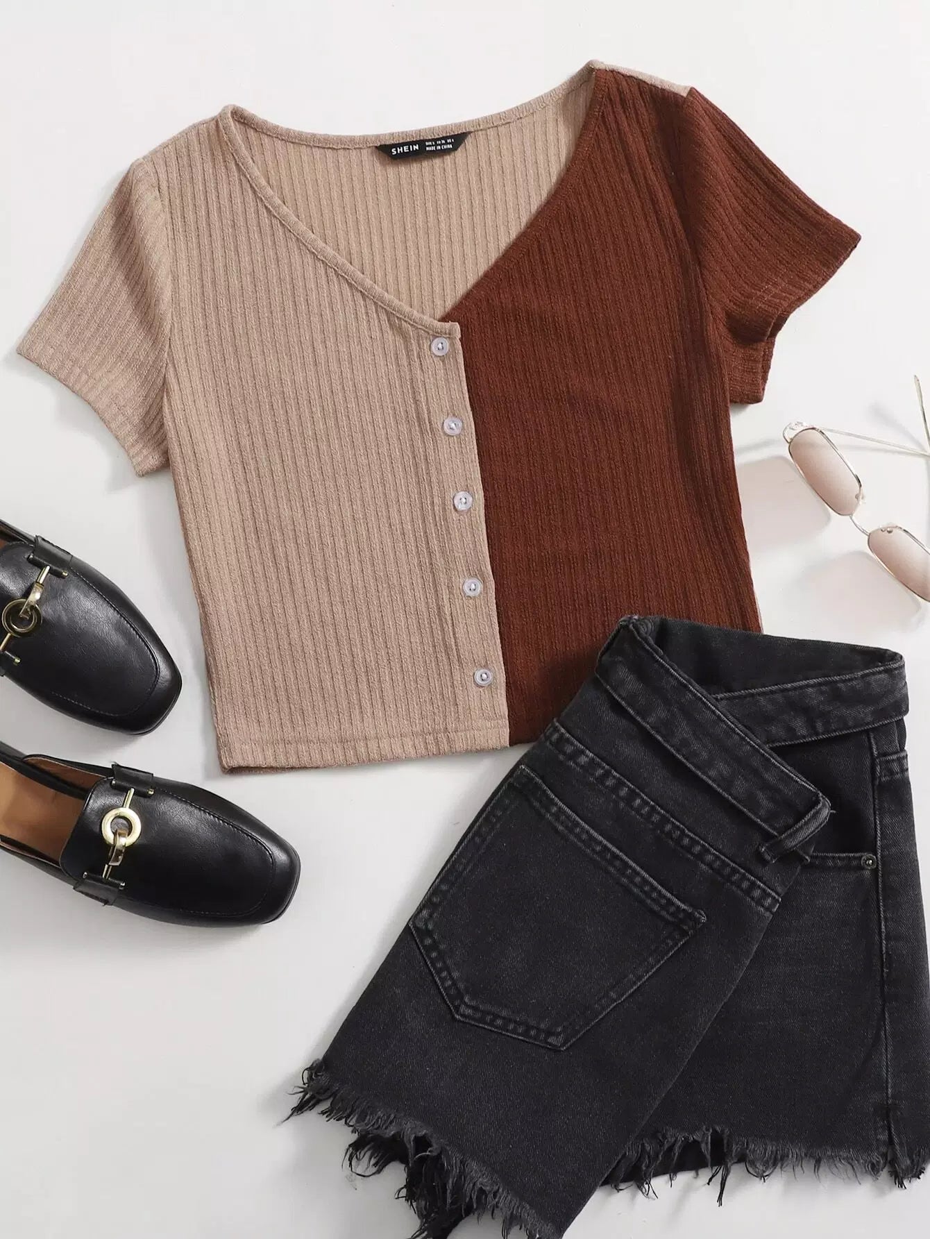 تي شيرت بأزرار أمامية ملونة