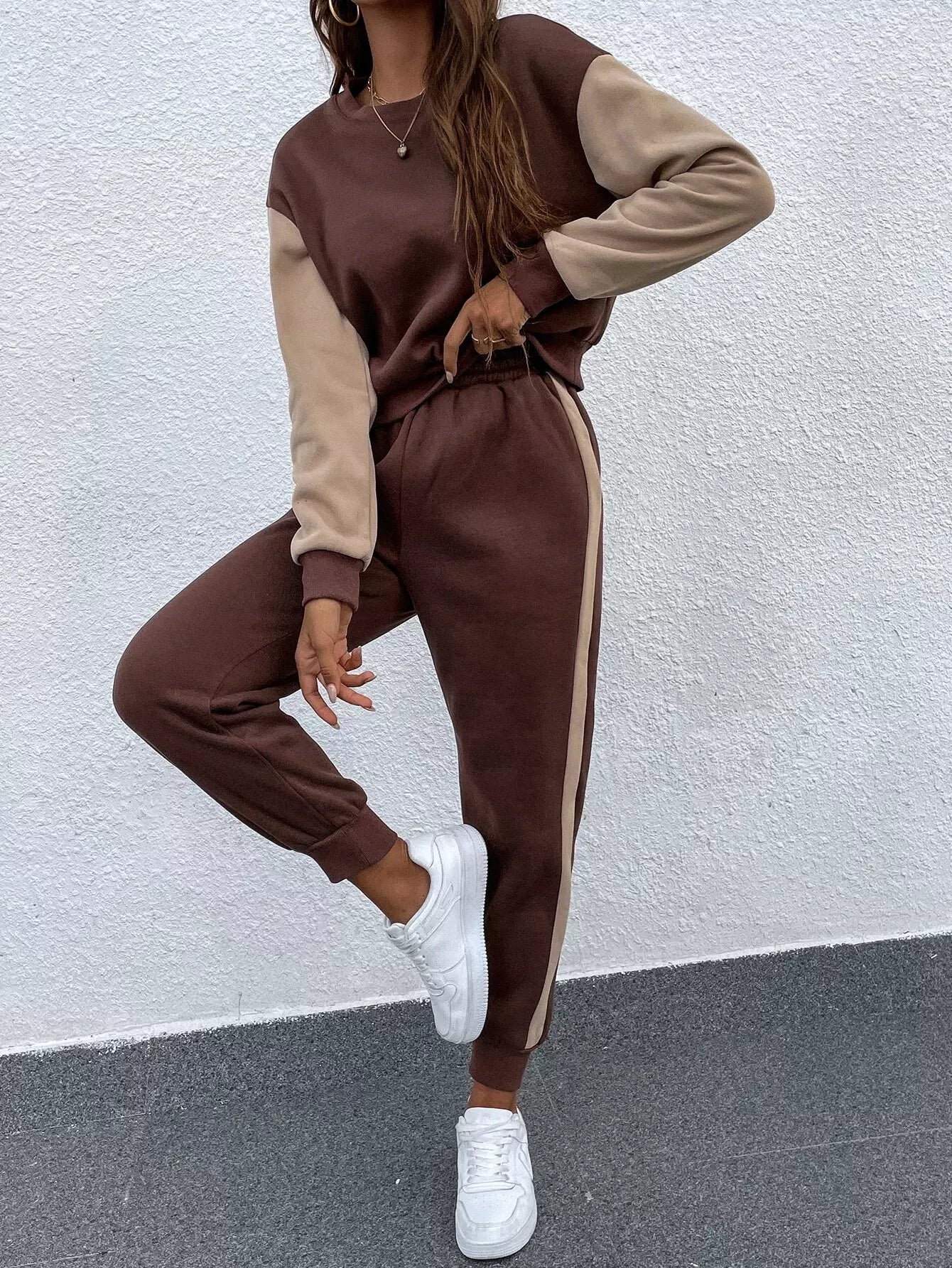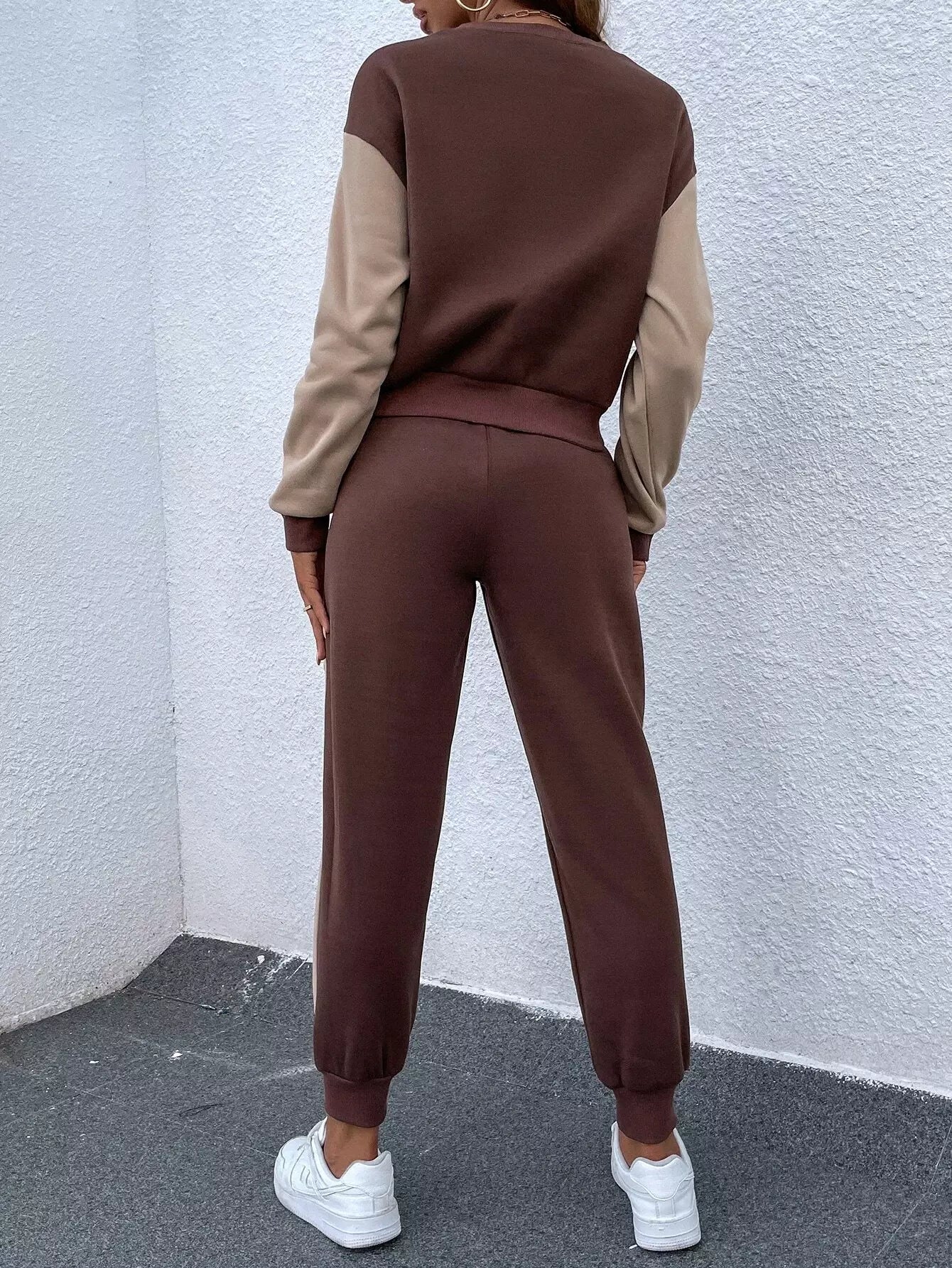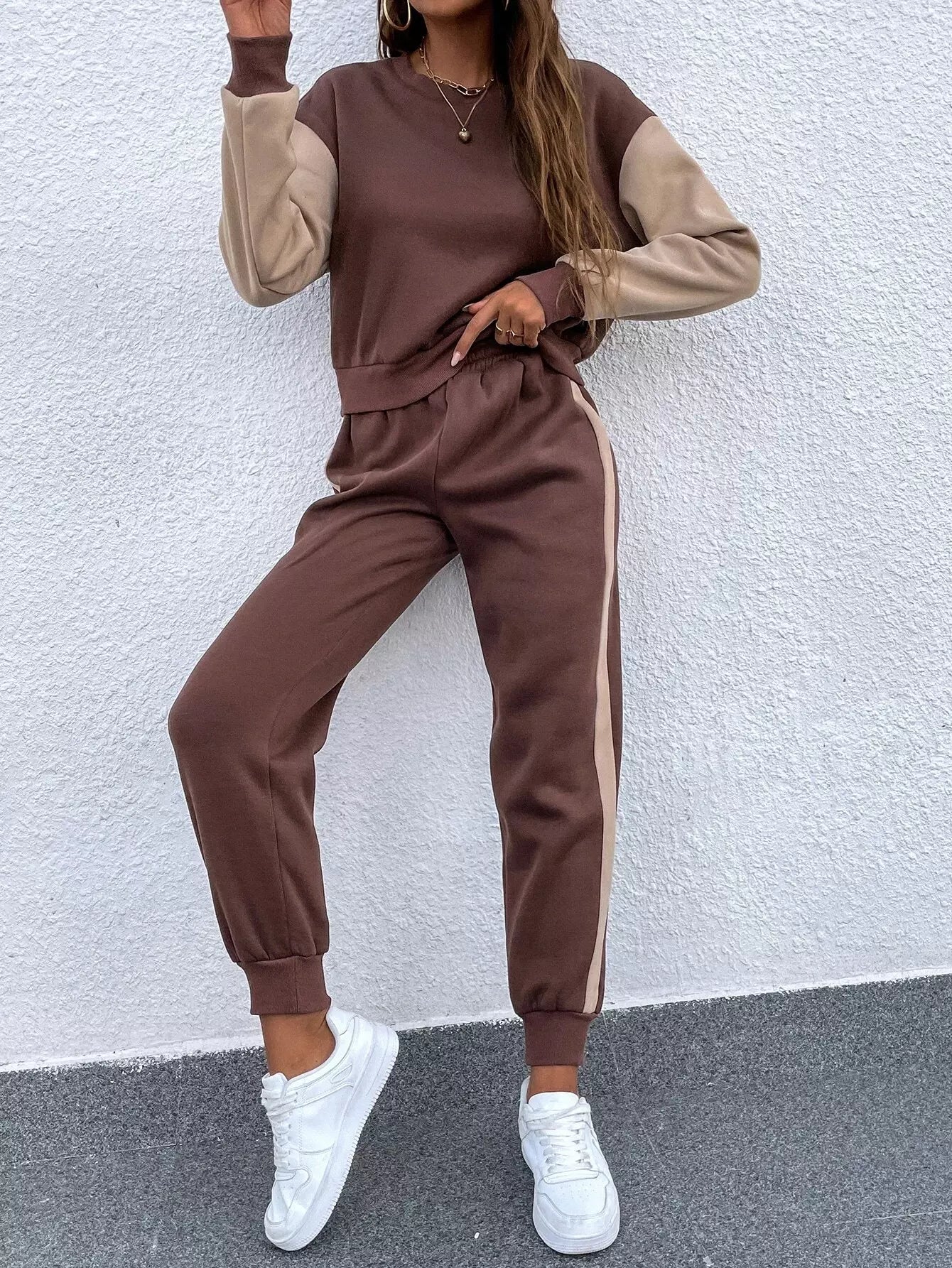 كنزة صوفية منسدلة الكتف ملونة ومنسدلة الكتف وبنطال رياضي