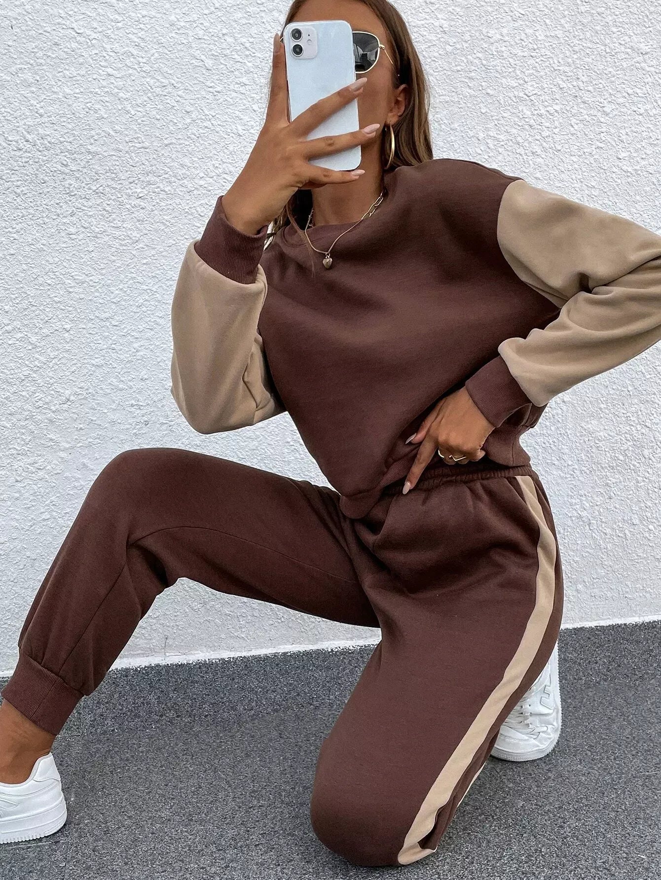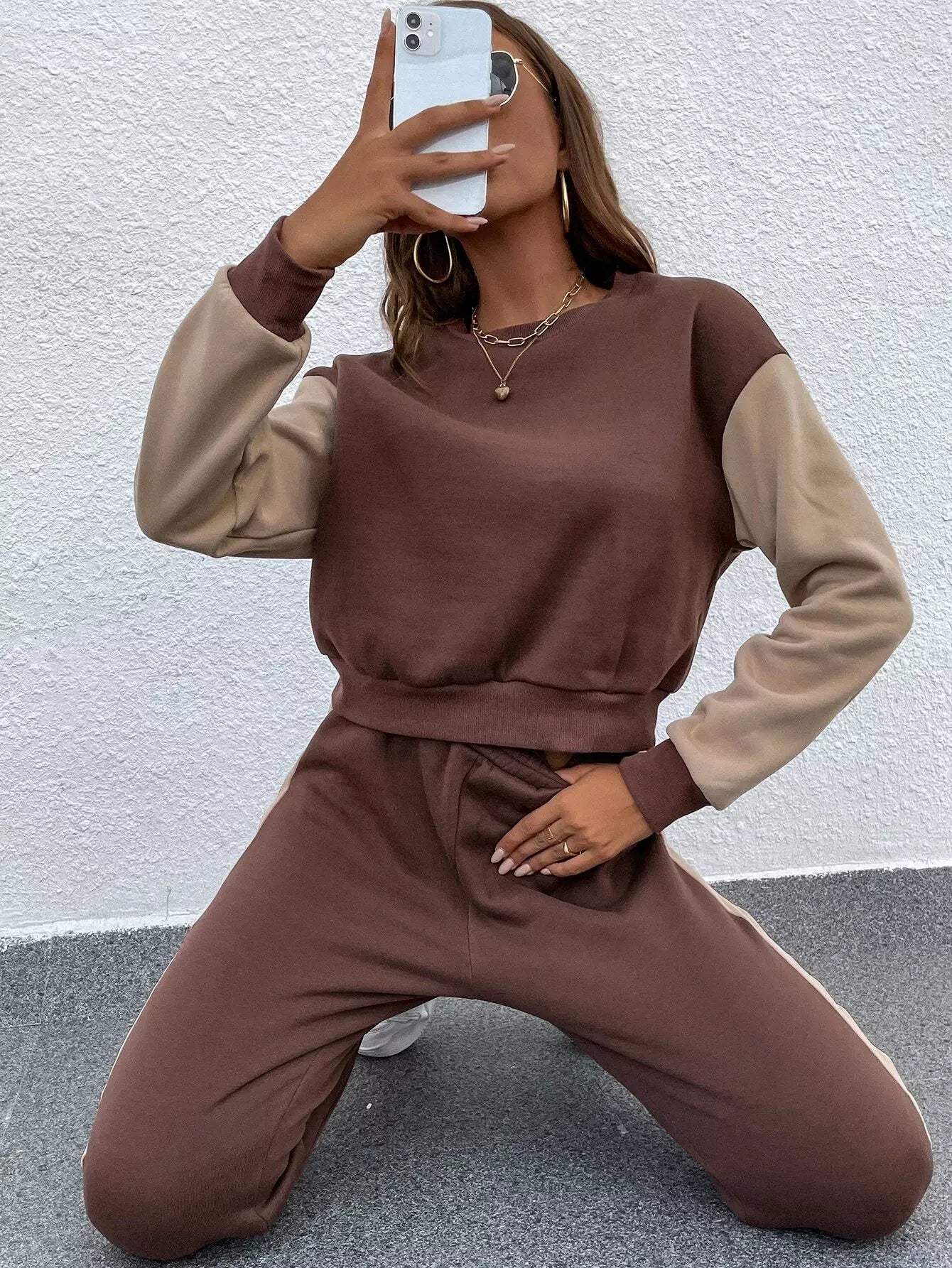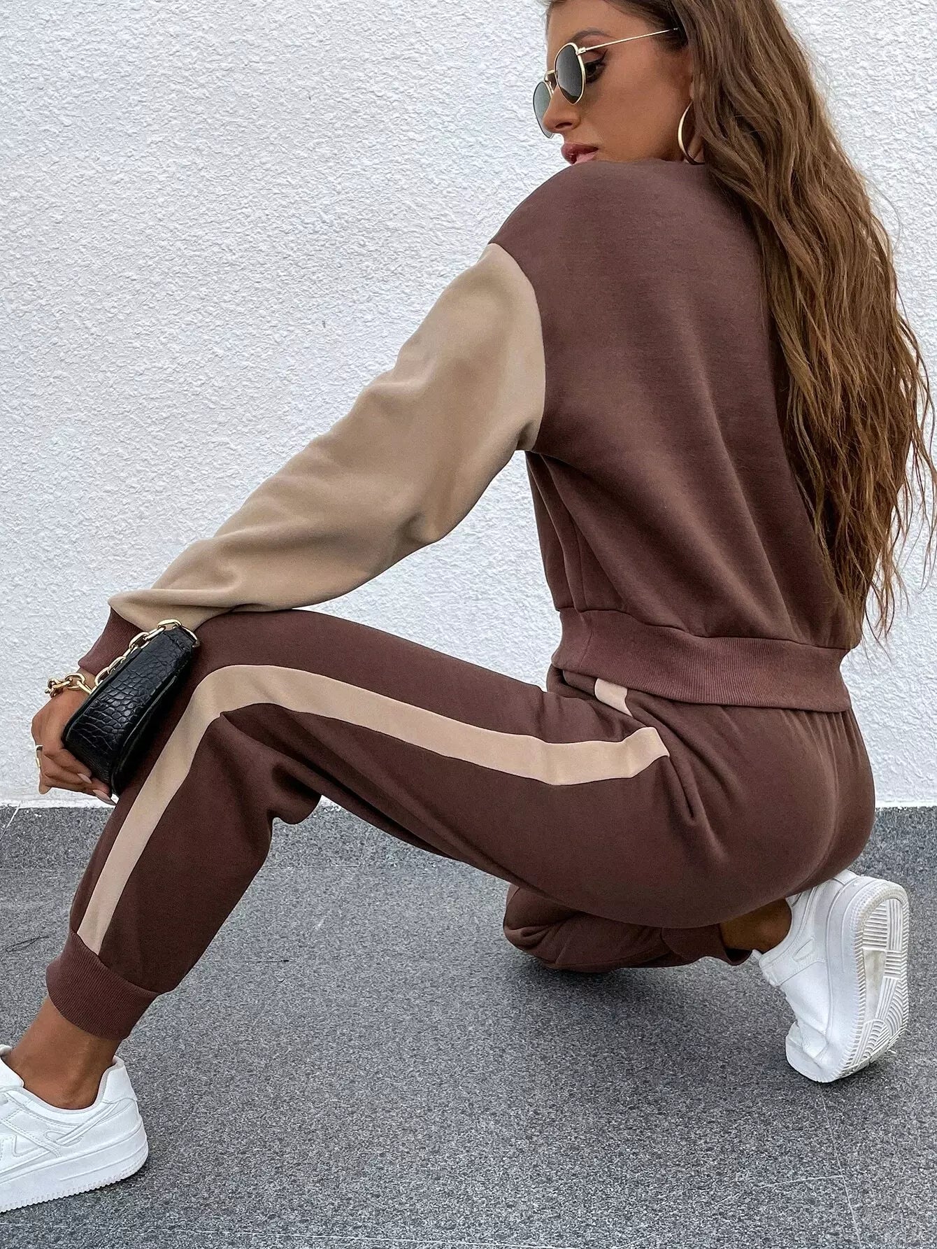كنزة صوفية منسدلة الكتف ملونة ومنسدلة الكتف وبنطال رياضي