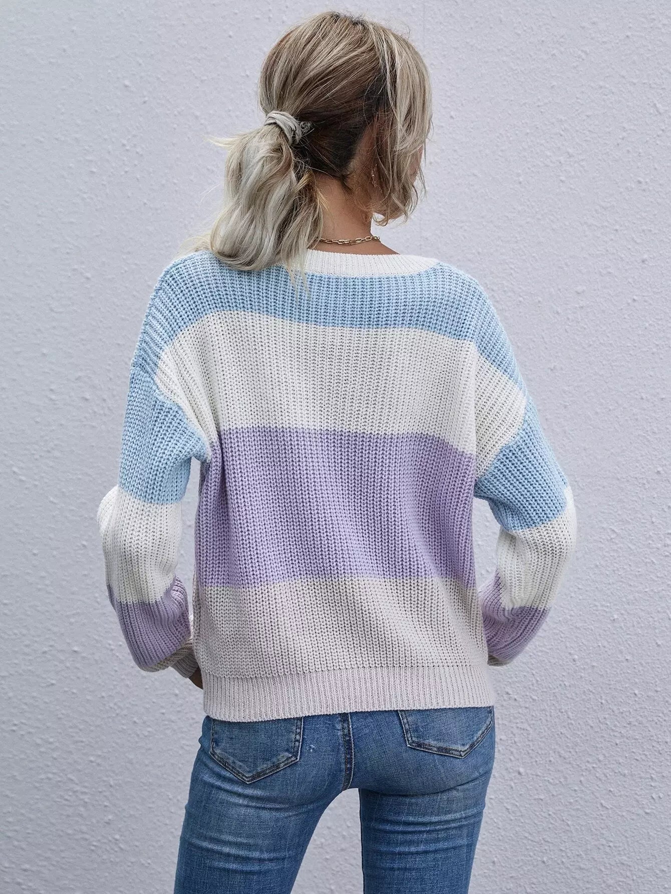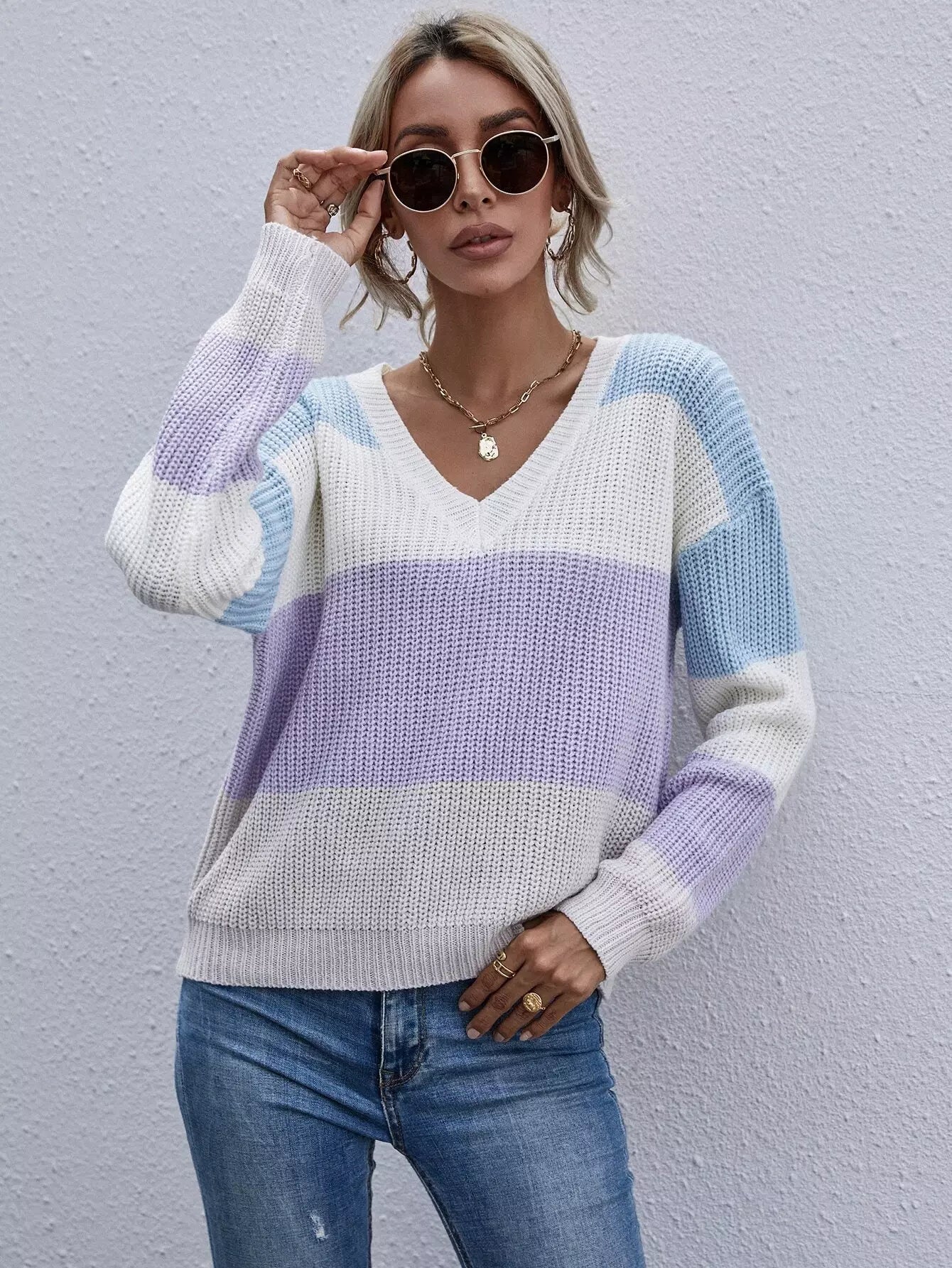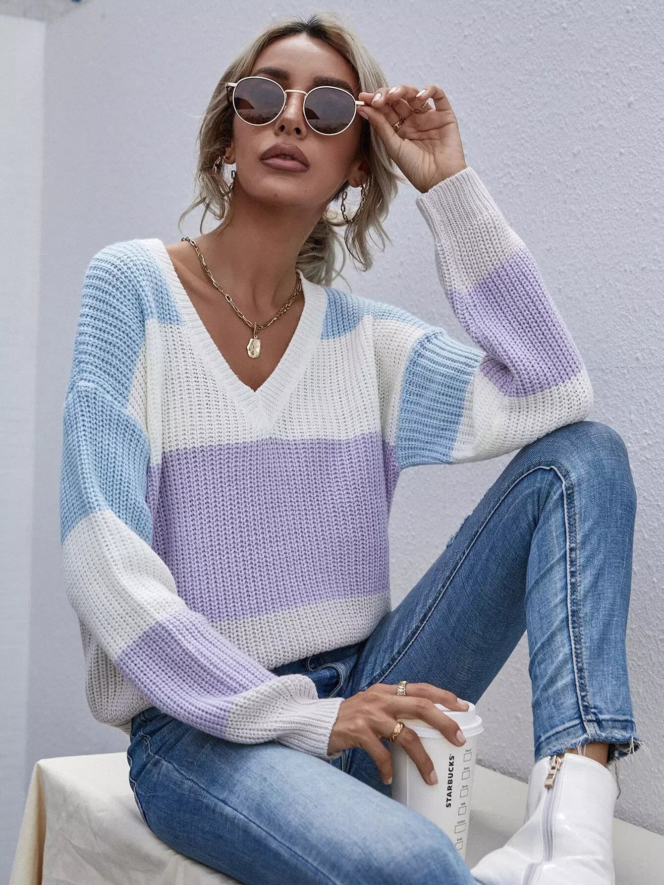 سترة منسدلة الكتفين ملونة بلوك منسدل الكتفين