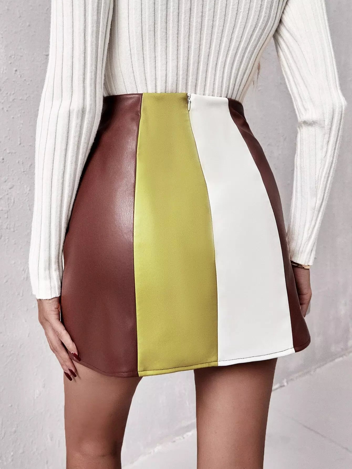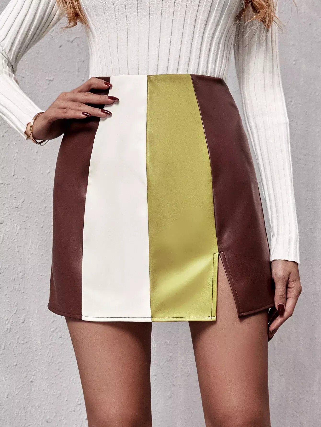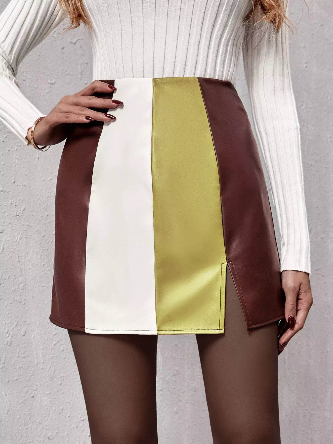تنورة بشق من جلد البولي يوريثان الملون