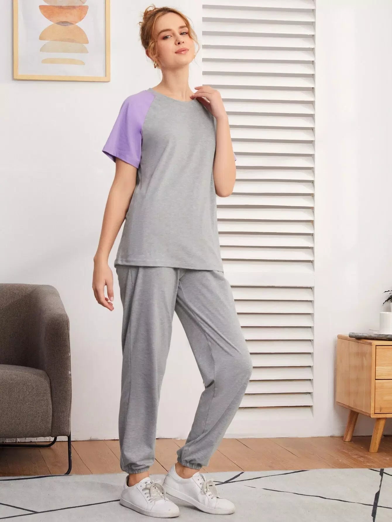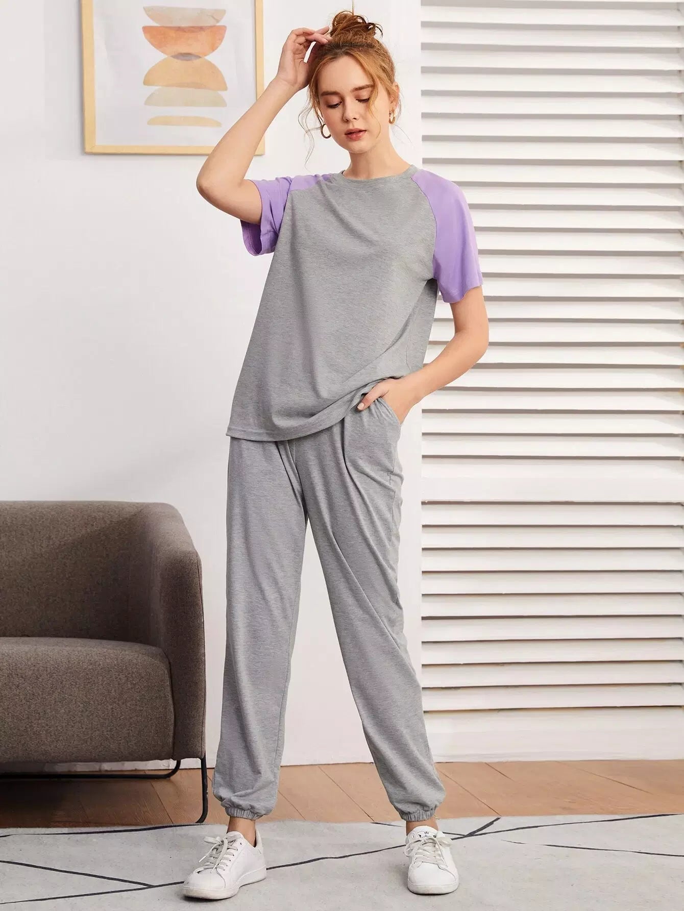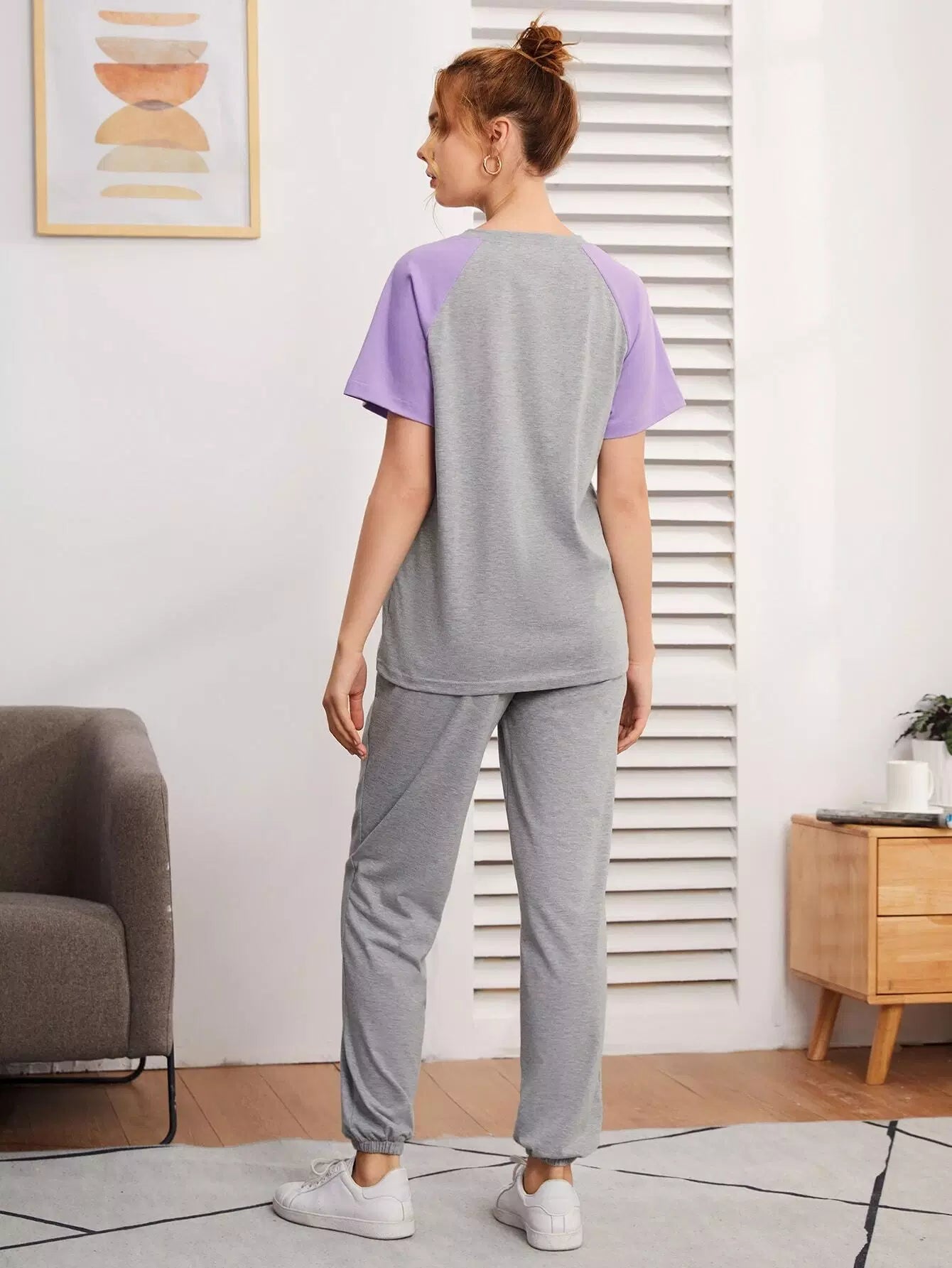 تي شيرت بأكمام ملونة بلوك راجلان وبنطلون رياضي