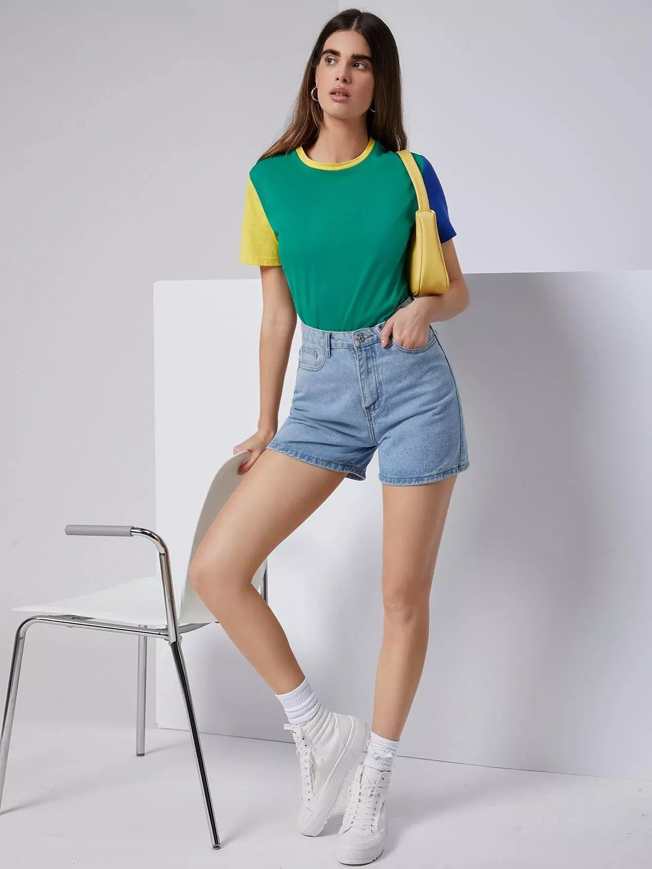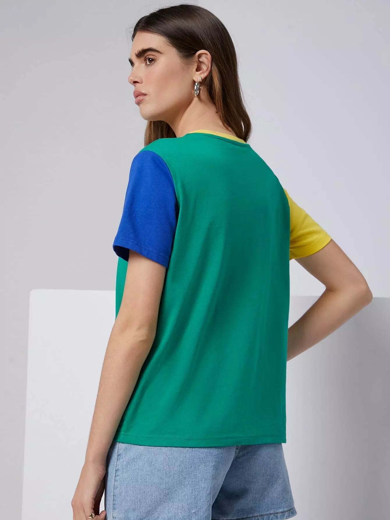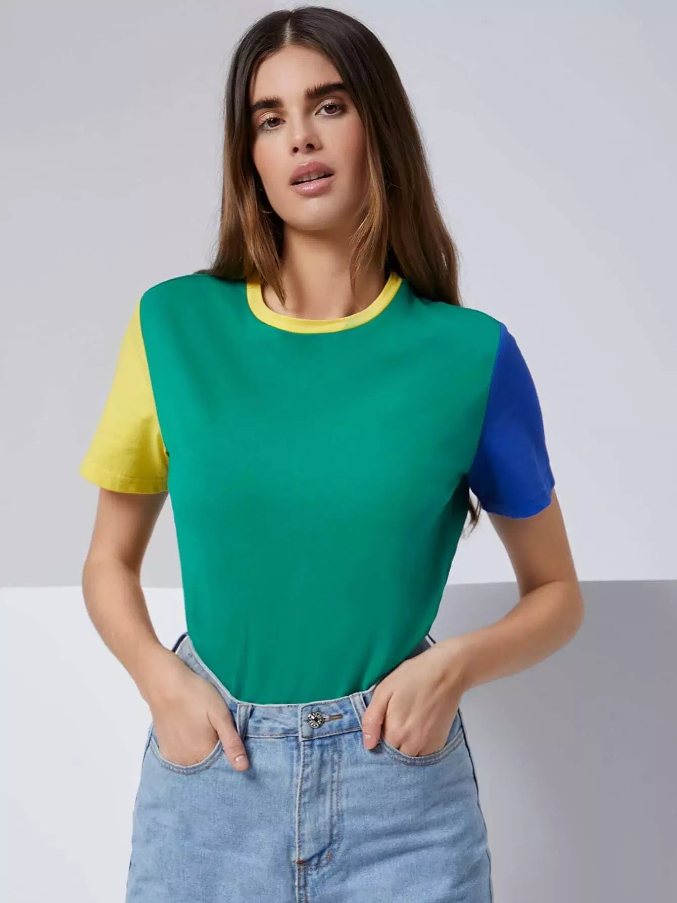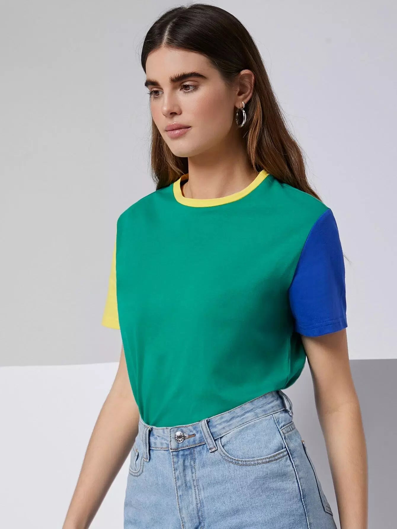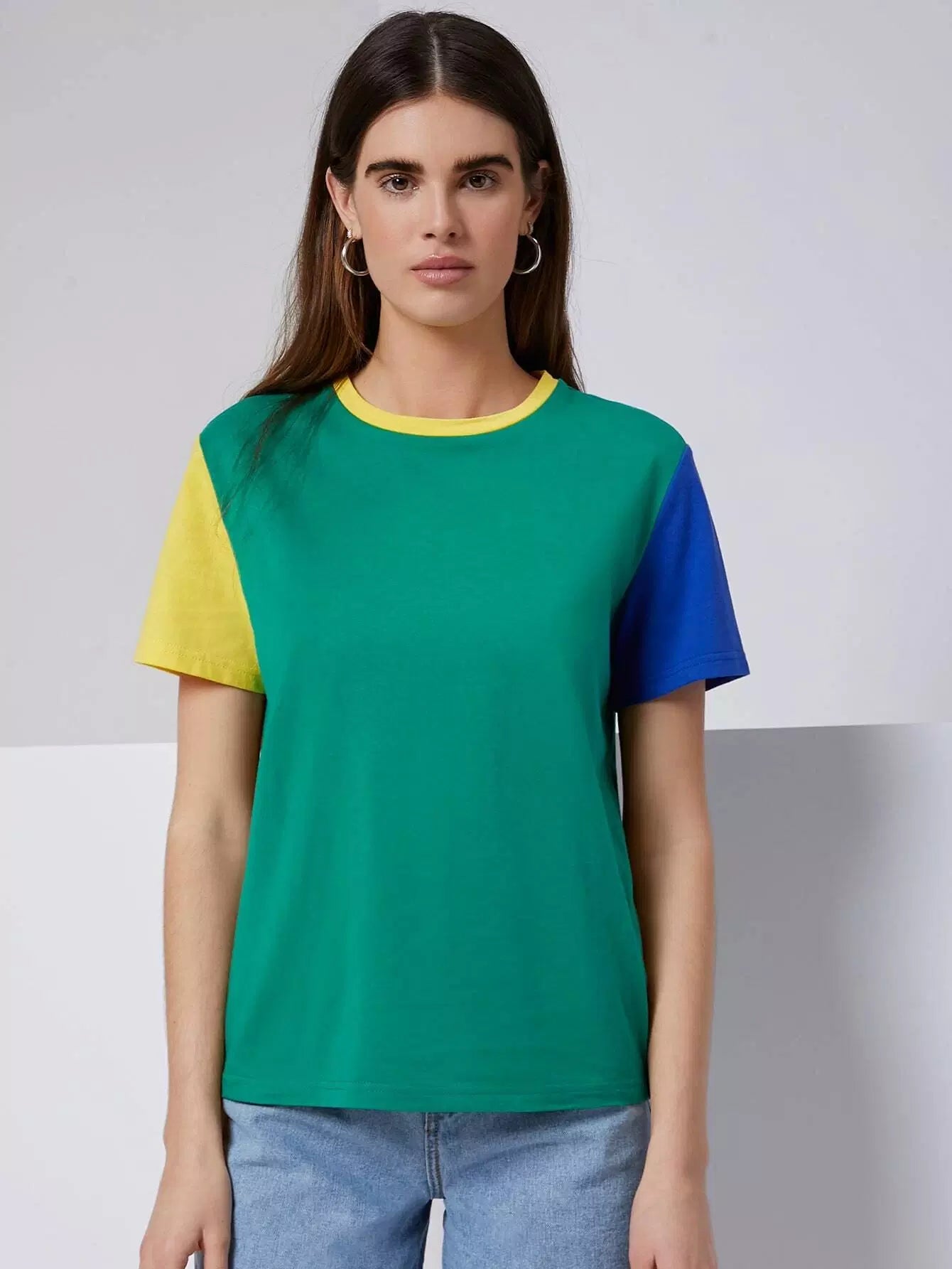 تي شيرت برقبة مستديرة ملونة