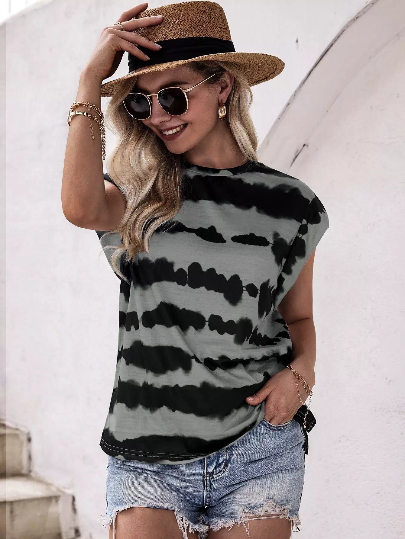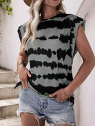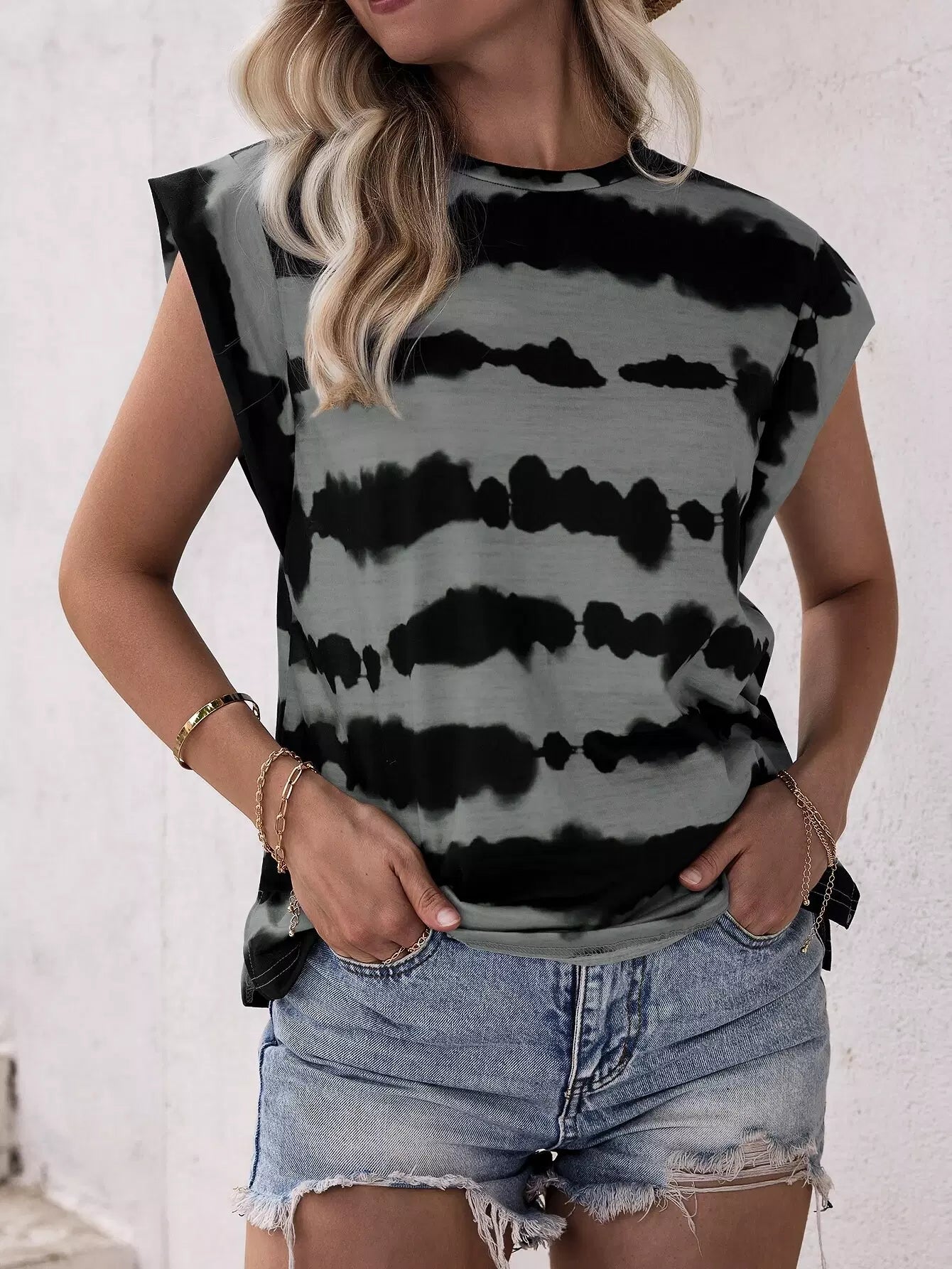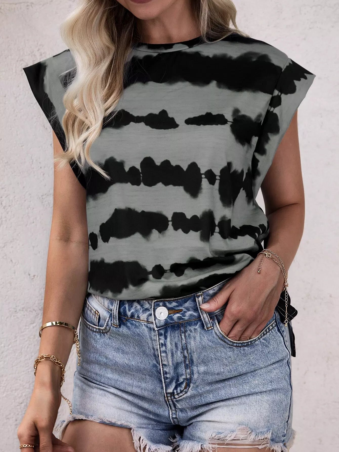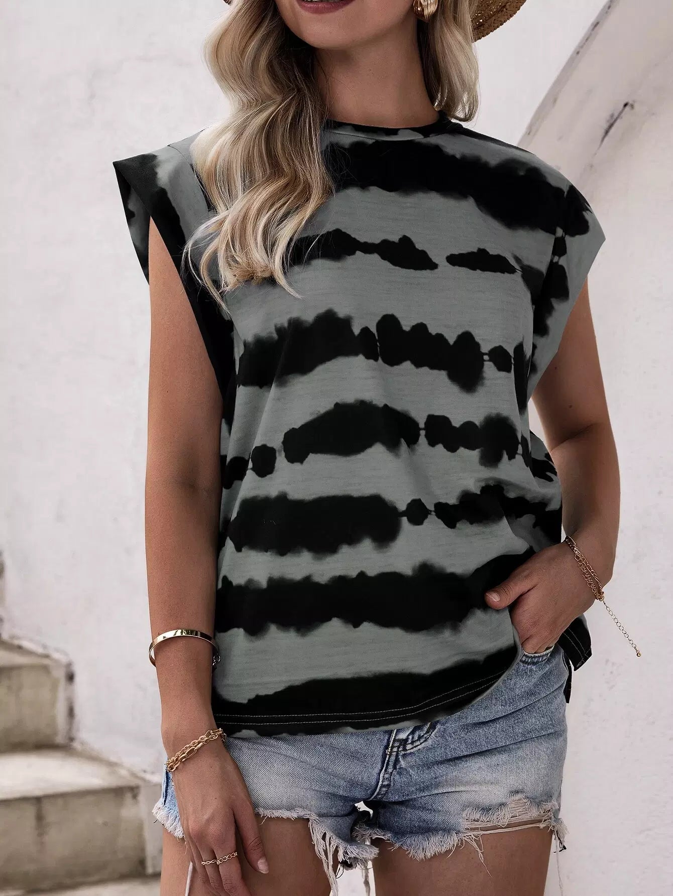 تي شيرت بكتف ملون منقوش بالألوان
